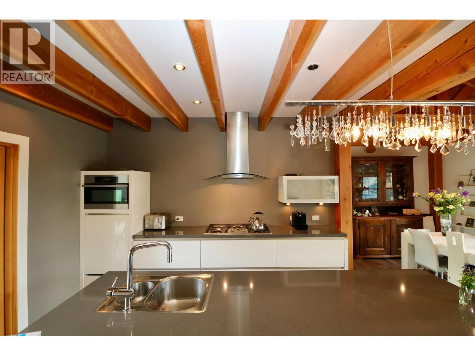 Family Home + Suite with STR Potential Incredible views looking straight across the valley at Kicking Horse Mountain Resort. Located very close to Sky Bridge and countless other recreational activities. The home is timber-frame with beautiful wood features throughout, including tongue-and-groove ceilings, wood window casings, and large decks on both the front and back. The walk-out basement suite opens onto a huge concrete patio with a large hot tub â perfect for relaxing or entertaining. Geo-thermal in-floor heat and cooling in the basement keep it comfortable year-round, while forced air upstairs keeps fresh air circulating. All fixtures and features in the home are high-end or better â square sinks, wall-mounted taps, floor-to-ceiling tiles, custom stainless steel railings, lots of glass, luxury light fixtures, built-in appliances, and a security system. The oversized heated garage includes a double wooden door with a quiet side-mount opener, attic storage, custom cabinets, and a workbench with a sink. For your furry friends, thereâs a 500 sq ft kennel and dog run that could easily be converted into a greenhouse. Click the media links to see a 3D tour and a video walkthrough. (id:27476)