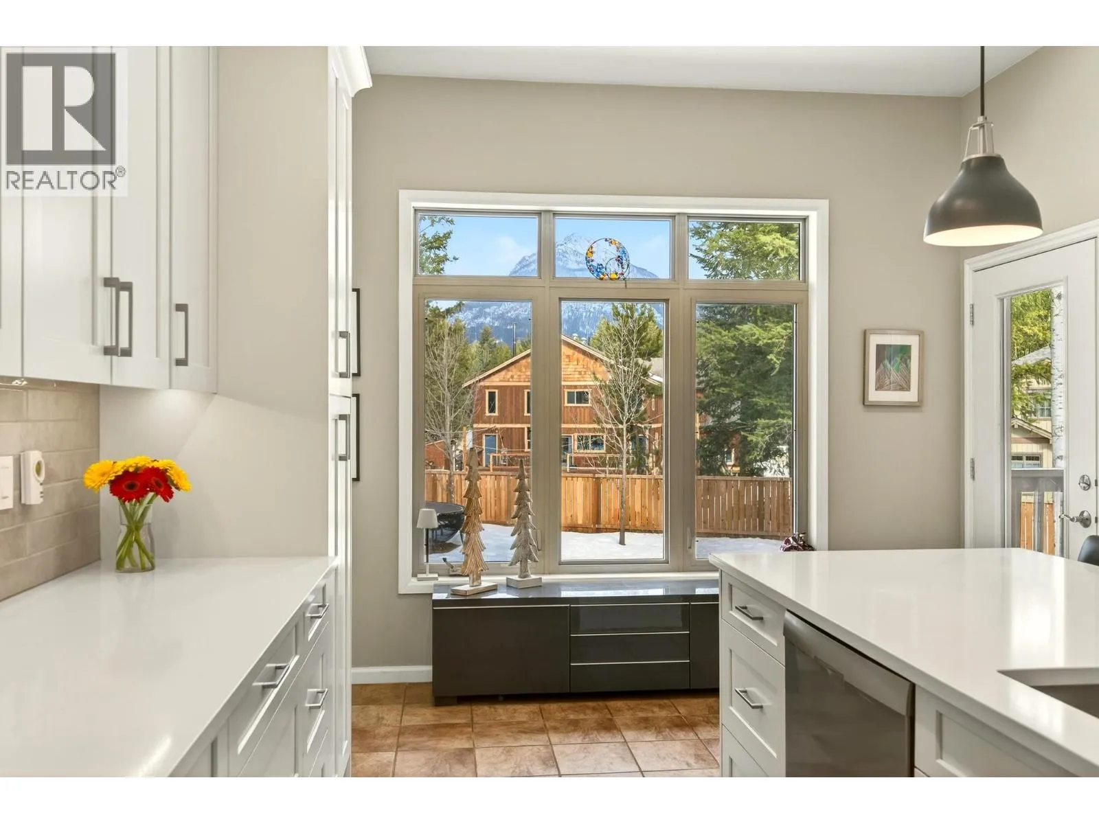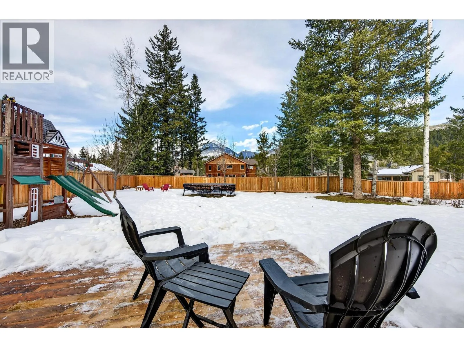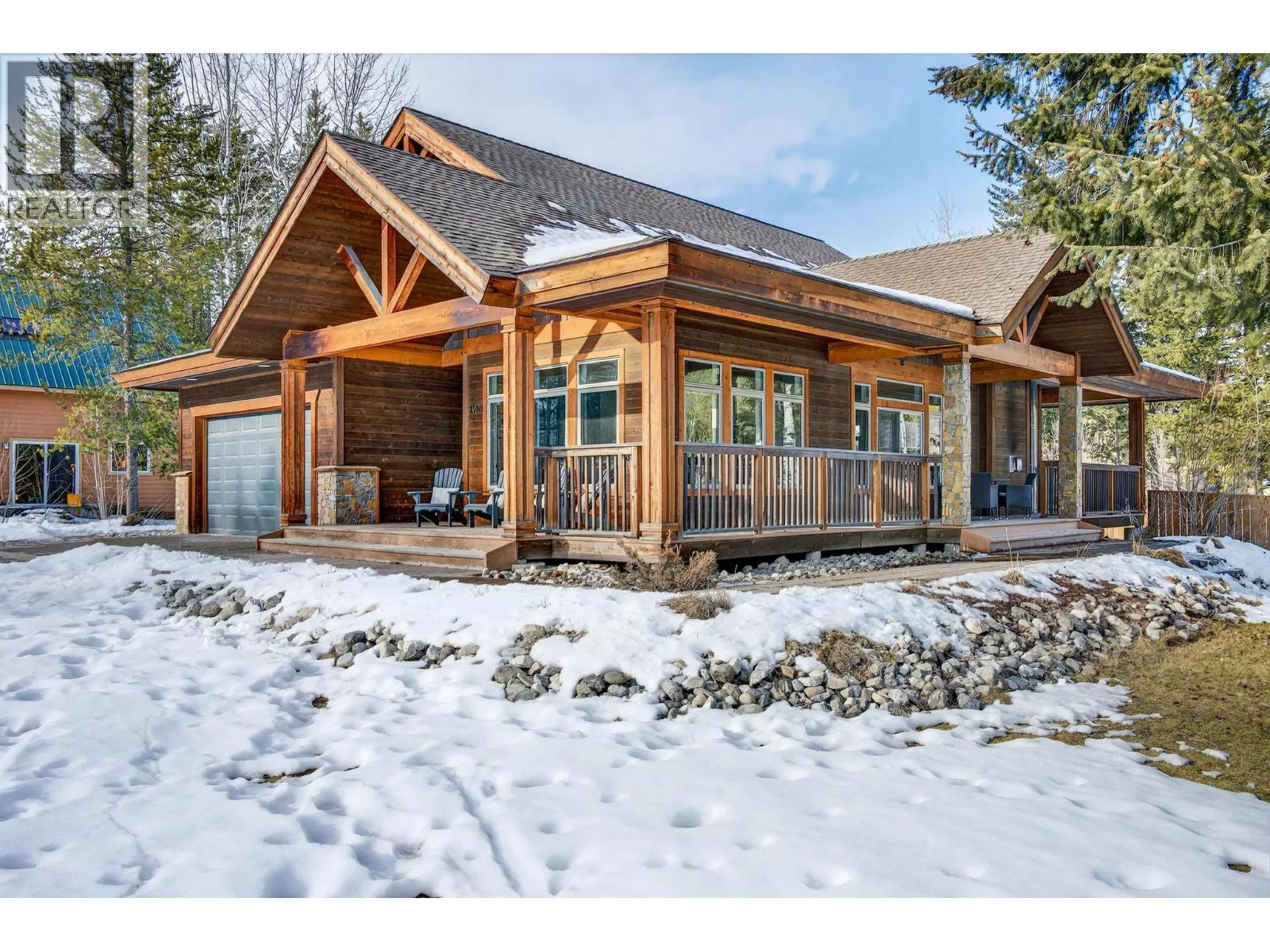 Welcome to Canyon Ridgeâwhere mountain views, space, and quality craftsmanship come together on a generous corner lot within the Town of Golden limits. This beautifully maintained home offers a peaceful, âout of townâ feel while enjoying full municipal services and easy access to schools, trails, and amenities. The warm timber-frame exterior, covered front porch, and impressive wrap-around deck create inviting outdoor living spaces. The fully fenced yard offers room to play, garden, or relax, complete with a hot tub and excellent sightlines across the property. Inside, recent updates shine in the bright white kitchen featuring quartz countertops, stainless steel appliances, and a large island perfect for gathering. The open-concept layout flows into a welcoming living room anchored by a stone fireplace and large windows that frame the surrounding mountain views. The main level also offers a spacious primary bedroom with direct deck access, creating a seamless indoor-outdoor connection. A major bonus is the self-contained in-law suite with its own separate entranceâideal for extended family, guests, or flexible living arrangements. With an attached double garage, thoughtful updates, and one of Goldenâs most desirable neighbourhood locations, this is an exceptional opportunity to enjoy space, views, and town convenience all in one. (id:27476)