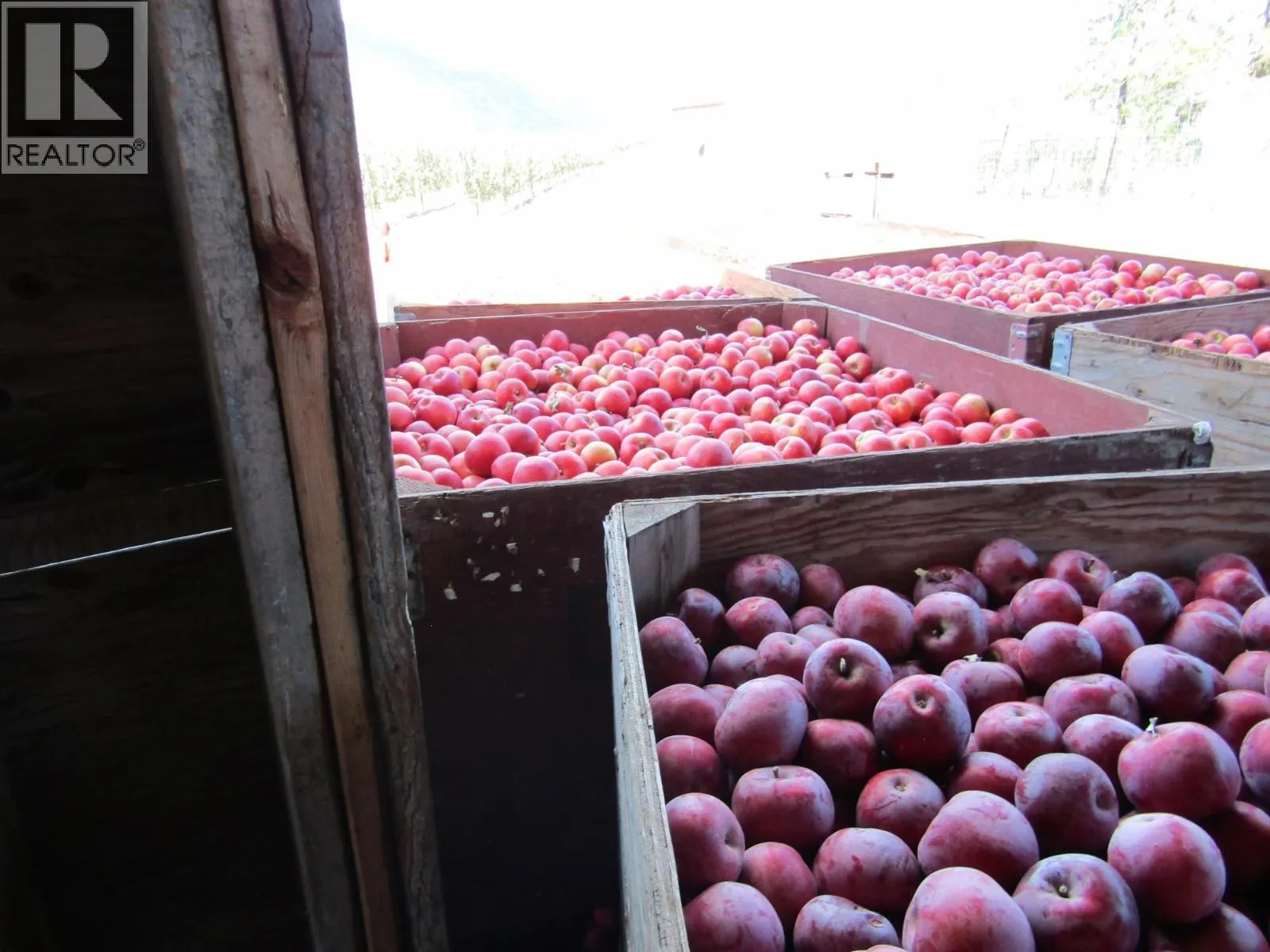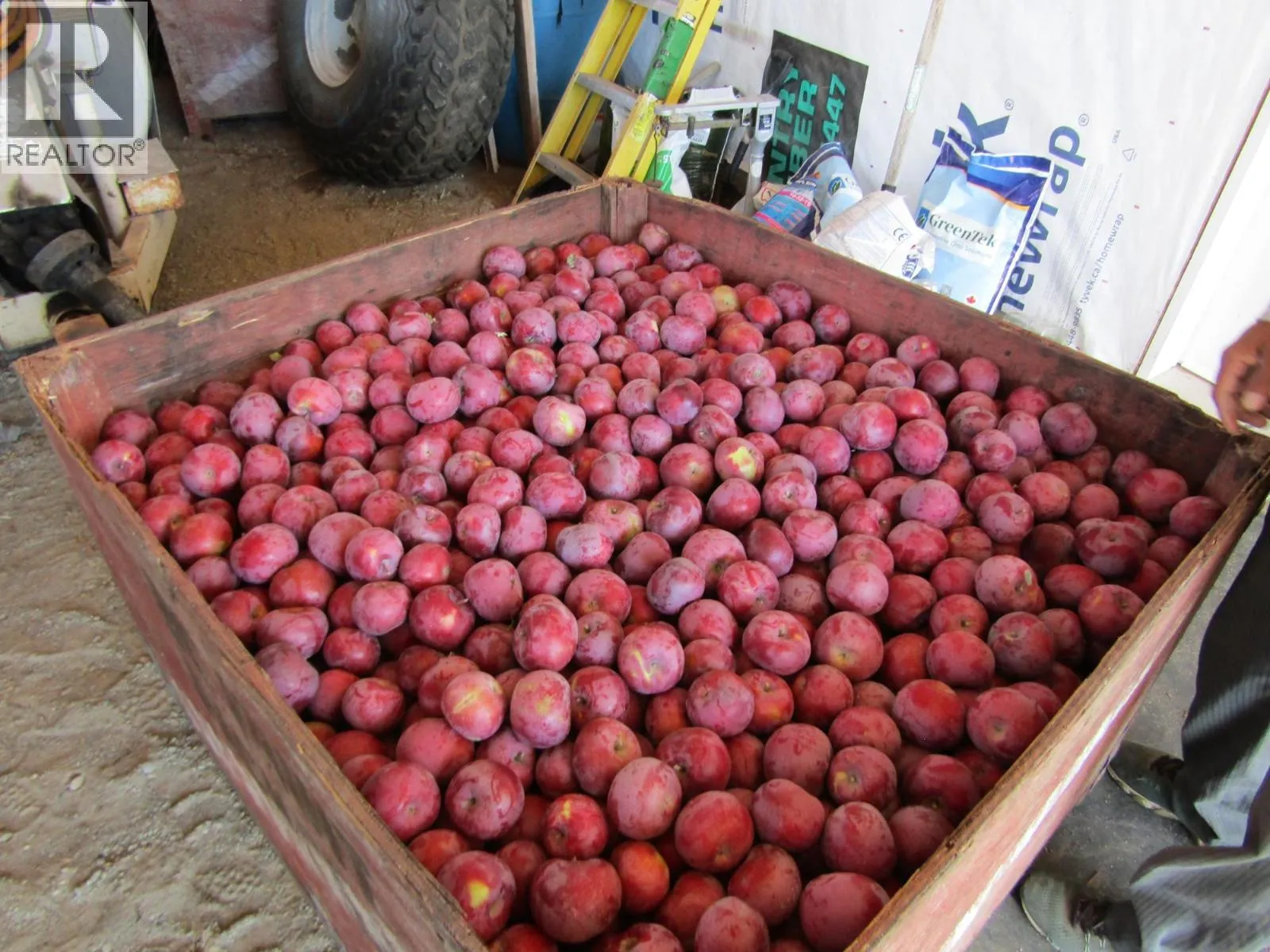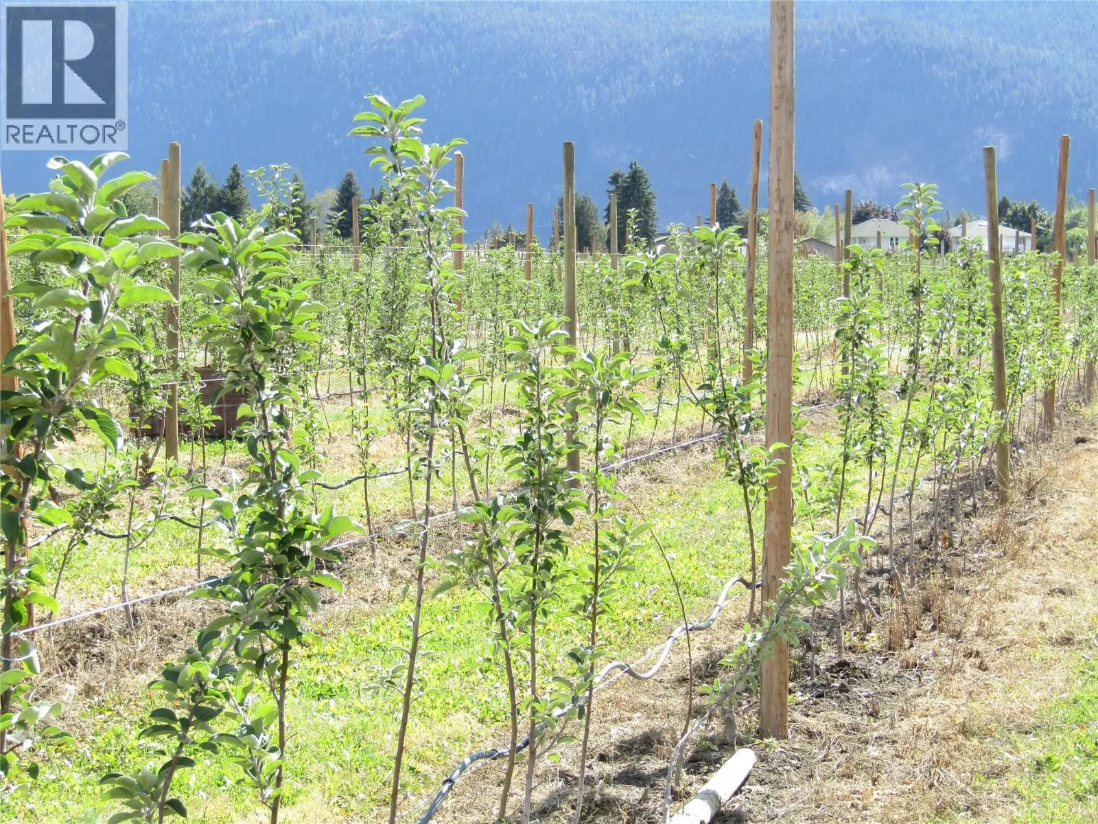 BONUS ALERT Turn Key orchard just finished second year of Production , Sprawling over 32 acres, this property features approximately 26 acres of fully planted apple orchards, all under efficient drip irrigation controllable via cell phone. Fed by two high-producing wells with a water license, the orchard is complemented by a farm implement building and workers' accommodation with potential for expansion. With an additional 7 acres available for ground crops or orchard extension, this established apple farm is now entering its 4th year and first year of production Full production estimated 2 years. Boasting completed infrastructure, this operation is ready for a new owner to step in and continue its success. Have a look in the Links for a Video Tour Equipment is included in sale price (id:27476)