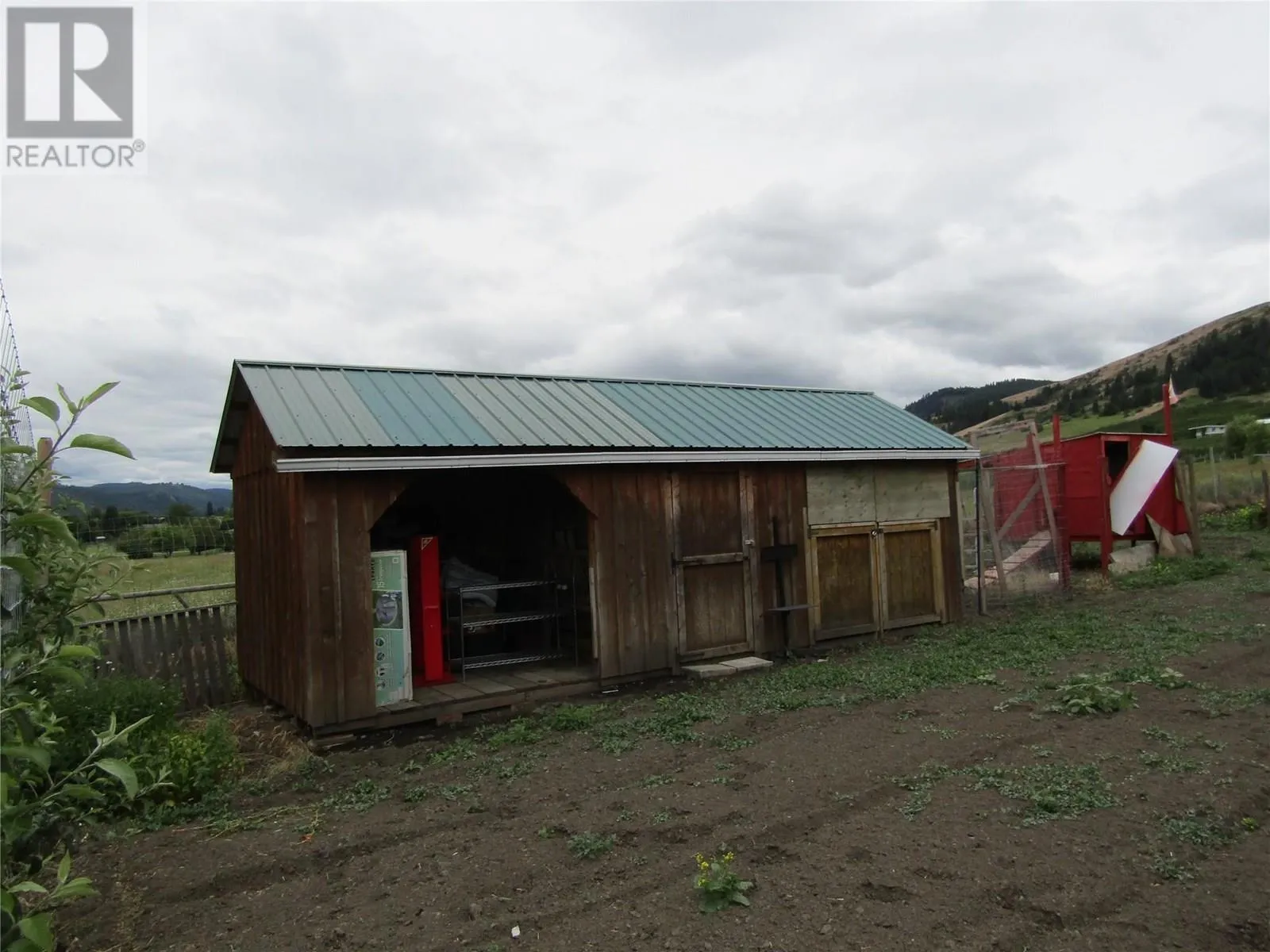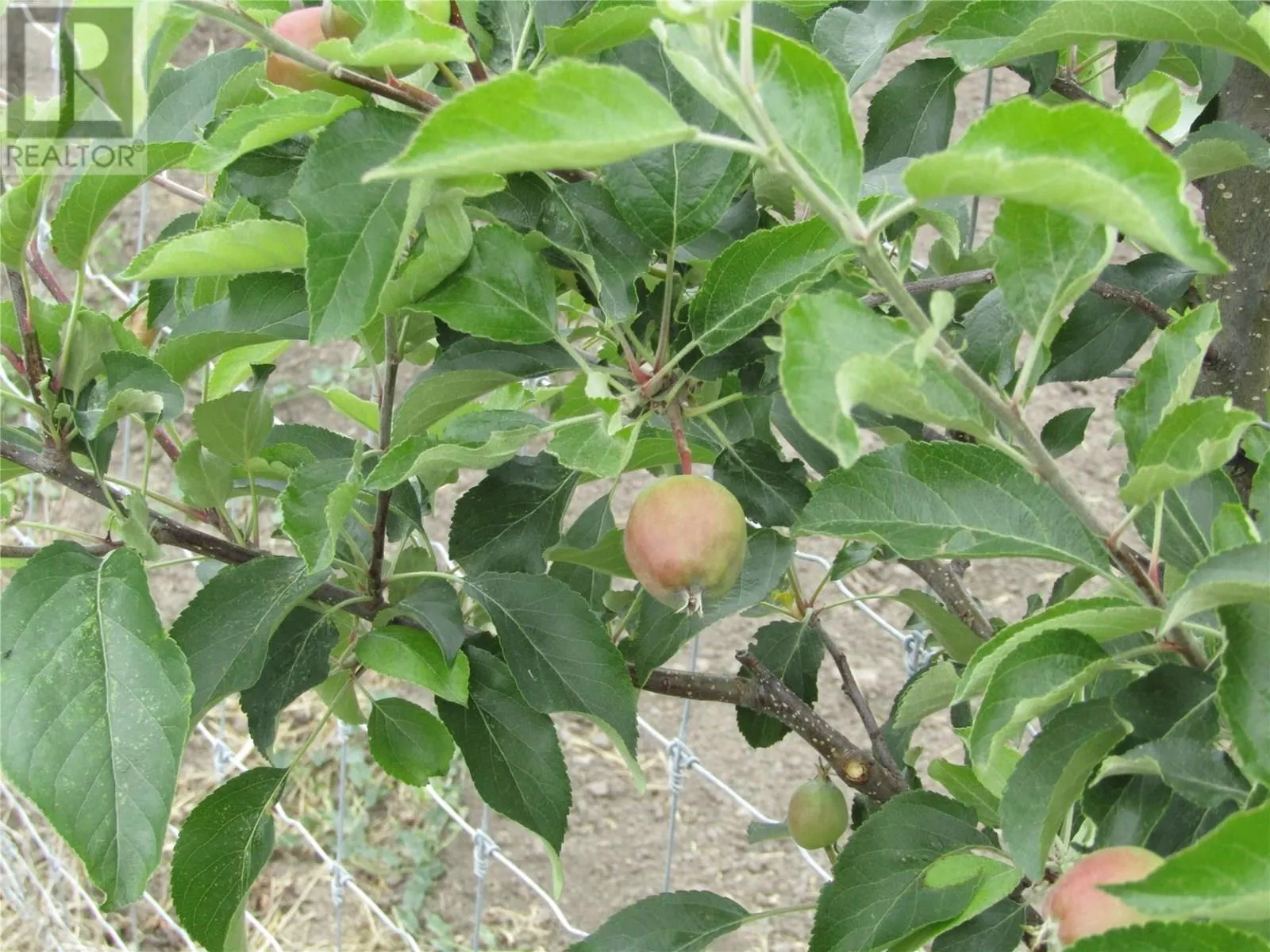 A promising investment opportunity with revenue potential awaits in this property. The upper floor features a 3 bedroom, 1 bathroom unit with a kitchen, while the basement includes a 2 bedroom, 1 bathroom unit with its own kitchen. Additionally, there is a workers' residence with a spacious bedroom, living room, and bathroom. The property boasts a fully fenced oversize garage, fields primarily planted with apple trees entering their first year of production, and irrigated ground crops. A make-shift produce stand adds to the charm of this property, with most of the work already completed. Take advantage of this property's potential and make it your own. (id:27476)