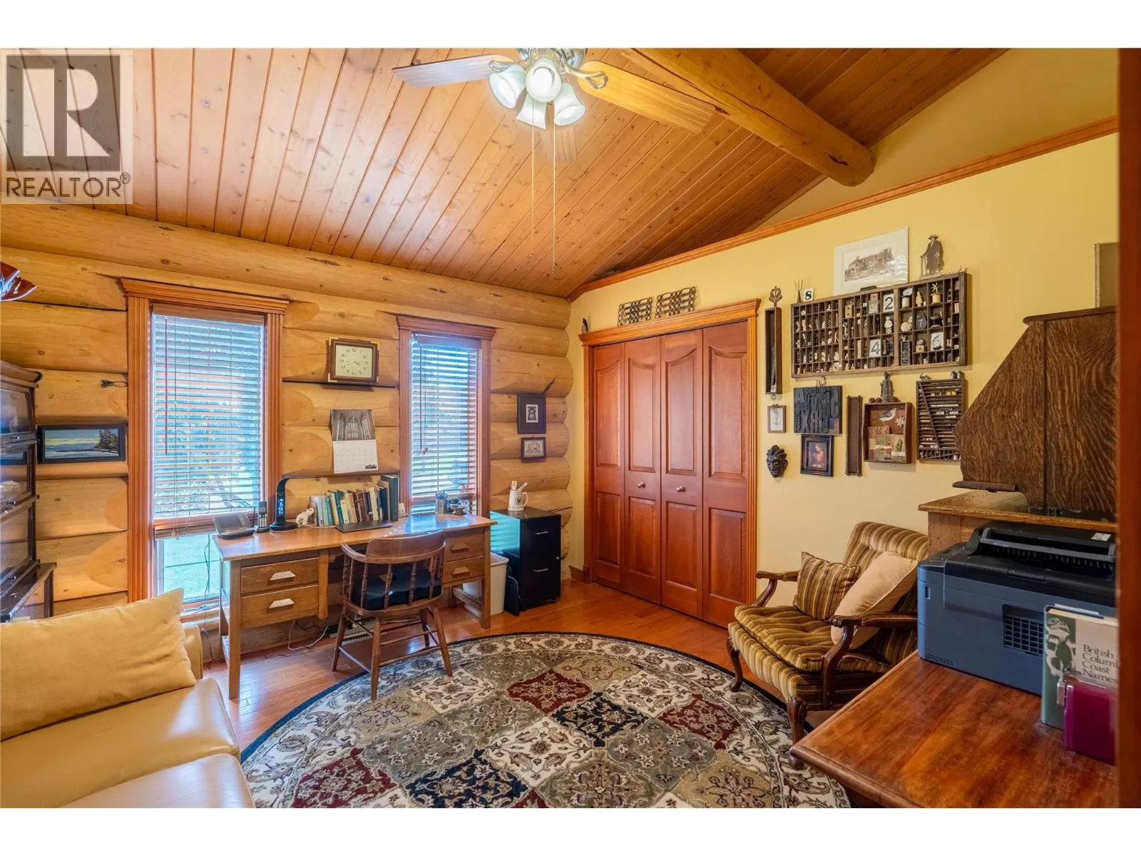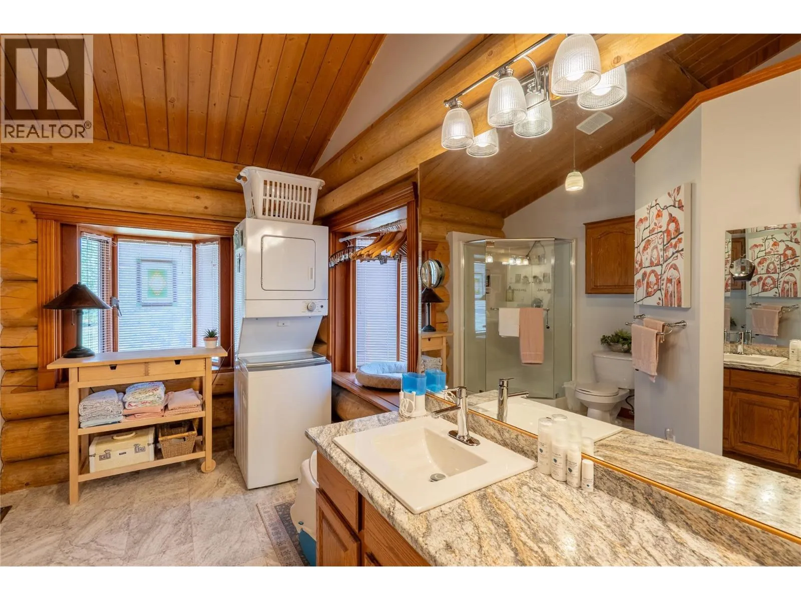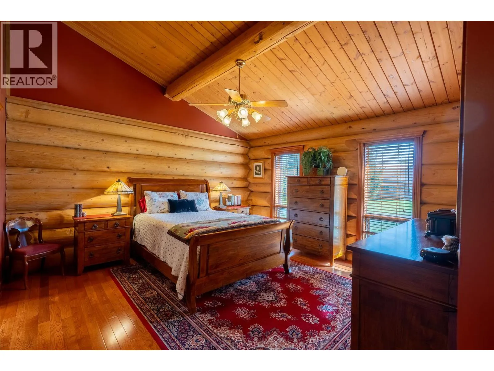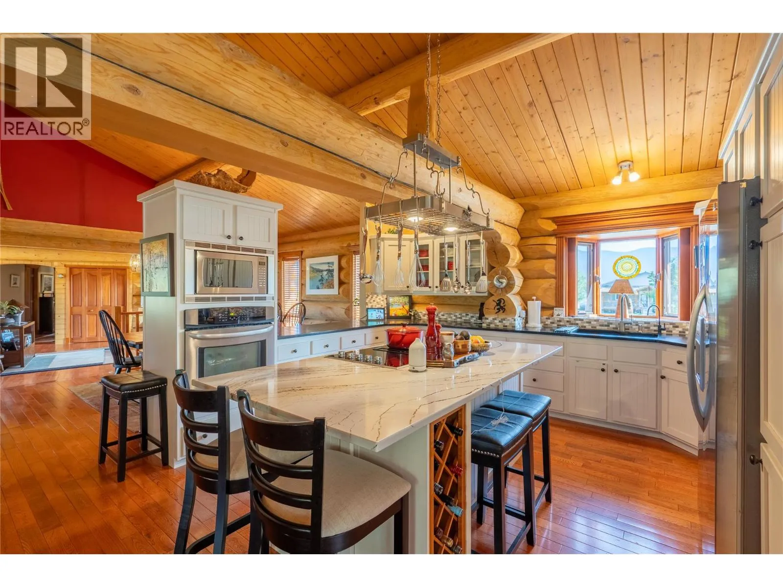 4645 sq ft finished. Custom built executive log home built in 1994. Great for entertaining. 4 bedroom, 4 bath. Vaulted ceilings. Panoramic views. Dream kitchen new in 2021, with butler pantry. The large master bedroom features a large ensuite bathroom and large walk-in closet. Main floor laundry. 4 natural gas heat sources, 1 insert + 3 free standing. Solar roof panels include Net Metering with Fortis. High quality finishes include hardwood floors throughout. Large 24x30 double garage with separate 10x18 enclosed workshop. Self contained 750 sq ft suite with its own laundry + separate entry. Hobby room with its own sink. Tons of storage room in out. Property is .89 acre, flat + partially fenced. Winter warmth and all season comfort for the upscale lifestyle. Full length wrap-around backyard deck for relaxing or entertaining guests. Excellent water source from Sion Water District. Quiet neighborhood. Furniture is negotiable. See the video and Seller's info package in Documents. (id:27476)