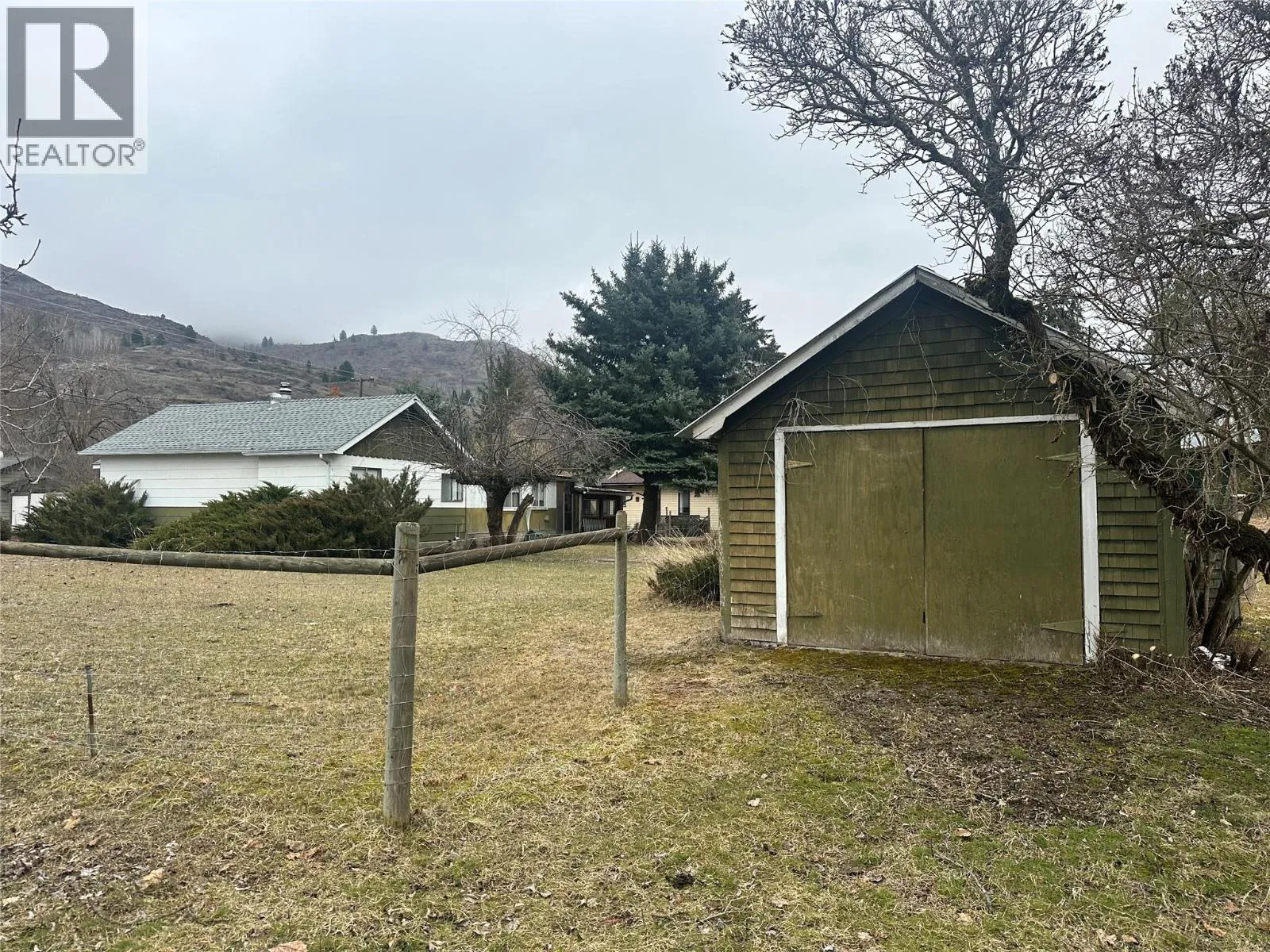 Nestled on a spacious corner lot along sought-after Riverside Drive, just steps from Barbara Ann Park, this property offers incredible potential in a quiet and desirable neighborhood. Sitting on three fenced lots, the home features two bedrooms upstairs, with the option to convert the large dining room into a third bedroom. The bright living room boasts a gas fireplace and large windows, while the laundry room includes a convenient pantry. Downstairs, accessible via a separate entrance from the garage, you'll find an additional bedroom, family room, and small bathroomâperfect for a guest suite or separate living space. The property includes multiple outbuildings, such as a potential guest house with a garage door, a shop/garage, a shed, and a fenced garden area. With a large garage, ample street parking, and an alley at the back, this home offers space, flexibility, and an unbeatable location just moments from the river. Call your Local Real Estate Agent today! (id:27476)
