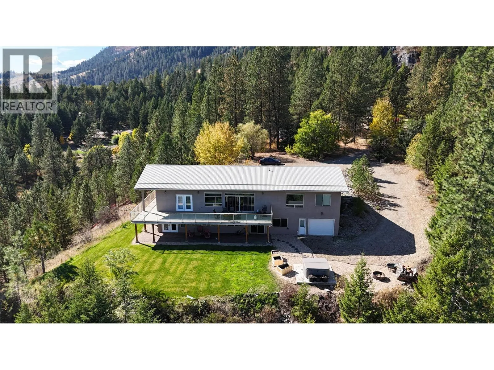 Executive rancher with breathtaking views of river, valleys, and mountains. This custom-built home features a butler pantry, central island, and pull-up bar in the kitchen, along with 10 ft ceilings, hardwood flooring, and natural gas in-floor heating. The spacious layout includes 3 bedrooms, 3 bathrooms, and extra-large rooms, all flooded with natural light and stunning views. Situated on 2 1/2 acres, this property offers a private oasis with wrap-around decks, a walk-out basement, automatic irrigation, and access to the Trans Canada Trail. The basement features a sprawling family room with rough in for a wet bar or kitchenette. The workshop is perfect for extra storage. Nestled in a tranquil cul-de-sac, this unique home is a rare find and must be seen to fully appreciate its beauty and exceptional features. Call your agent to view today! (id:27476)