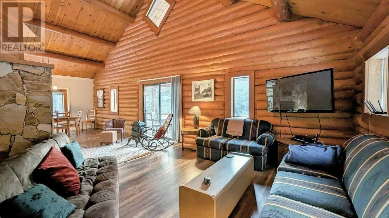 Escape to your own paradise with this charming 4-bed, 3-bath log home nestled in Grasmere's serene hamlet. Recently re-chinked, this rustic retreat sits on .82 acres across two lots for ultimate privacy. Inside, a updated kitchen with island and quartz countertops awaits. Wide plank flooring and vaulted ceilings adorn the open living and dining areas, while a sauna adds relaxation. Stay cozy with propane heat and fireplace, plus a wood stove hookup. Entertain effortlessly with ample space for gatherings and rural internet access. The finished basement offers a separate entrance, rec room, bedroom, and sauna-equipped bathroom. Outside, enjoy a fenced yard with fire pit, decks for lounging, and storage in the detached garage, shed, and heated shop. Conveniently located near the US border, Fernie Alpine Resort, and Lake Koocanusa, offering access to various outdoor activities, this property offers the ultimate retreat for nature lovers. With its tranquil setting, abundant features, and furnished convenience, this property is ready to be your family home or getaway in South Country's natural beauty. (id:27476)