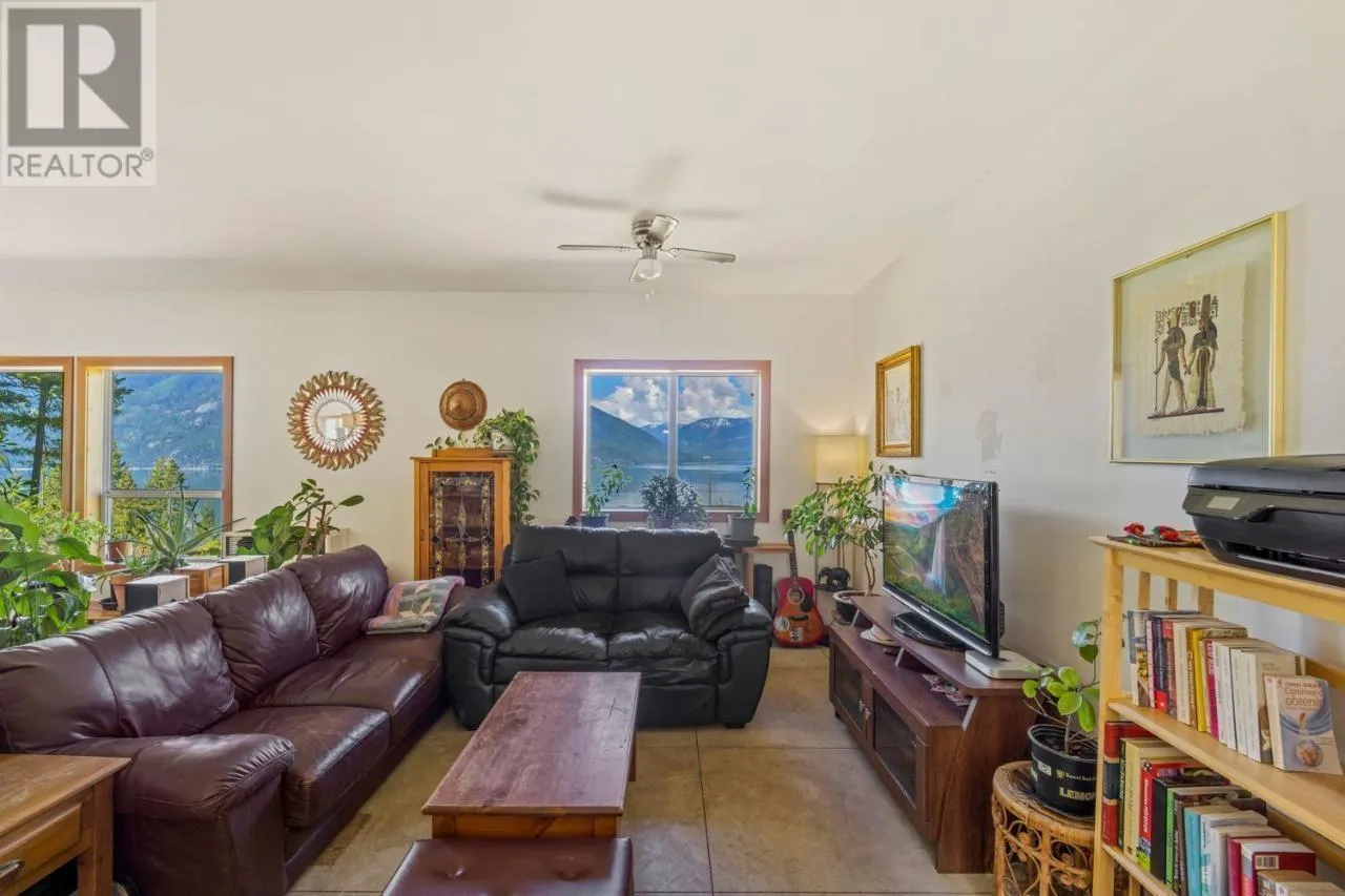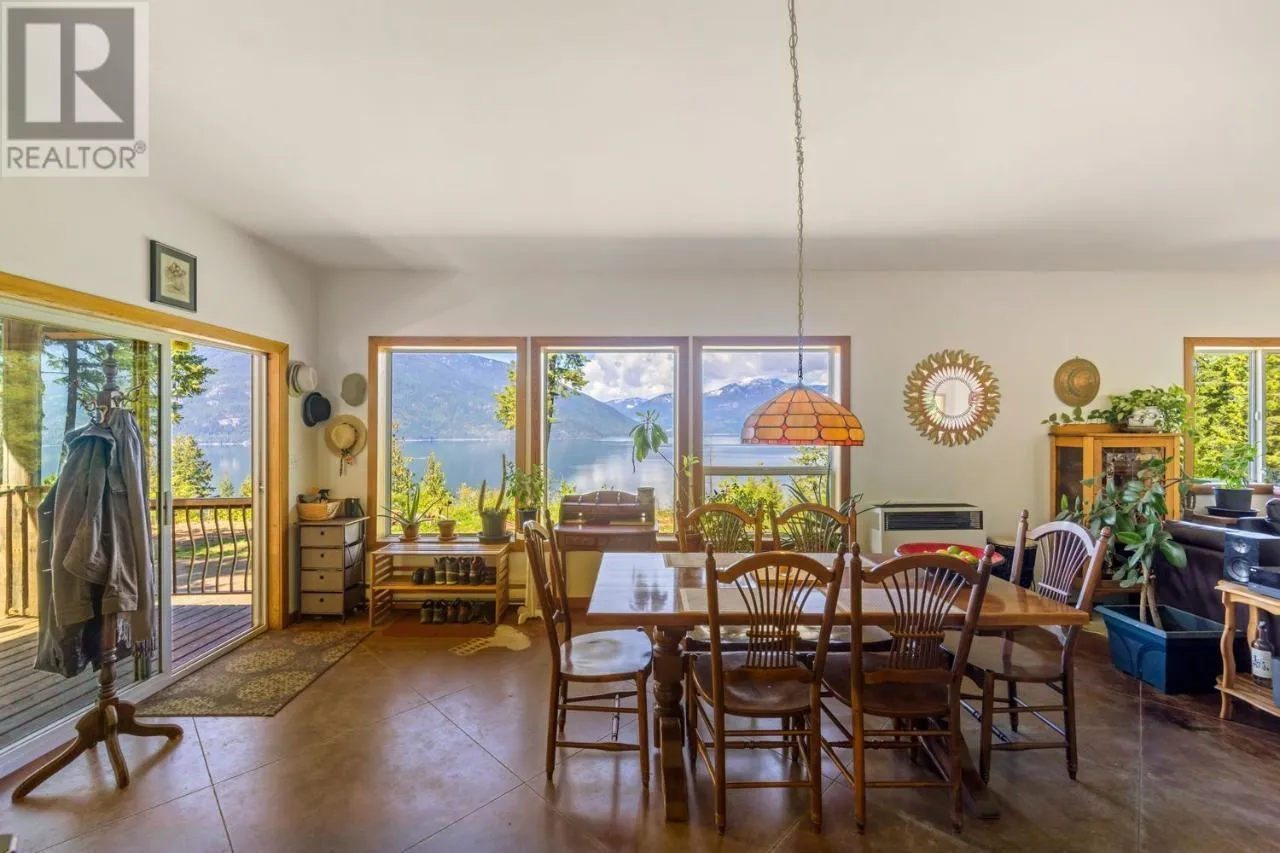 Unique, breathtaking views of Kootenay Lake await you on this stunning 11.96-acre property featuring not one, but TWO move-in ready homes! Perfect for multi-generational living, rental income, or a shared retreat, both homes are positioned to maximize the spectacular scenery, with views from every window. One home offers a spacious, open-concept studio layout on the main floor and includes a self-contained mother-in-law suite, providing flexible options for guests, extended family, or private rental use. The second home is spacious with 2 bedrooms on the main floor and a full basement ready for your customization. Both homes feature walkout basements and large decks that invite seamless indoor-outdoor livingâperfect for enjoying your morning coffee. Surrounded by nature, the setting is tranquil, private, and rich with beauty. The full sun exposure is ideal for vibrant gardens. The property has many flat plateaus, including a recently cleared lower-level pad, ideal for an additional building site, workshop, or RV parking. Imagine expanding your dream retreat, starting a vacation rental venture, or establishing your family homesteadâthe possibilities are endless! Located on the desirable Eastshore of Kootenay Lake, just minutes from Crawford Bay, where youâll find artisan shops, restaurants, groceries, a gym, school, and more. Plus, enjoy nearby golf courses, beaches, and hiking trailsâall just outside your door! (id:27476)
