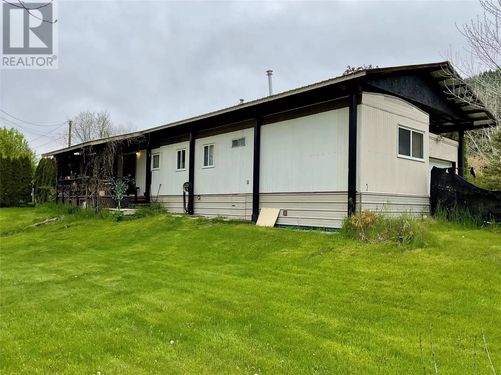 Private home on large corner lot in Greenwood, BC. This 2 Bedroom, 1 Bathroom mobile home is on over a third of an acre. Very private, with an attached garage, and large detached workshop. Great location, within minutes of downtown Greenwood. Fully fenced back yard with mature trees surrounding the property, gives you full privacy to enjoy the beautiful weather Greenwood has to offer. Large garden area, and greenhouse, allows you to grow a bountiful crop each year. Built in cold room below the back deck, and a large chicken coop. Metal roof over the mobile home and garage, with an additional single carport area with a covered deck in front. High fence keeps out the deer, and protects your garden and fruit trees. Affordable living at its best! Call your Realtor today! Click on multimedia for a virtual tour. Click on additional photos for a video tour. (id:27476)
