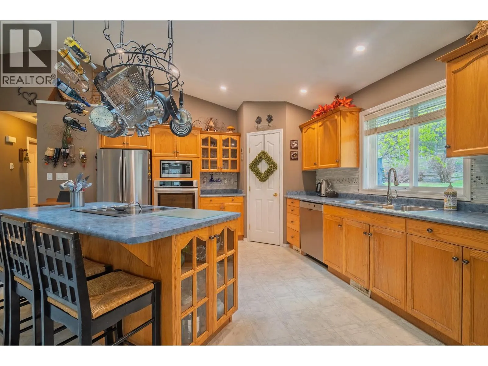 Set on TWO landscaped parcels totalling 0.845 acres and backing onto Crown land, this stunning custom-built home offers a rare blend of privacy, usable space, and connection to nature right on the mountain edge of Greenwood. The main level of this 2,300+ sq ft home features a nice open layout between the kitchen and living areas, vaulted ceilings, a cozy gas fireplace in the living room, and large windows that invite natural light into the space. The spacious primary bedroom includes a walk-through his-and-hers closet leading to a full ensuite. A second bedroom and generously sized main bathroom complete the upper level. Downstairs, the home continues to impress with a welcoming foyer and curved staircase, a second living room, third bedroom (currently used as a gym), full bathroom, and a flexible office area with separate exterior access, making it ideal for a home business or guest space. The lower level also includes a utility room, storage, and an oversized double garage. The outdoor space is exceptional, featuring a 40' x 12' x 24' irrigated greenhouse, second greenhouse, garden shed, RV parking with 50-amp service, underground sprinklers, gazebos, retaining walls with stairs, mature grape vines, and established garden areas. A garden lovers' dream!! This property is truly one of a kind.. call your agent and book a viewing to see the beauty for yourself! (id:27476)