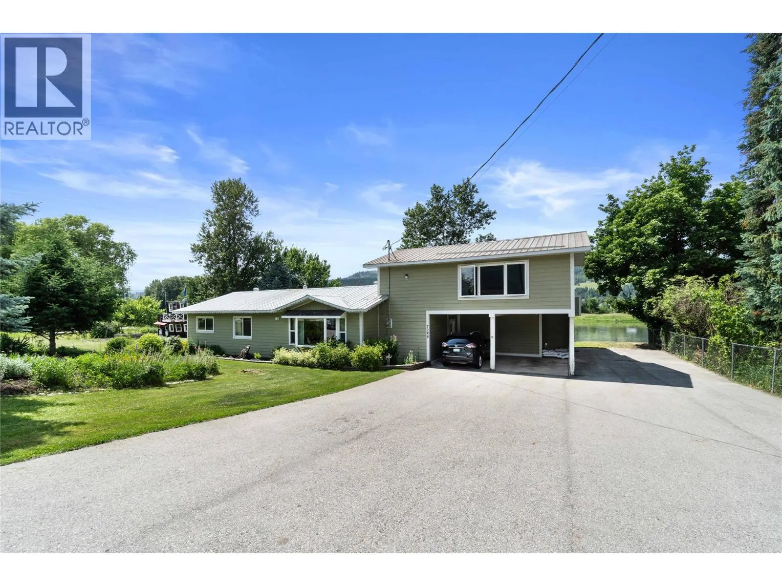*RIVERFRONT* Rural living but close to amenities and with nearly a 1/2 acre, it not only offers incredible views & water access but every out-door opportunity is nearby. From fishing, whether its trout or salmon, to boating, paddle-boarding, kayaking to snowmobiling, cross-country skiing at Larch Hills & downhill skiing to Silver Star or Revelstoke. This property has not flooded since owners have been here - 36 years! While close to the river, the elevation is higher than many riverfront properties. There's lots of parking from the carport to the paved driveway, including RV parking. The backside of the carport has a 19'4x18' workshop to dry your snowmobiling equipment & store seasonal gear in or it makes a great space for tools & woodworking. There's a total of 5 bedrooms & 3 bathrooms plus a huge family room upstairs. There's beautiful gardens from flowers, a pond & vegetable garden to raspberries, rhubarb, strawberries & producing apple trees. There's also been lots of updates: Hardi siding & fascia 2014, replaced windows, shop 2014, upstairs carpet 2018. It's also on a school bus route. From a good sized home to accommodate family and visitors to the grounds and a view, consider calling this spot home or ""home away from home"" if you're looking for a spot to vacation and enjoy all the area has to offer. (id:27476)