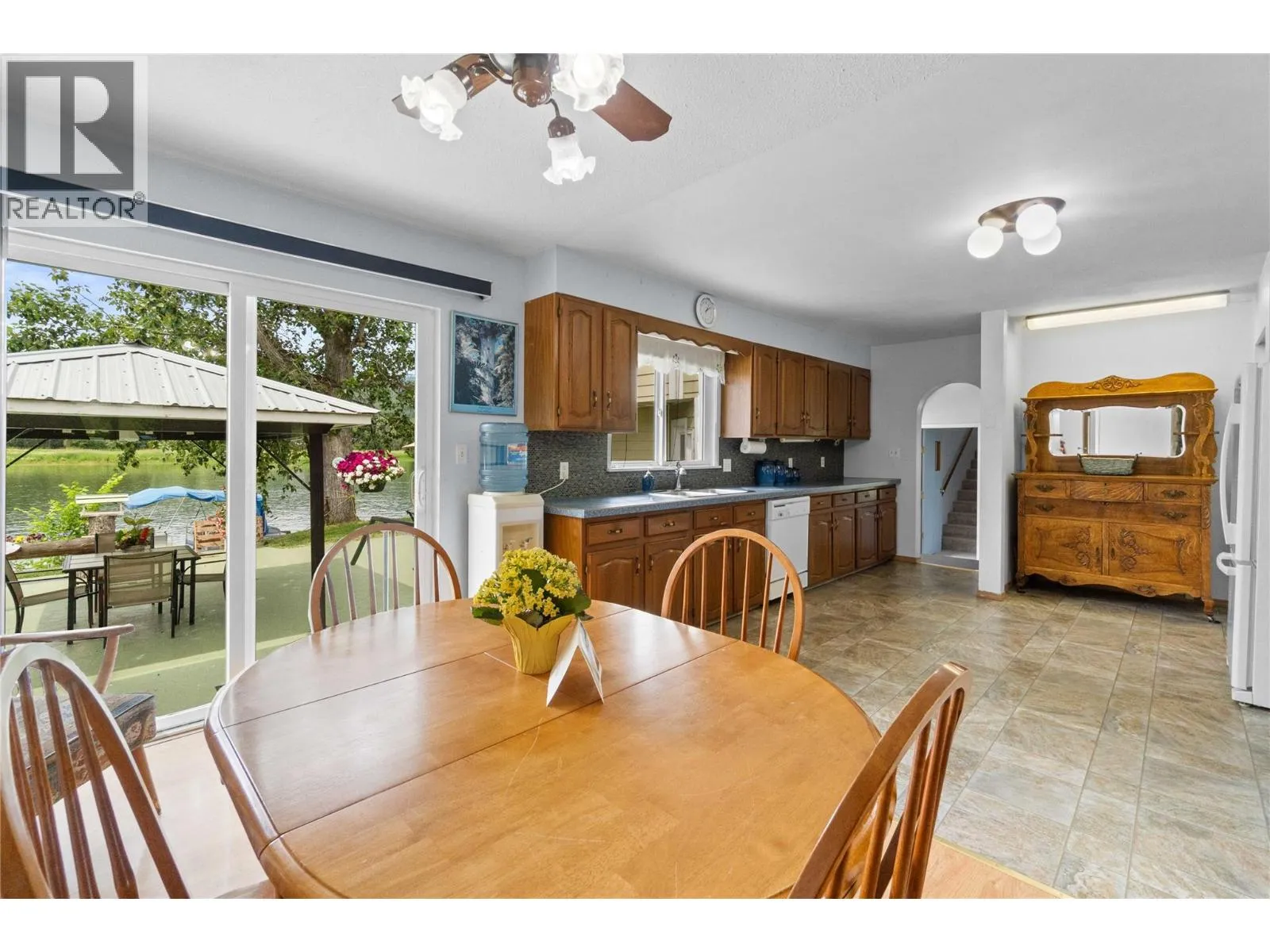 Riverfront on the Shuswap River at a reasonable price! It's not too often something this cool comes along on the river with its own dock to tie the pontoon boat up to. Almost a half an acre of lush, beautiful land with a fantastic 5 bedroom, 3 bath home that is perfectly designed around riverfront living. The main level offers a generous primary bedroom overlooking the river complete with 4 pc ensuite, a second bedroom, large living/dining room combo with wood pellet stove to keep everybody cozy warm, and a bright kitchen and breakfast area with lots of natural light. Incredible stamped concrete patio off the back of the home with a huge gazebo overlooking the river, incredibly well set up for summer entertaining and swimming. Lower level offers a 3rd bedroom, full bathroom, workshop for dad and another set of doors to the incredible back yard. Huge games room with 2 more bedrooms up, a 3 pc bath, and bar that could so easily be converted to another suite. Wait untill you see the Frontier Hotel and Saloon, just make sure you don't end up in the jail house. This property is an absolute pleasure to show and move in ready. (id:27476)