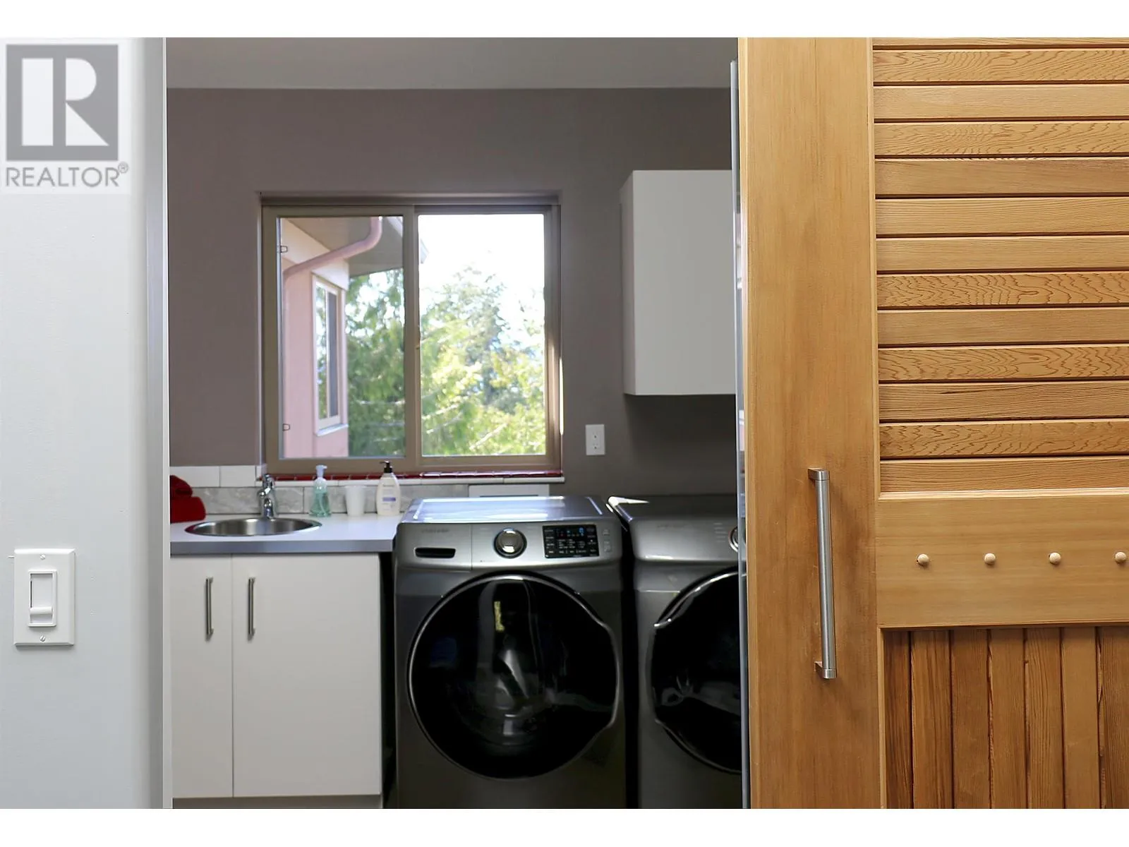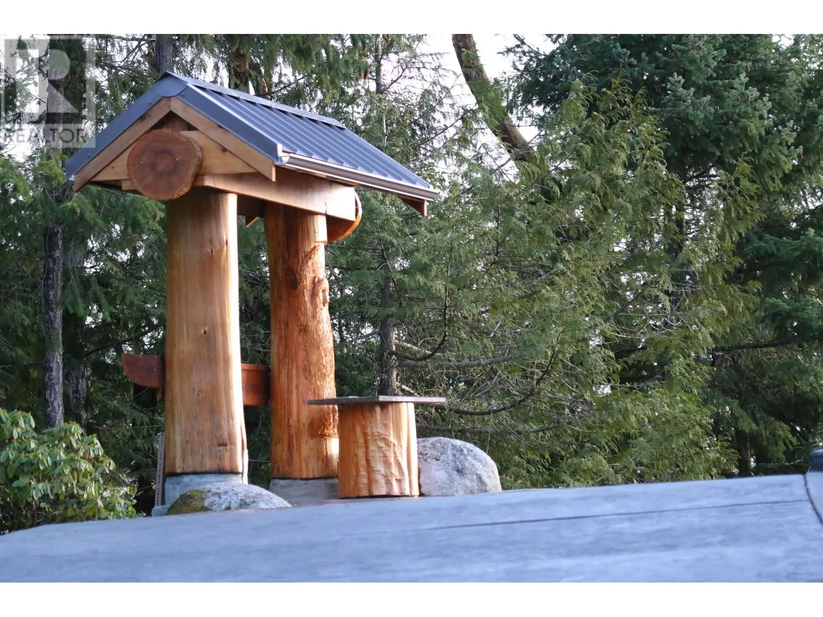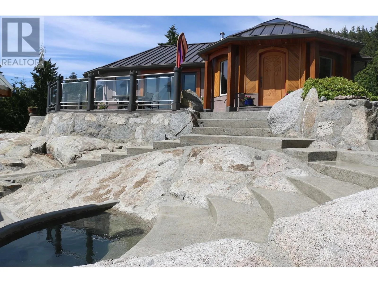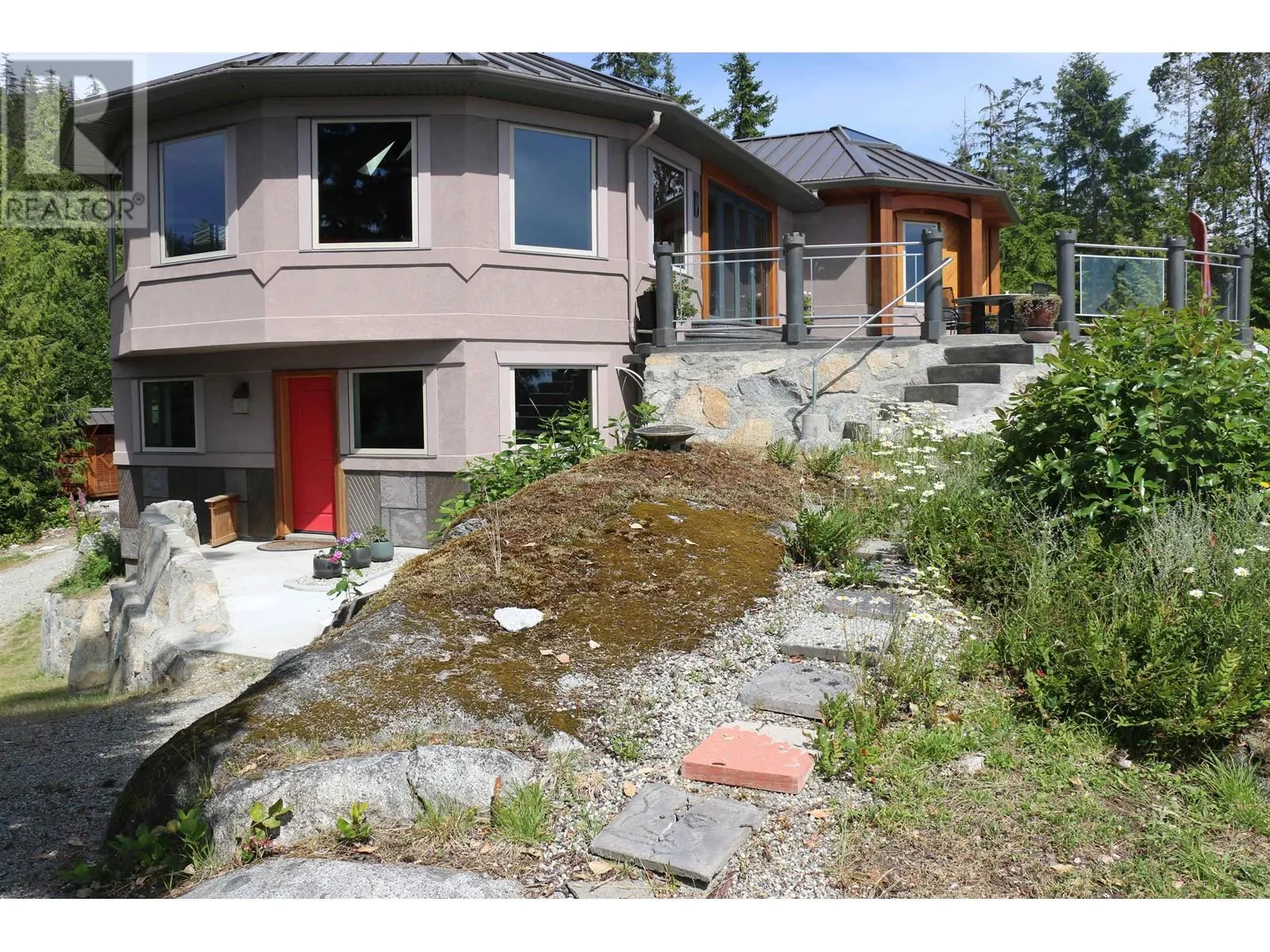 This custom-built 3 bedroom, 4 bath 4,225 square ft home, fully furnished, situated on 2 acres blends luxury and nature with breathtaking views of the Salish Sea, Islands, and Caren Range. Hand-poured radiant concrete floors, vaulted ceilings throughout upper level, and unique murals add artistic flair. Enjoy seamless indoor-outdoor living with 10-ft folding doors opening to a sun-drenched patio with panoramic ocean views framed by arbutus trees. Features include geothermal heating, Heat Recovery Ventilation system, drilled well, outdoor wood-fired Finnish sauna, oversized garage, and a tranquil water fall pool. The open-concept living, dining, and kitchen area is bathed in natural light, and a large office/den offers flexibility. A truly exceptional property in a private, natural setting. (id:27476)