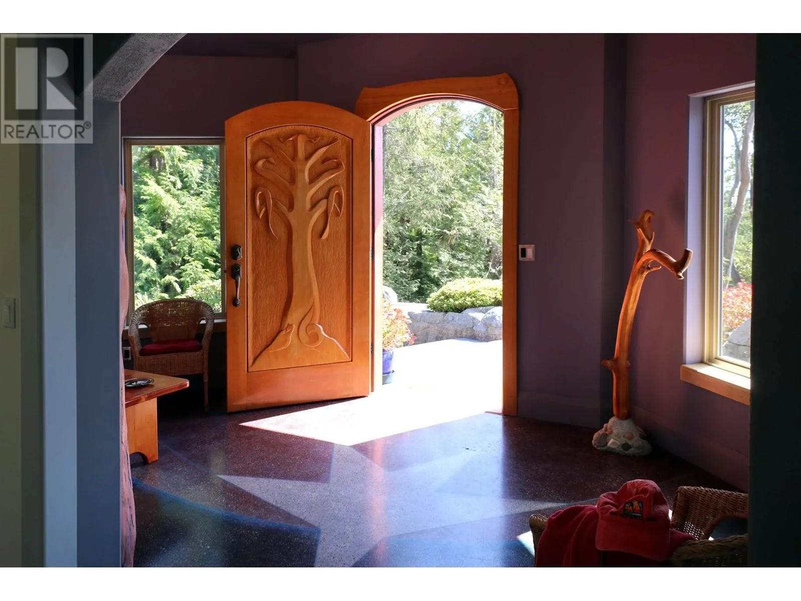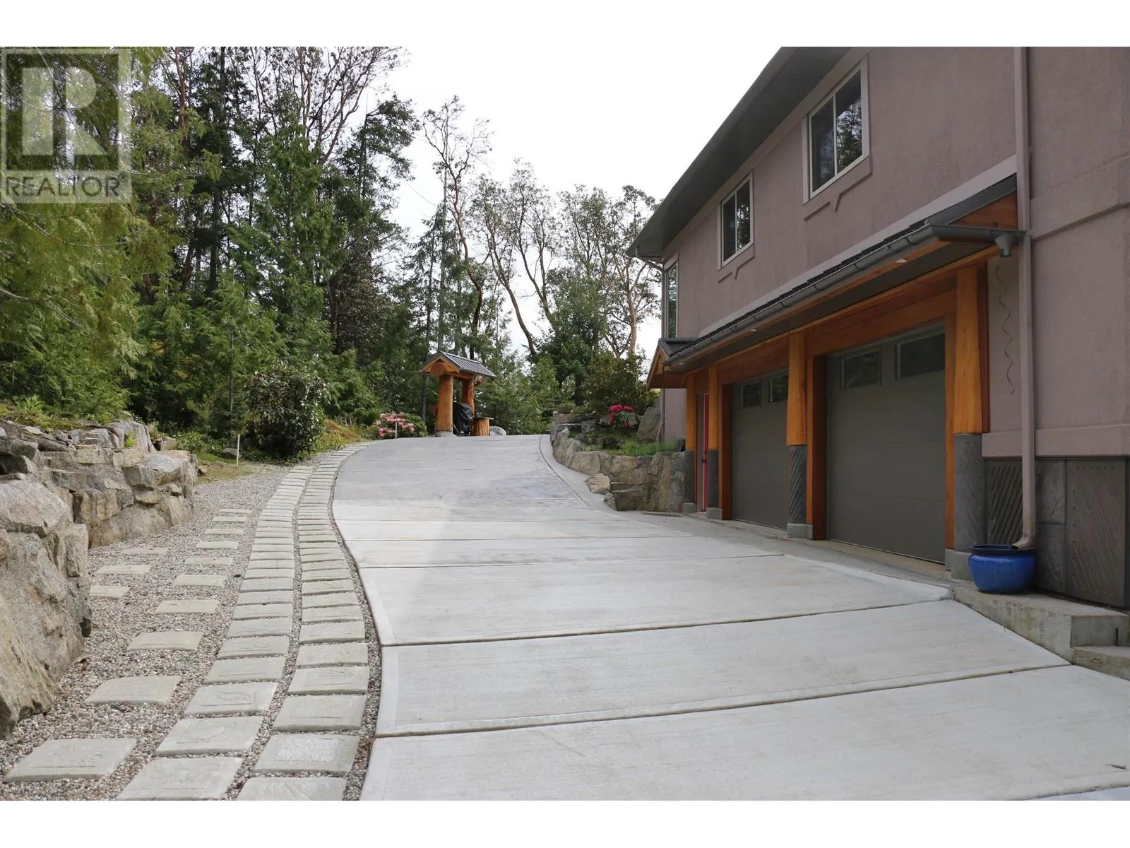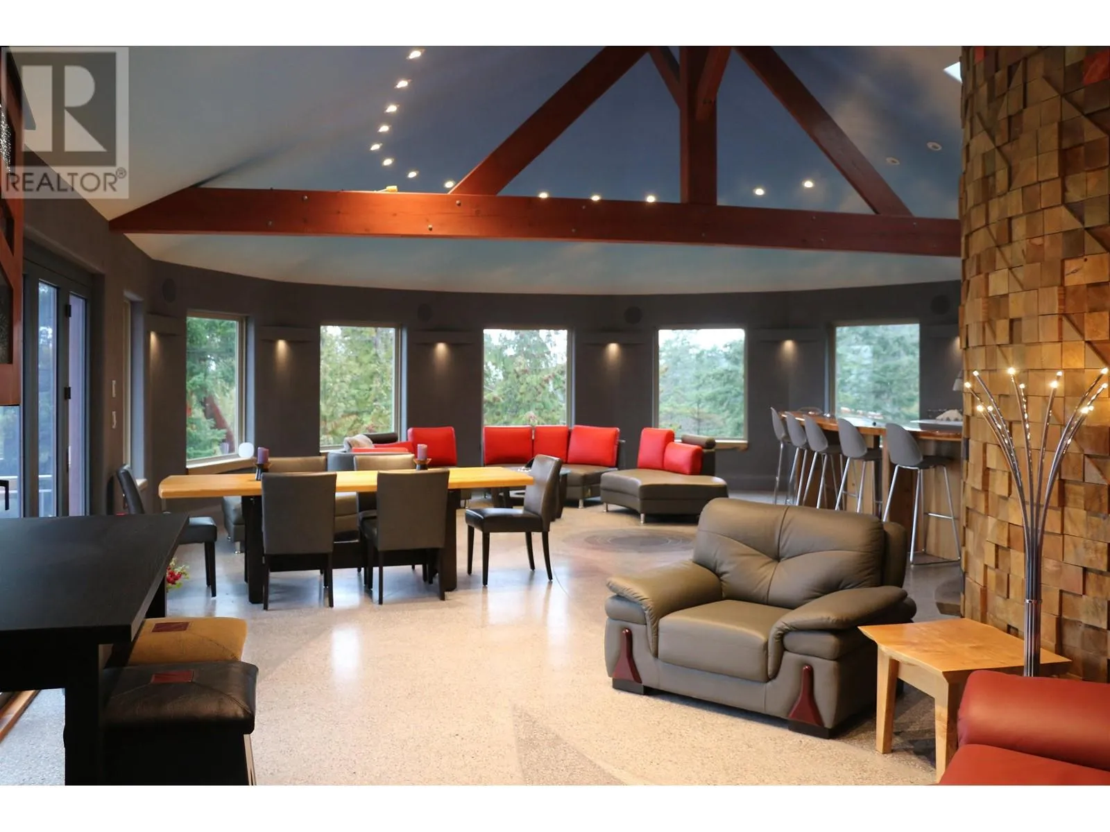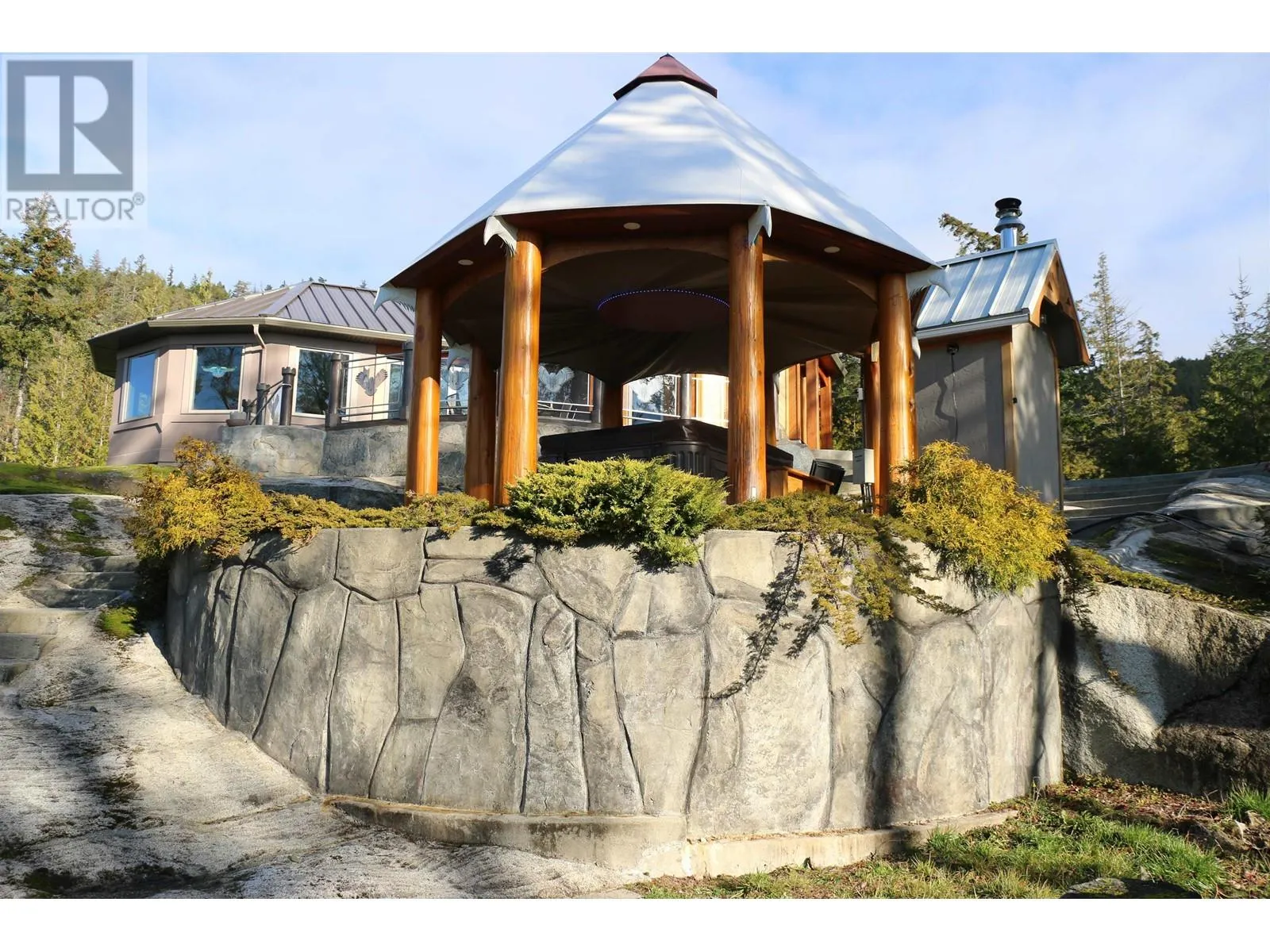 This custom-built 3 bedroom, 4 bath 4,225 square ft home, fully furnished, situated on 2 acres blends luxury and nature with breathtaking views of the Salish Sea, Islands, and Caren Range. Hand-poured radiant concrete floors, vaulted ceilings throughout upper level, and unique murals add artistic flair. Enjoy seamless indoor-outdoor living with 10-ft folding doors opening to a sun-drenched patio with panoramic ocean views framed by arbutus trees. Features include geothermal heating, Heat Recovery Ventilation system, drilled well, outdoor wood-fired Finnish sauna, oversized garage, and a tranquil water fall pool. The open-concept living, dining, and kitchen area is bathed in natural light, and a large office/den offers flexibility. A truly exceptional property in a private, natural setting. (id:27476)