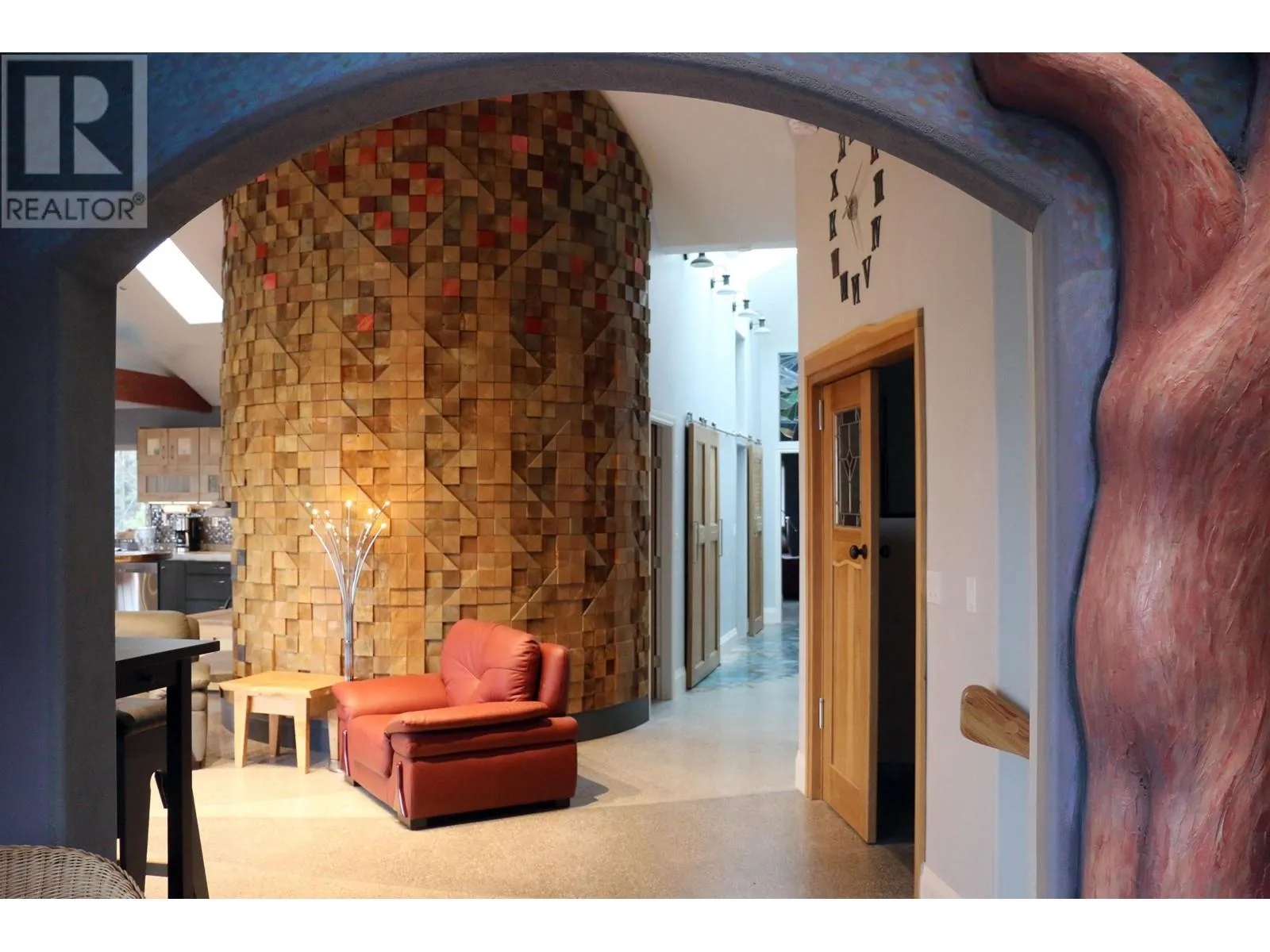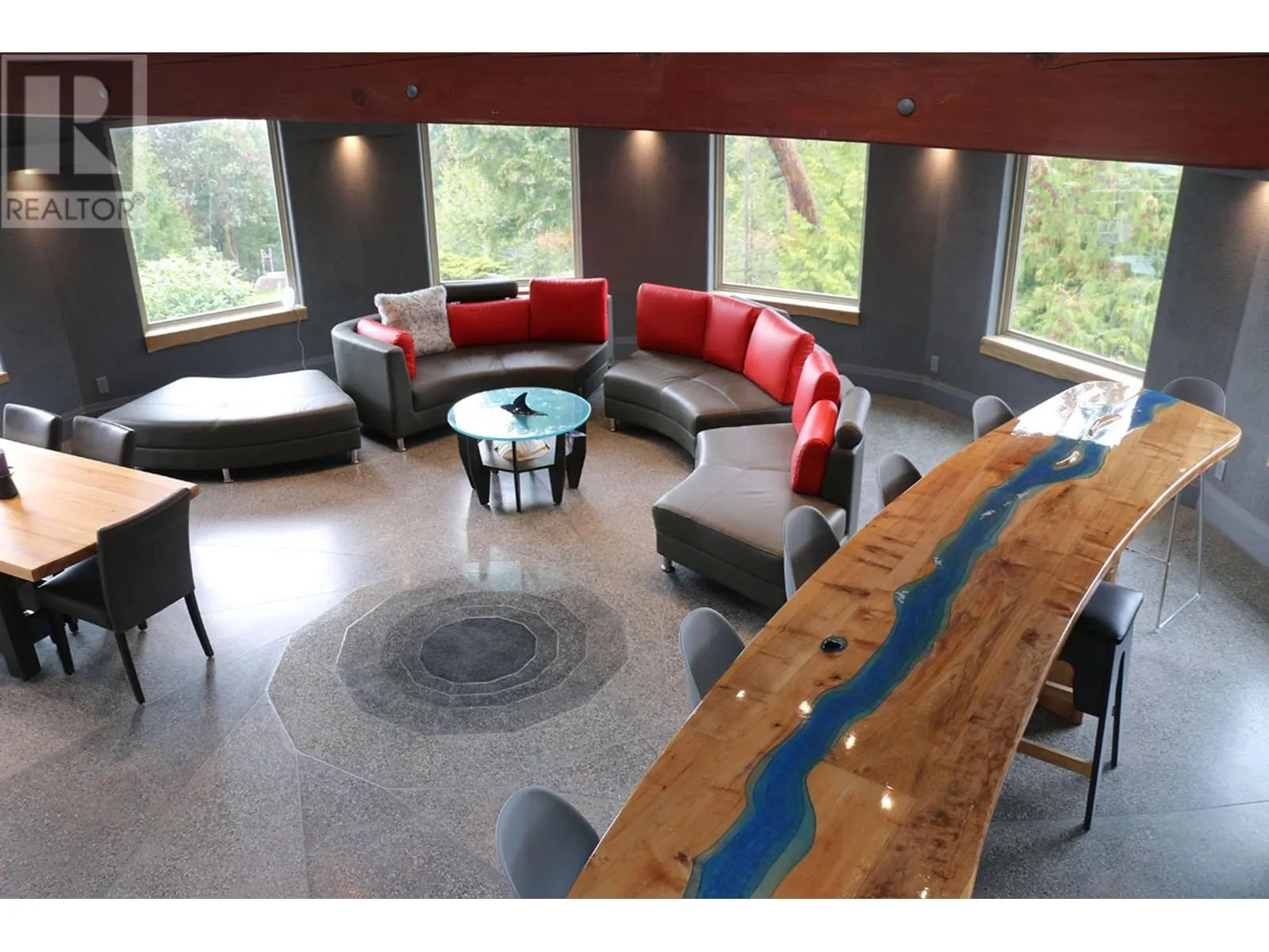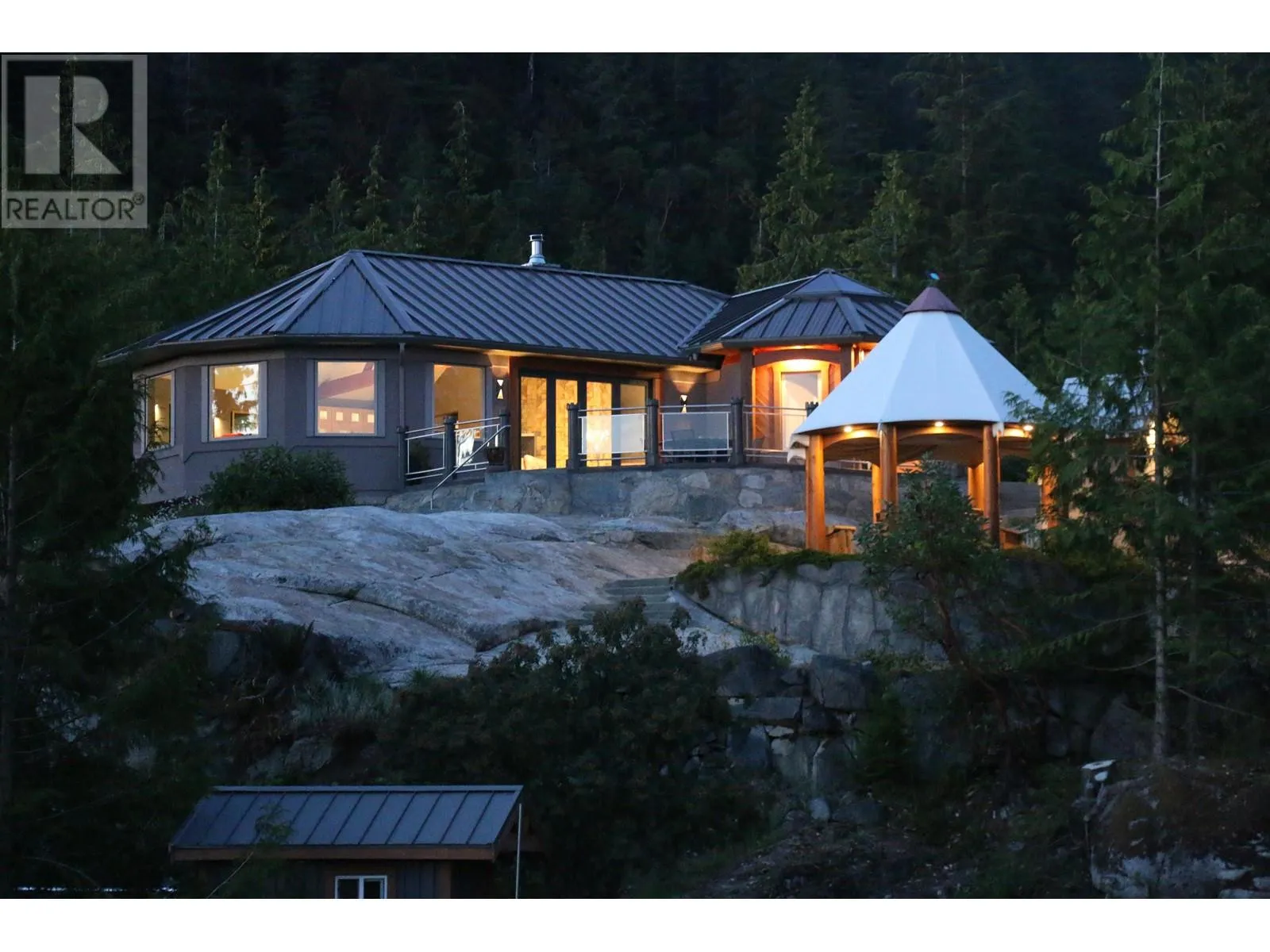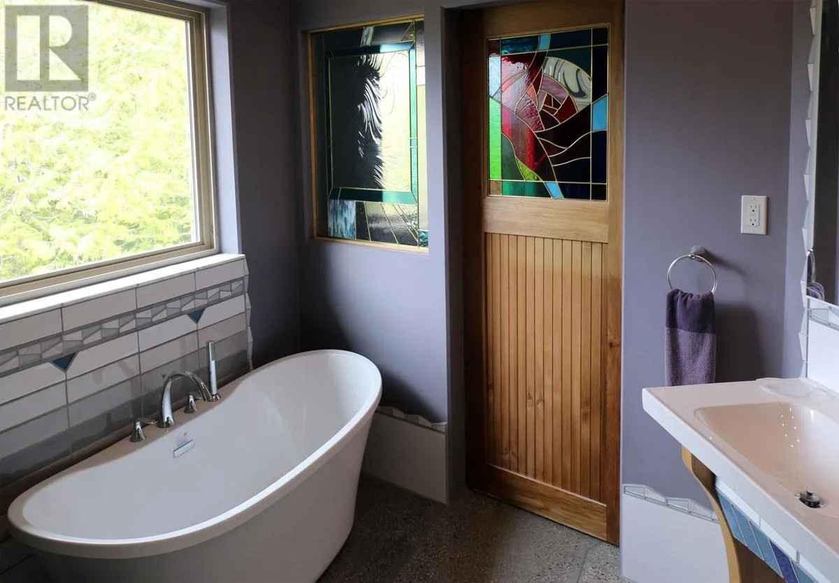 This custom-built 3 bedroom, 4 bath 4,225 square ft home, fully furnished, situated on 2 acres blends luxury and nature with breathtaking views of the Salish Sea, Islands, and Caren Range. Hand-poured radiant concrete floors, vaulted ceilings throughout upper level, and unique murals add artistic flair. Enjoy seamless indoor-outdoor living with 10-ft folding doors opening to a sun-drenched patio with panoramic ocean views framed by arbutus trees. Features include geothermal heating, Heat Recovery Ventilation system, drilled well, outdoor wood-fired Finnish sauna, oversized garage, and a tranquil water fall pool. The open-concept living, dining, and kitchen area is bathed in natural light, and a large office/den offers flexibility. A truly exceptional property in a private, natural setting. (id:27476)