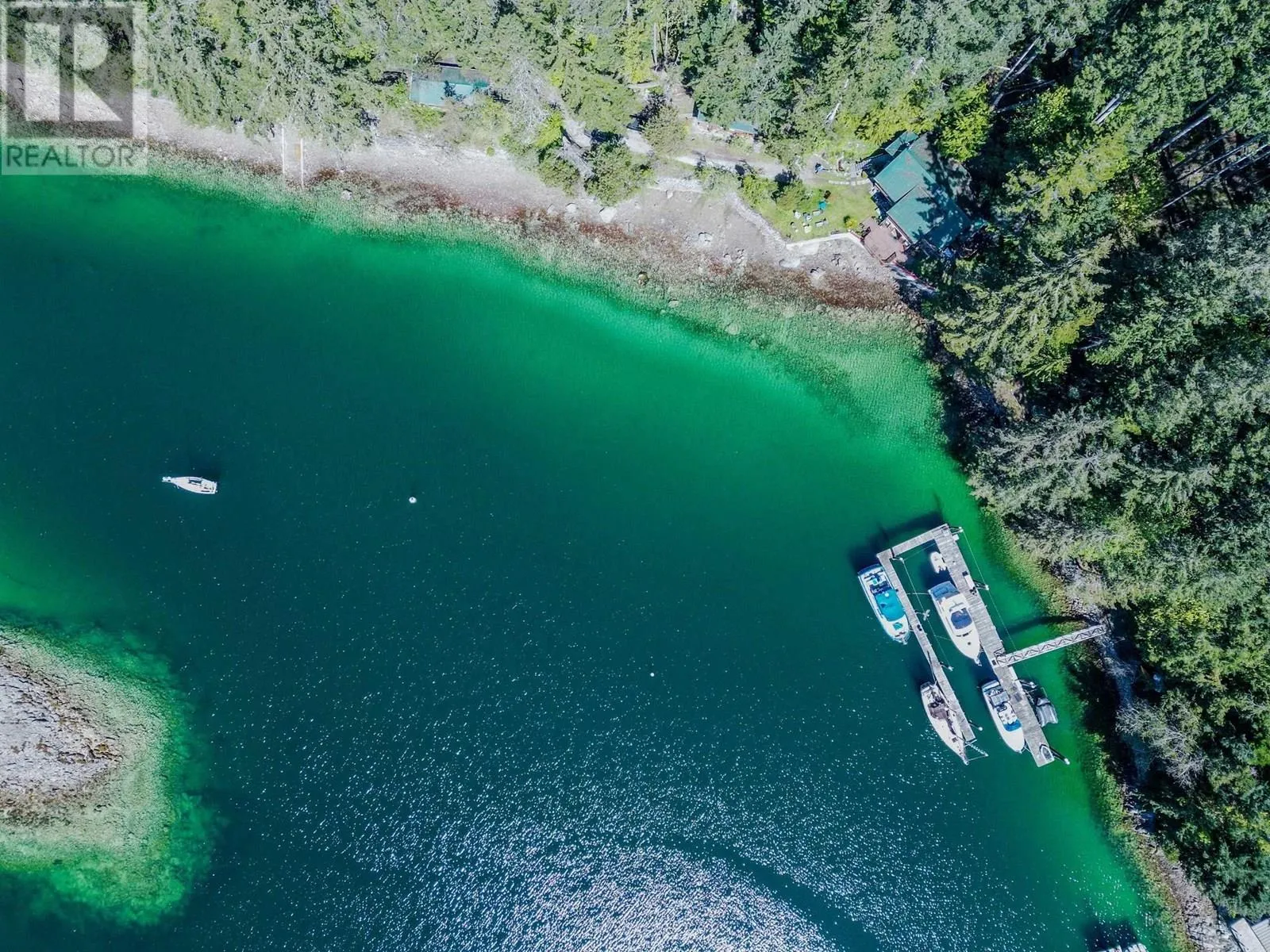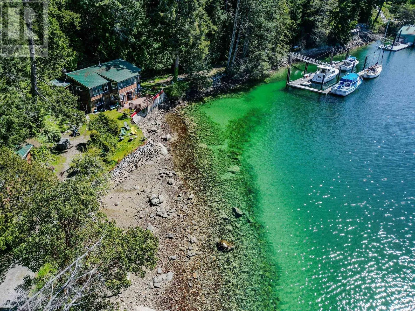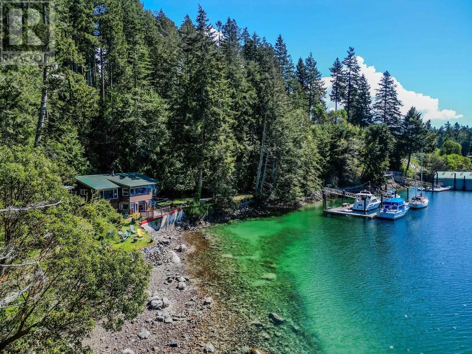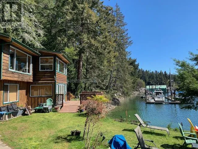 Spectacular 1.6-acre low-bank waterfront property offering breathtaking views and total privacy. This serene West Coast retreat features a charming 2-bedroom, 1-bathroom ground-level home (half-duplex) with over 1,250 sq.ft. of living space. A separate detached guest cabin provides extra accommodation. Deep water dock allows moorage for multiple large boats-perfect for marine lovers. Exclusive use of lower level of home and half-interest in the entire property. With southwest exposure and world-class scenery, this is a boater´s dream and a truly rare coastal offering. (id:27476)