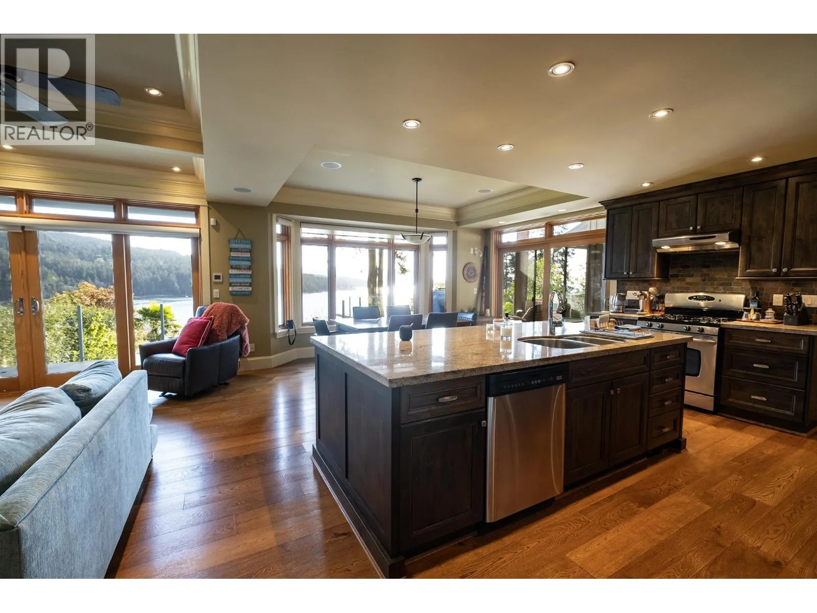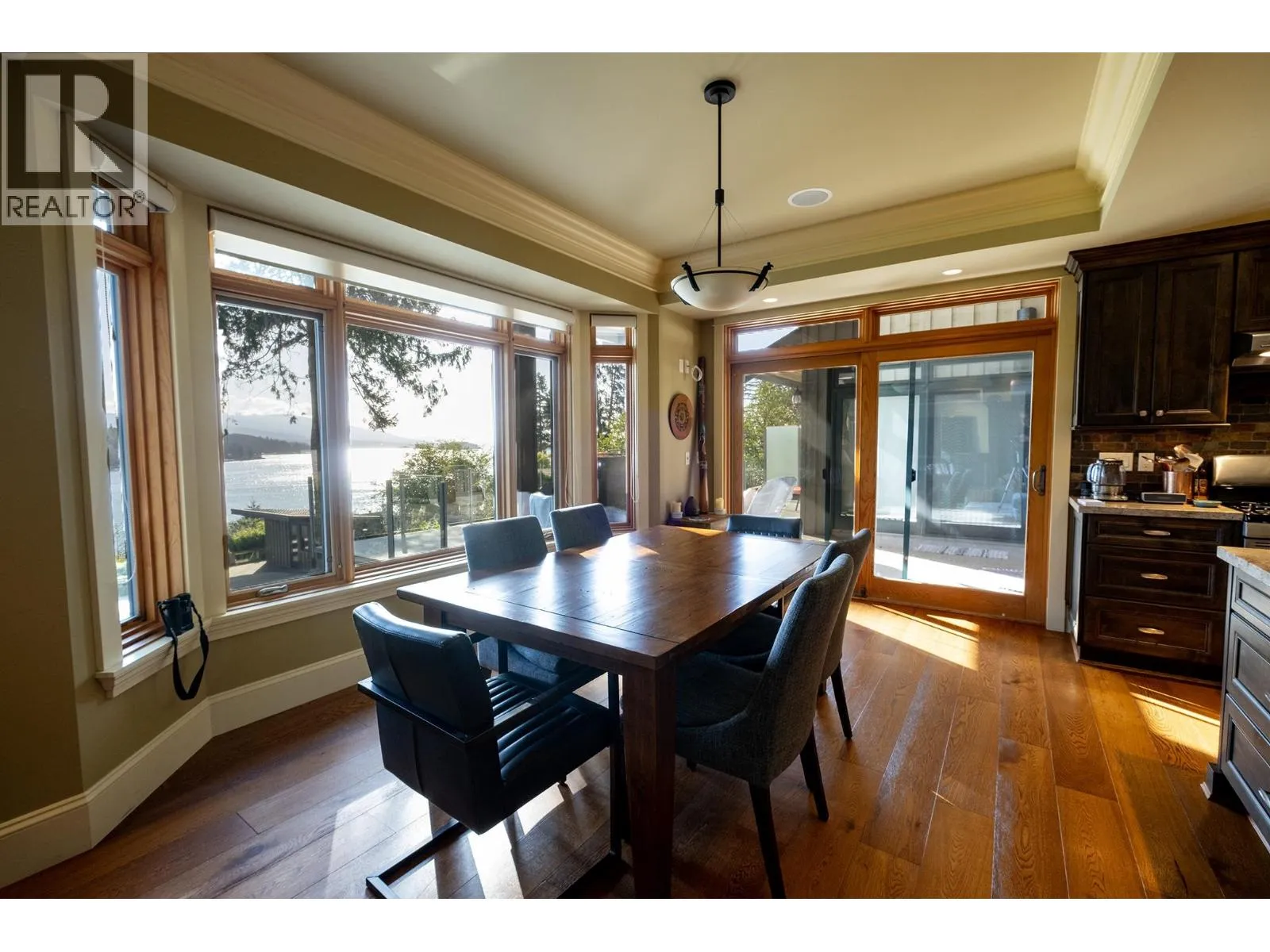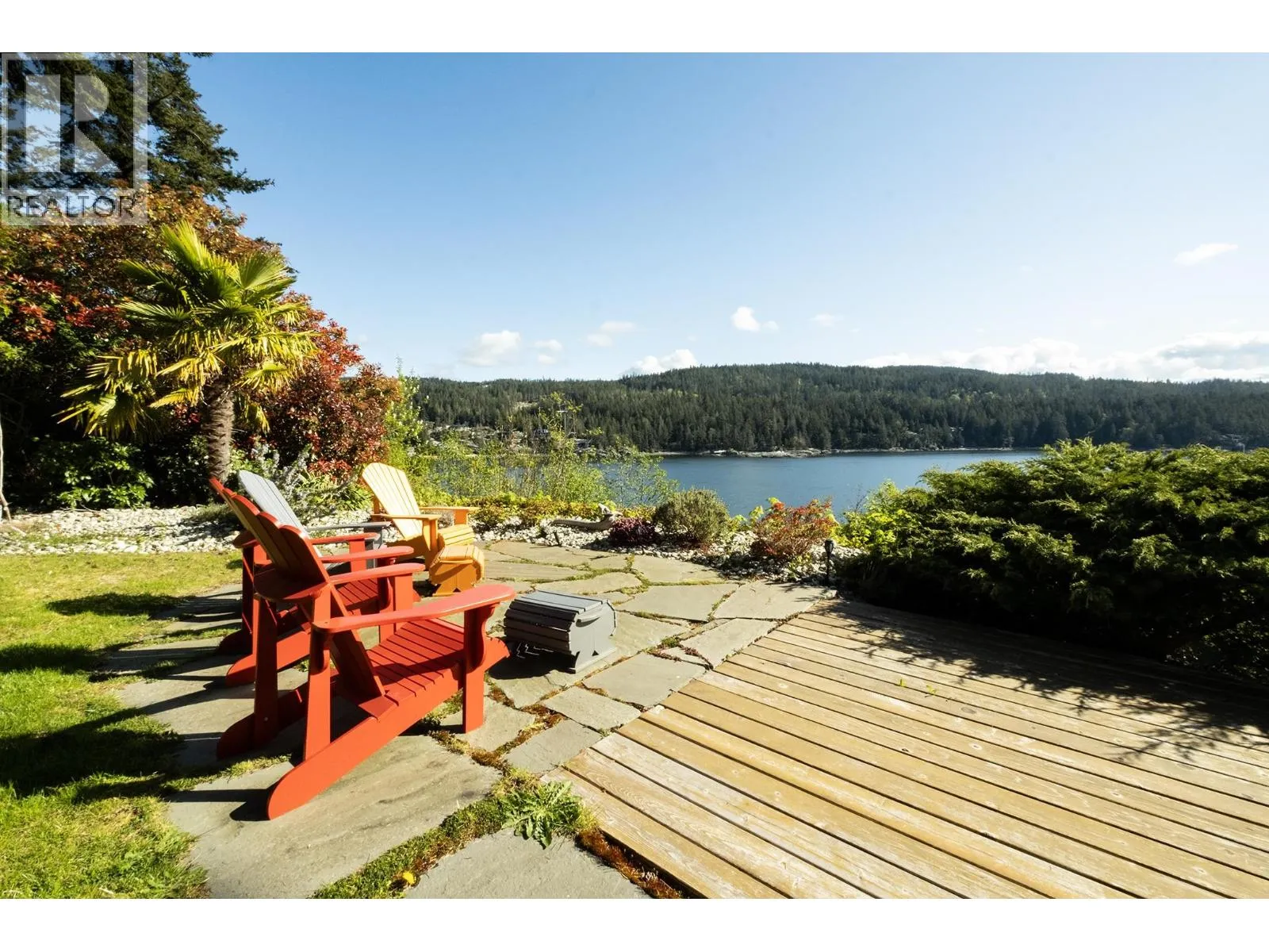 Exceptional West Coast waterfront home in the heart of Halfmoon Bay. Custom-built with high-end finishings throughout, a gourmet kitchen, open living spaces and a luxurious main floor primary suite. Enjoy expansive decks with stunning ocean views over Sargeant Bay.The home also features a triple car garage, a 1-bed in-law suite perfect for guests or vacation rental, a media room, and backup gas generator. The lower level offers a large games room for guests. Set on nearly an acre with a gated, tree-lined drive and landscaped yard with new stairs from the property down to the beach.Enjoy summer afternoons kayaking or paddle boarding from your own front yard! New additions include a private outdoor office and a garden sauna with ocean views-perfect for work and relaxation.A rare coastal gem! (id:27476)