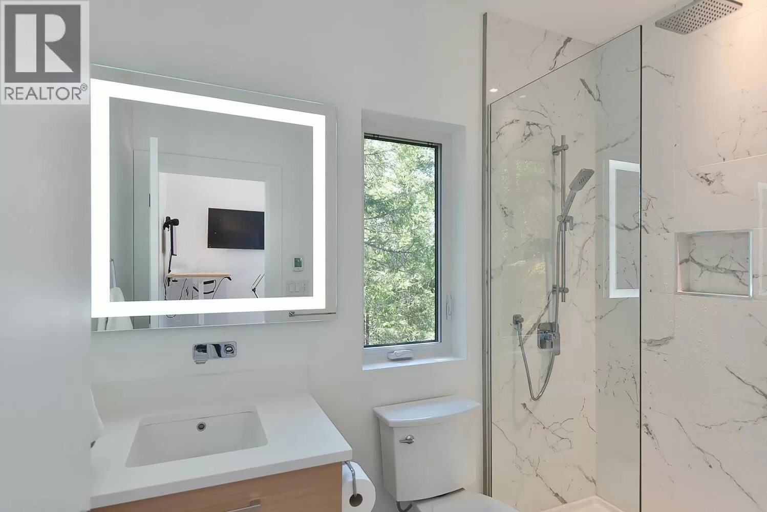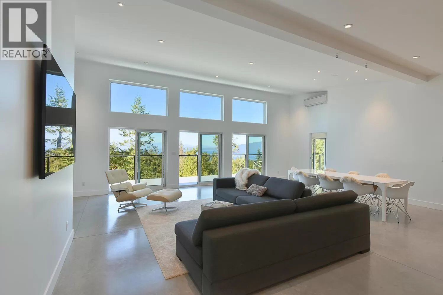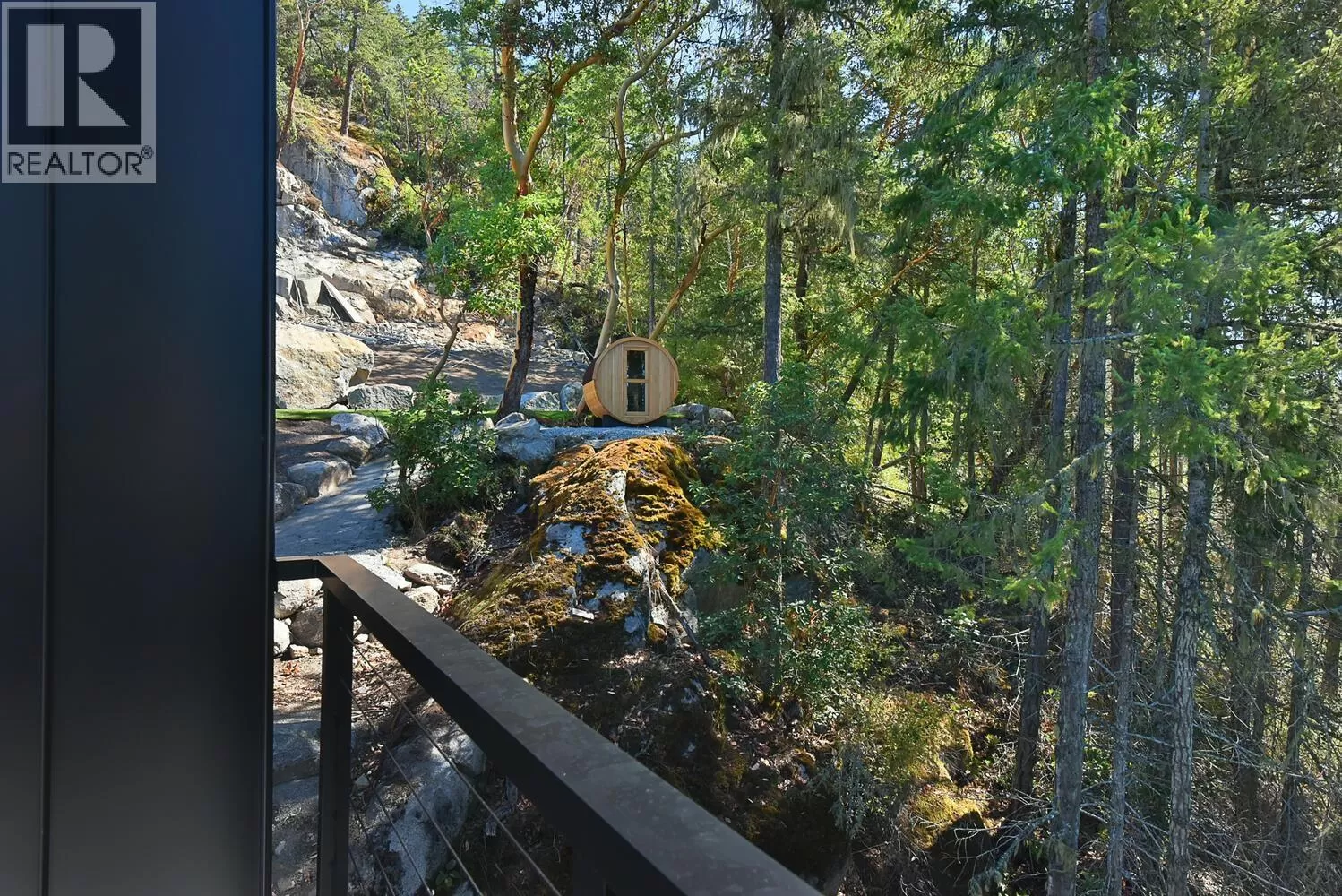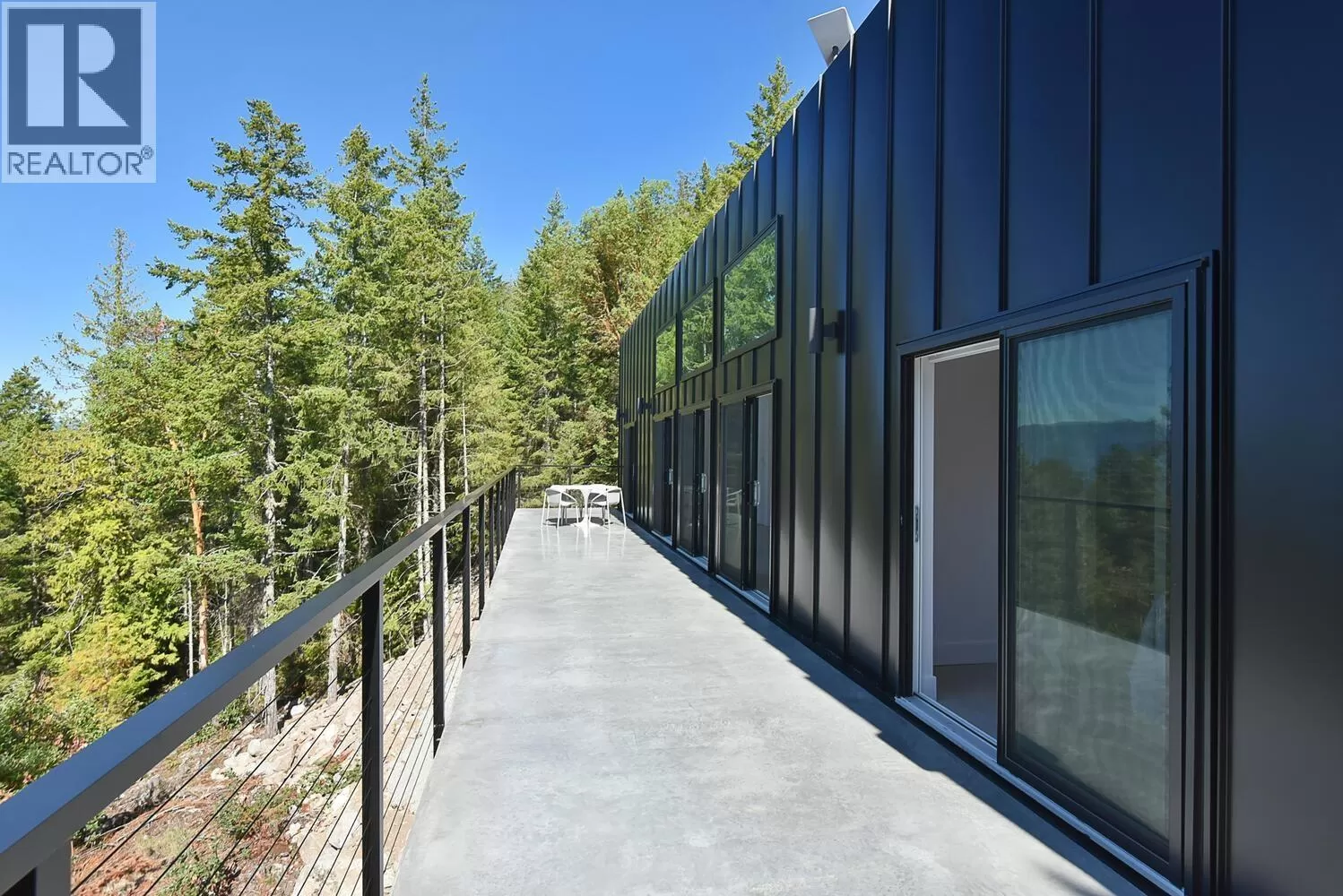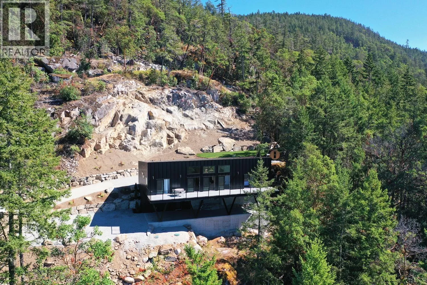 One of a kind, stunning new custom built home situated on 4.35 acres of total privacy. The sun drenched ultra modern masterpiece blends into the West Coast forested setting, creating a striking visual element & features perfect SW exposure with jaw dropping ocean views/ sunsets. Open concept living space, radiant heated concrete floors, A/C, 3 bedrooms all with their own luxurious en-suites & a massive cantilevered deck to unwind & take in the views. Minutes to several marinas, Provincial Parks & the beach. Incredible gardening opportunities, level lawn area, Arbutus & Fir Trees, Cedar Barrel sauna, tons of storage. This is a nearly zero maintenance home & property, built to last with 2-5-10 warranty. A must see. (id:27476)