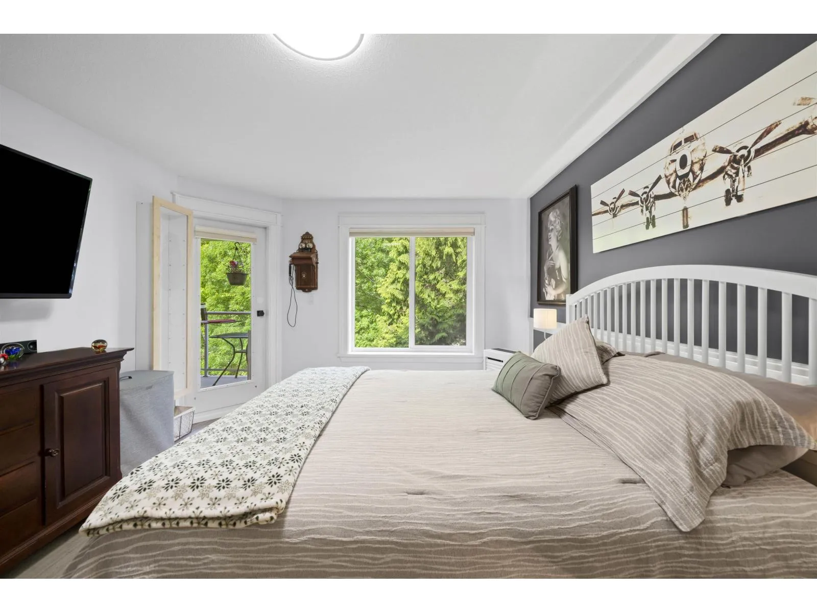 Discover the ultimate getaway in this beautifully renovated top-floor, corner condo, located just one block from the stunning shores of Harrison Lake and the beach. This spacious 2-bedroom, 2-bathroom home features a bright, open-concept layout with a modern kitchen, stainless steel appliances, in-suite laundry, and thoughtfully curated designer paint, wainscotting and specialty lighting throughout"-adding a touch of elegance and style to every room. Enjoy peace of mind with 1 secured parking stall, a storage locker, and a dedicated bike storage area. Whether you're looking for a full-time residence or a weekend escape, this home delivers the perfect blend of comfort, sophistication, and natural beauty. (id:27476)