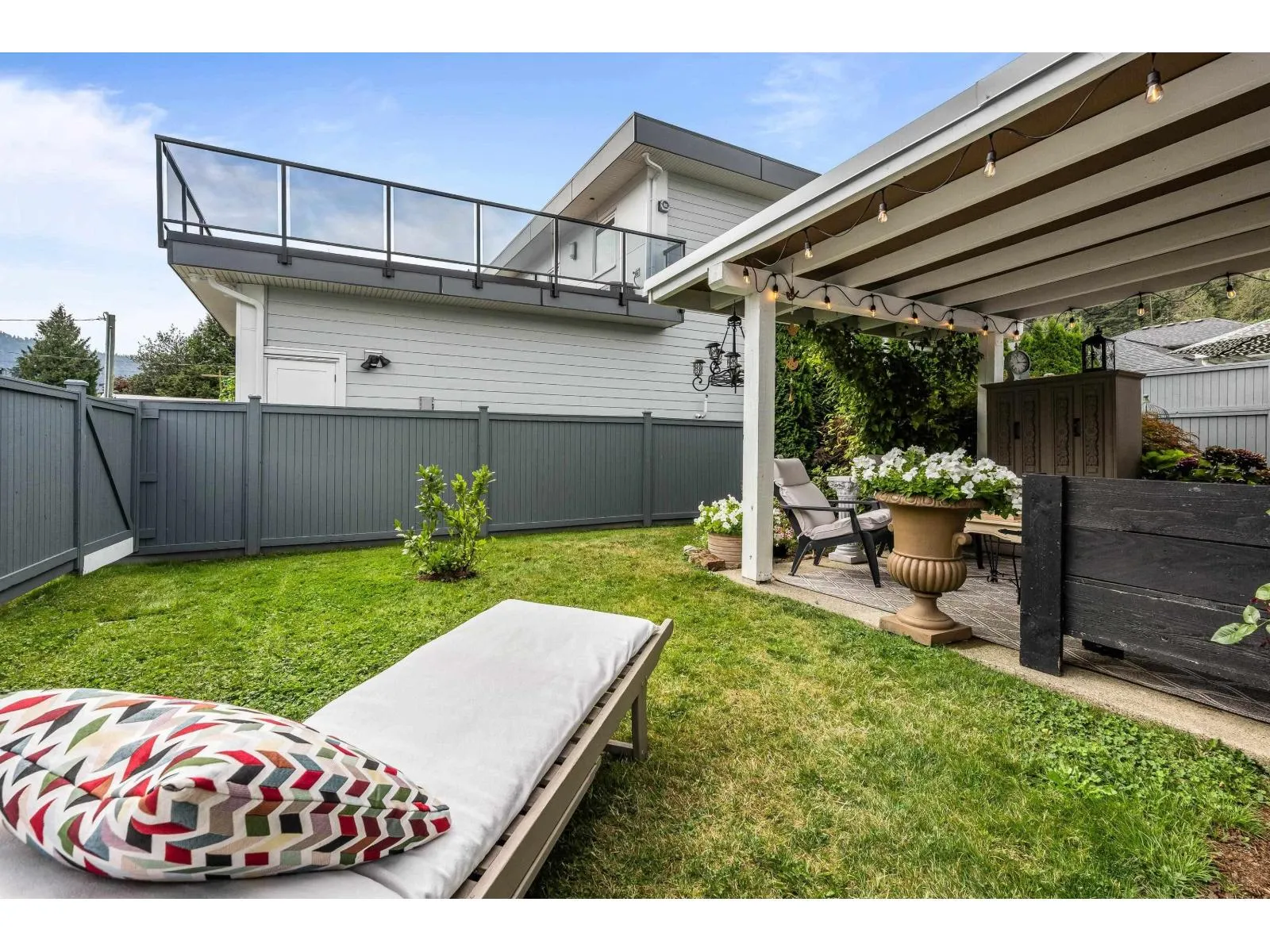 LIVE THE GOOD LIFE at Harrison Lake Estates! ENJOY RETIREMENT in this beautifully renovated & rarely available 2 Bedroom End Unit w/double garage located in the SOUGHT-AFTER 55+ well-maintained gated community w/ranch style townhomes, RV parking, low maintenance fees, & BREATHTAKING MOUNTAIN VIEWS. This home boasts loads of updates incl a brand-new kitchen, extended cabinetry & new appliances that lead to an airy, bright living/dining room w/vaulted ceilings, skylights, and an abundance of windows for ample natural light. Enjoy the gloriously landscaped, fully fenced southerly backyard "â one of the largest in the complex with 3 separate patio areas! Under the BRAND NEW PATIO COVER is a perfect place to relax, read a book, or entertain. Gas BBQ hookup. NEW A/C & LIGHTING! Live just blocks from the picturesque Harrison Lake; walk to the beach & restaurants! No K9 size restriction. Clubhouse w/2 guest suites. Living here, you will feel like you're on vacation. (id:27476)