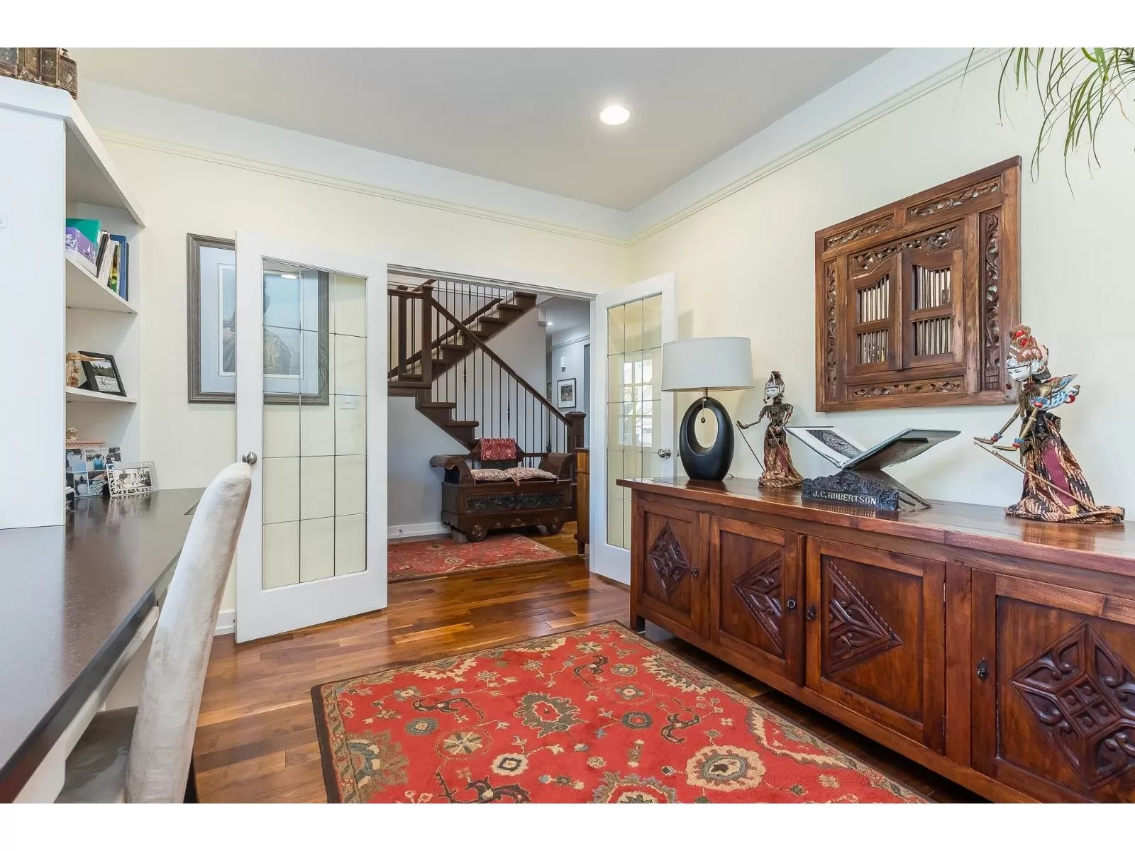 Immaculate, custom built,3000 plus sq ft home. This Gorgeous home comes complete with everything for a discerning Buyer. Custom designed with the master bedroom on the main floor and a luxurious 5 piece ensuite with separate walk-in shower and free standing soaker tub & fireplace. Built to perfection with a combined living dining and kitchen with S/S appliances(New B-I oven & Fridge 2023) and custom cabinets. High-end finishing adorn every room with high ceilings, hardwood floors, tile, crown and new paint. Upstairs has 2 large bedrooms and a media(games)room. Oversized garage with lots of storage, almost 10,000 SqFt lot, fully fenced and landscaped yard with U/G Sprinklers. New Paint, Fully air-conditioned with updated heat pump(2020),heat exchanger(2019)HWT(2021)and RV parking. Call Now. (id:27476)