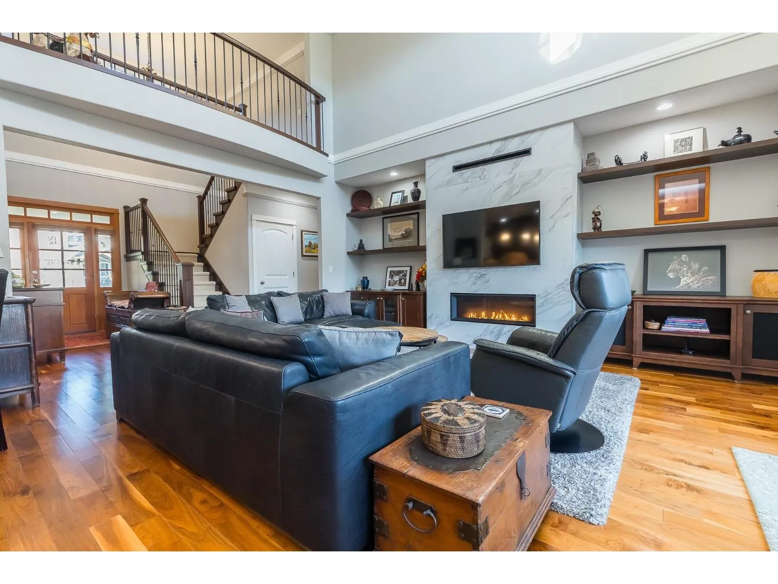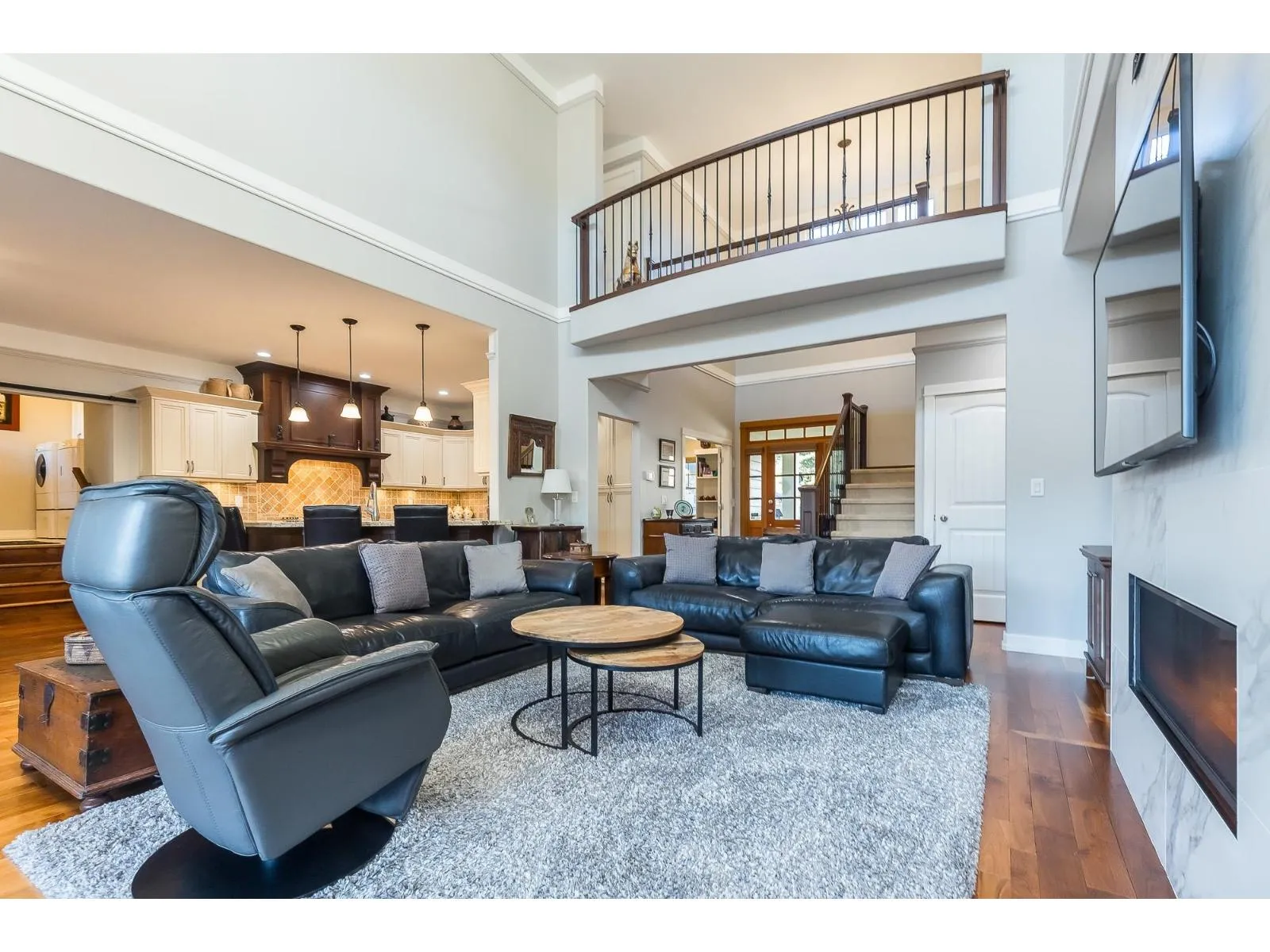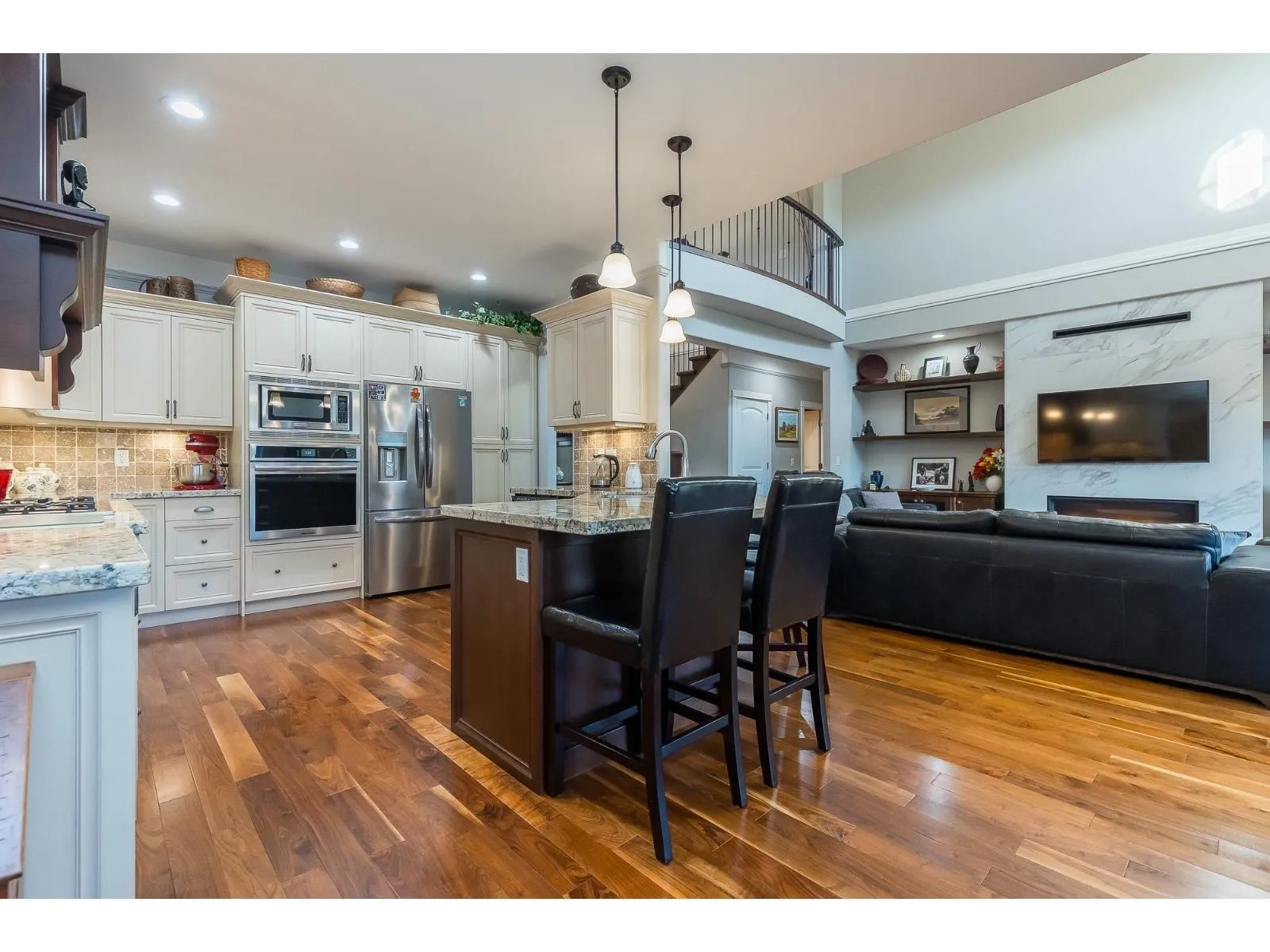 Immaculate, custom built,3000 plus sq ft home. This Gorgeous home comes complete with everything for a discerning Buyer. Custom designed with the master bedroom on the main floor and a luxurious 5 piece ensuite with separate walk-in shower and free standing soaker tub & fireplace. Built to perfection with a combined living dining and kitchen with S/S appliances(New B-I oven & Fridge 2023) and custom cabinets. High-end finishing adorn every room with high ceilings, hardwood floors, tile, crown and new paint. Upstairs has 2 large bedrooms and a media(games)room. Oversized garage with lots of storage, almost 10,000 SqFt lot, fully fenced and landscaped yard with U/G Sprinklers. New Paint, Fully air-conditioned with updated heat pump(2020),heat exchanger(2019)HWT(2021)and RV parking. Call Now. (id:27476)