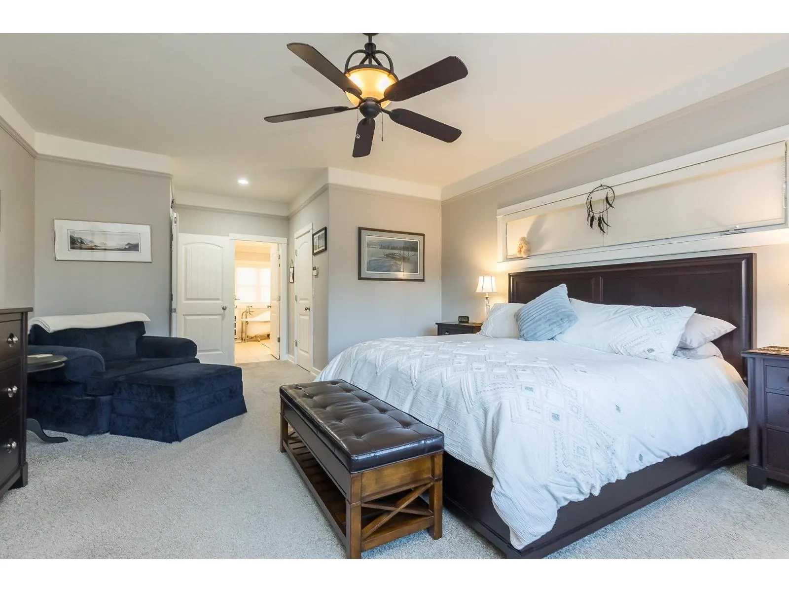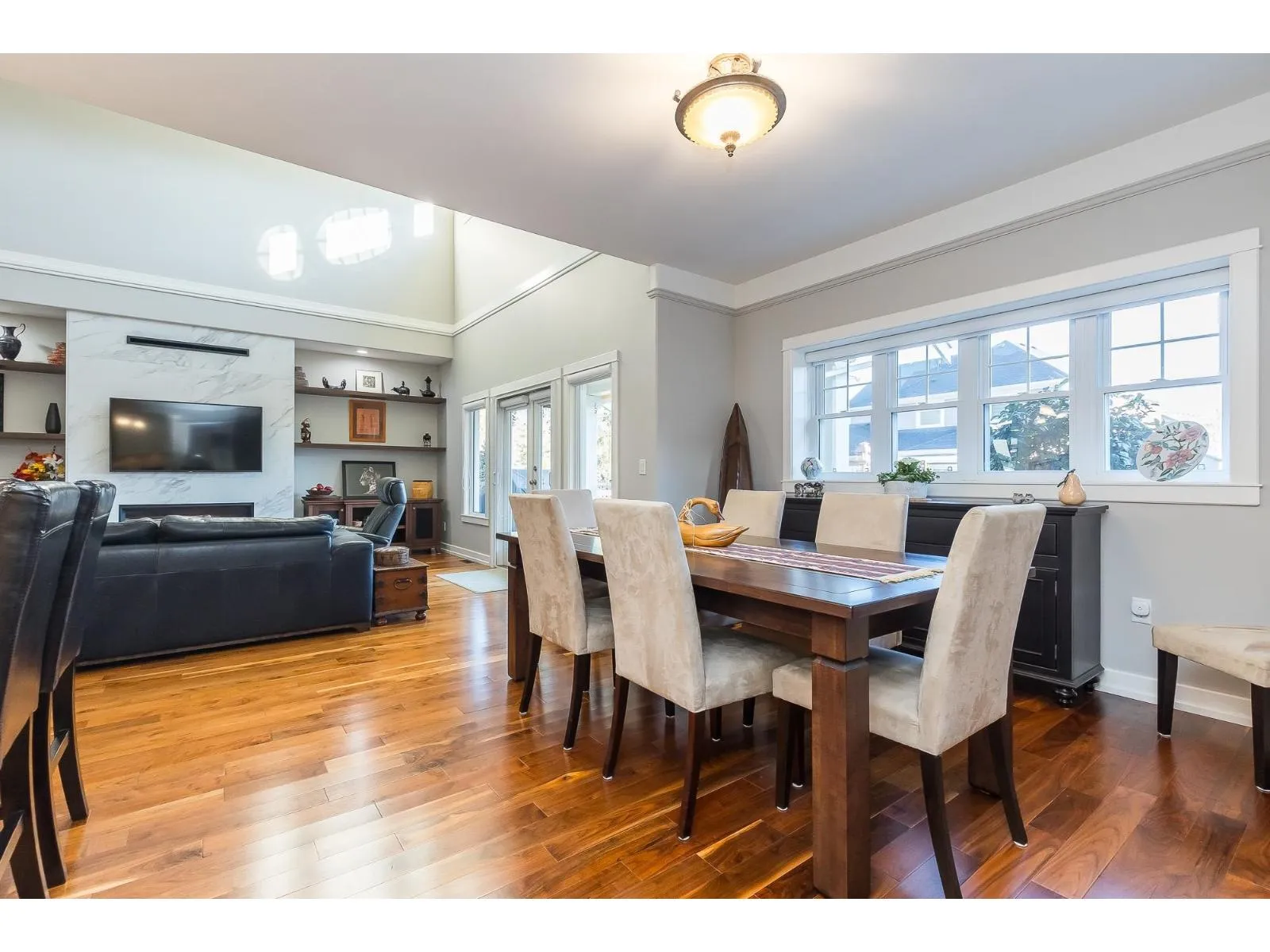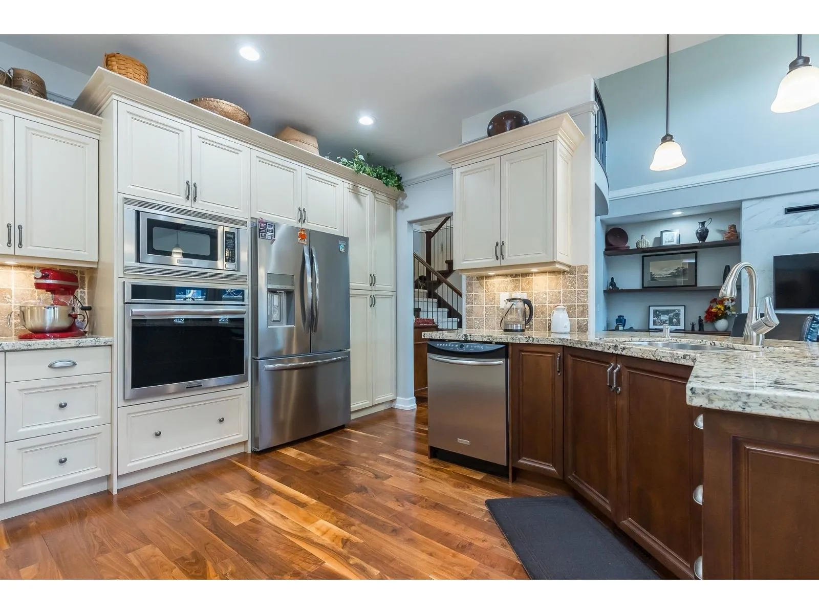 Immaculate, custom built,3000 plus sq ft home. This Gorgeous home comes complete with everything for a discerning Buyer. Custom designed with the master bedroom on the main floor and a luxurious 5 piece ensuite with separate walk-in shower and free standing soaker tub & fireplace. Built to perfection with a combined living dining and kitchen with S/S appliances(New B-I oven & Fridge 2023) and custom cabinets. High-end finishing adorn every room with high ceilings, hardwood floors, tile, crown and new paint. Upstairs has 2 large bedrooms and a media(games)room. Oversized garage with lots of storage, almost 10,000 SqFt lot, fully fenced and landscaped yard with U/G Sprinklers. New Paint, Fully air-conditioned with updated heat pump(2020),heat exchanger(2019)HWT(2021)and RV parking. Call Now. (id:27476)