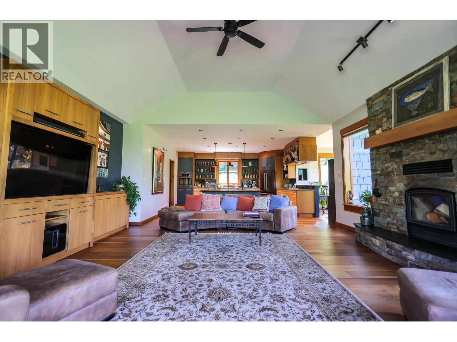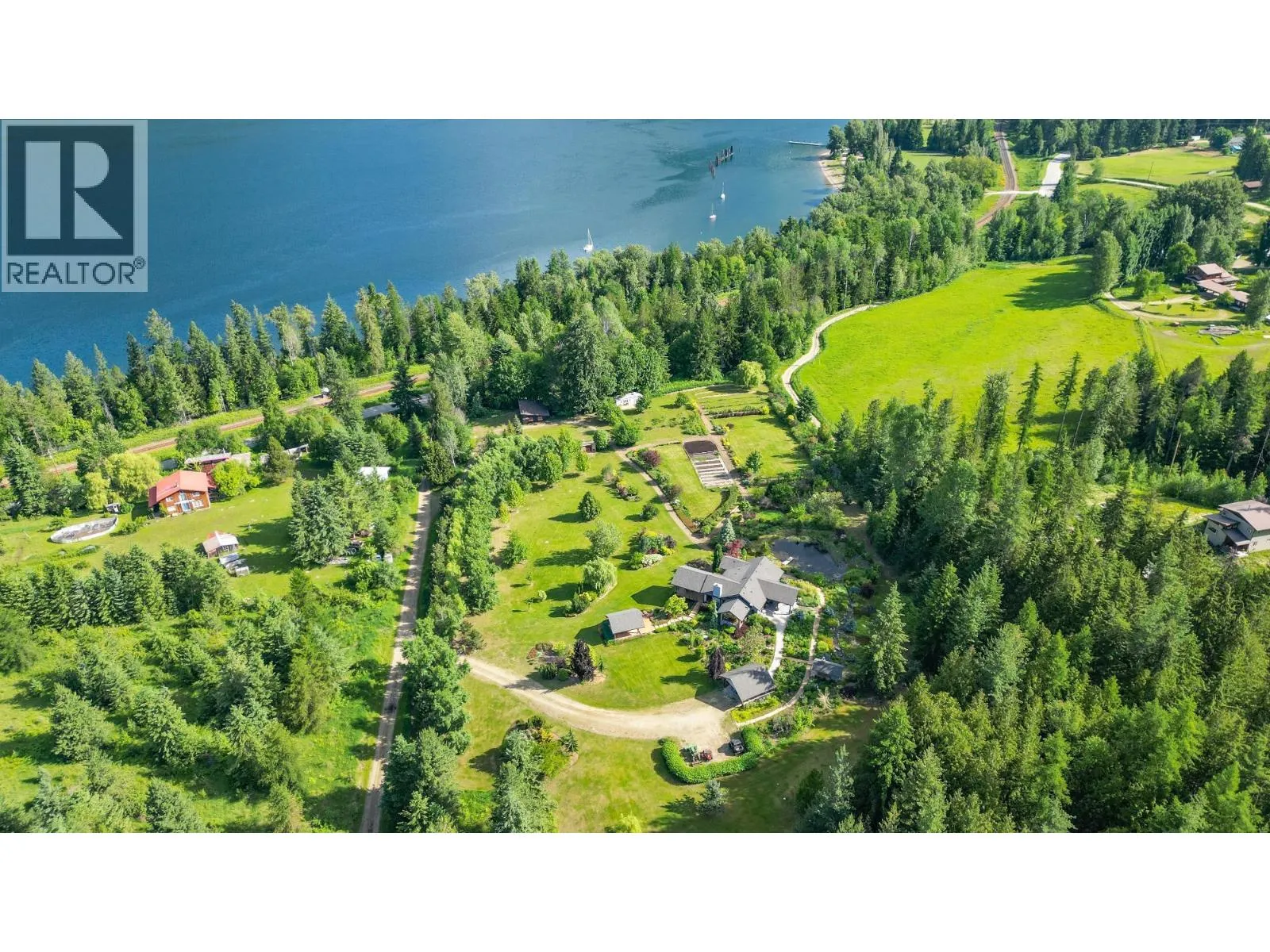 Step into the realm of luxury and natural splendor at 6890 Harrop-Procter. This meticulously designed home, originally crafted in 2008 and meticulously renovated in 2015 and 2020, offers a fusion of contemporary elegance and timeless charm. From the moment you enter, you're greeted by the warmth of hand-scraped Walnut floors that seamlessly blending with Maple and Walnut cabinets throughout. Floor-to-ceiling windows capture breathtaking views of the lake and mountains, while post-and-beam structures frame outdoor living spaces equipped with Italian pizza ovens and high-end decks. Inside, every detail is curated for comfort and style. Two laundry rooms, in-floor heating, and vaulted ceilings ensure a luxurious lifestyle. The lower floor, with its separate entrance, presents a versatile space ideal for a B&B setup, while the main floor showcases a chef's kitchen adorned with Mile appliances and quartz countertops. Outside, the property unfolds across 51.8 acres of manicured landscape, boasting fenced pastures, a stream-fed pond with a charming dock, and lush forests dotted with cedar, Douglas fir, and White pine. The opportunity to host up to 10 events annually, from weddings to social events. Additional amenities include rustic Bohemian outdoor washrooms, a double car garage with workshop area and single car carport with the potential for expansion or development. 6890 Harrop-Procter, a perfect property for a Homestead, where the beauty of nature is your everyday backdrop. (id:27476)