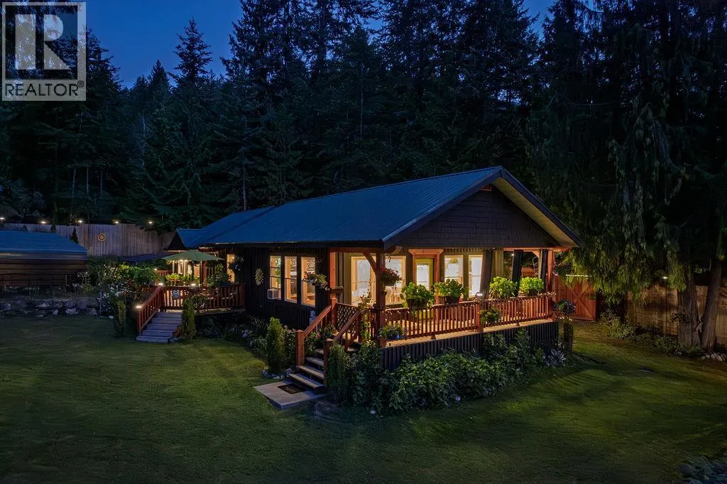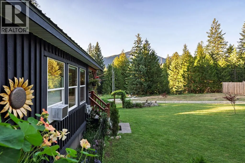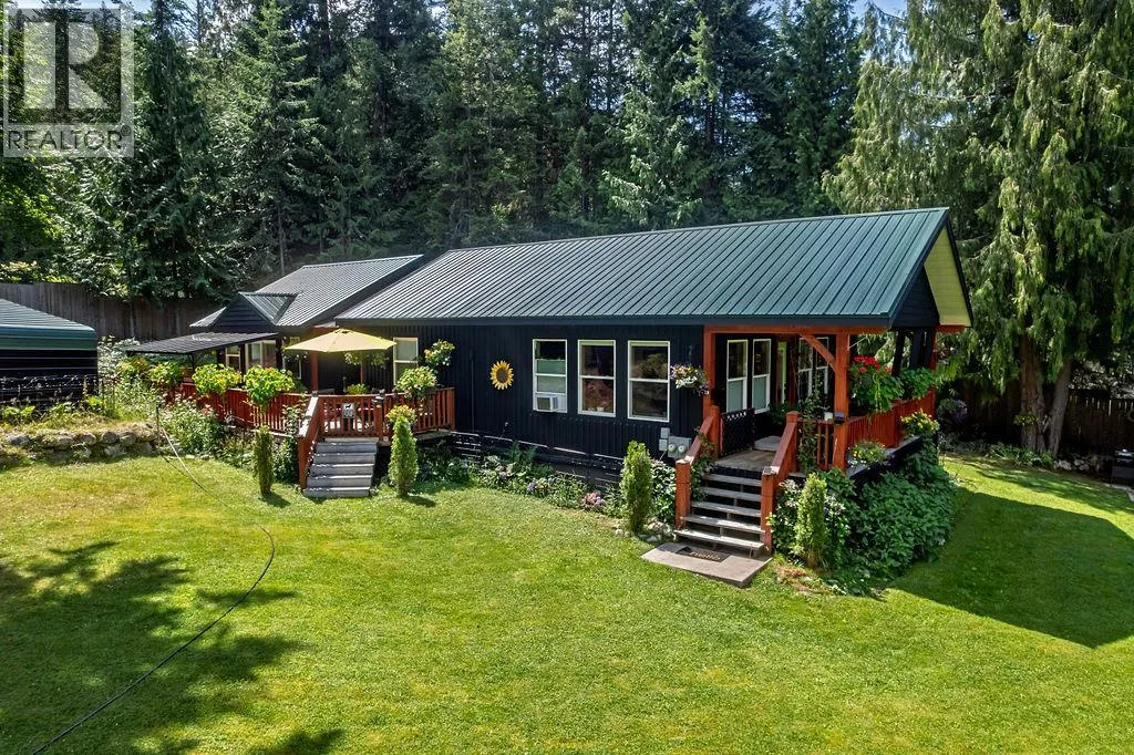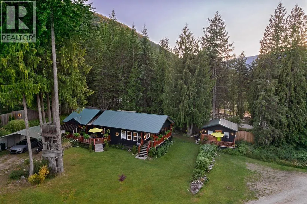 A beautiful rancher located in a peaceful setting in the Kootenays offers a rare opportunity for relaxed living, investment, or both! Situated on a serene 0.64-acre piece of land, this stunning property is a gem. Finished construction in 2015, the main 1250sf home features a light and bright modern open-concept kitchen. The tastefully designed and recently updated kitchen boasts a feature island with an easy-to-maintain quartz countertop, lots of storage, custom lighting radiating the floating maple wood shelves, modern white solid wood maple cabinets, and stainless-steel appliances. Offering two bedrooms and two full bathrooms with the potential to be divided into two separate living spaces. The master bedroom flows onto a deck and includes a walk-in closet and an ensuite bathroom. High ceilings, bamboo flooring, and ample natural light create a comfortable living space. The laundry room has ample storage. If this sounds amazing, it gets better! Additionally, on the property is the successful vacation rental, ""The Kootenay Cottage"". The 300sf cottage features one bedroom, one bathroom, and an open-concept living area. Enjoy the peaceful and private deck and the outside BBQ area, storage and slate floors. The Cottage can be used for family or income purposes. Property contains 2 legal addresses, 2 septic systems and 20 x 20ft carport. Whether for family or investment purposes, this type of opportunity comes along once in a lifetime. Being sold in conjunction with MLS#10357902 (id:27476)
