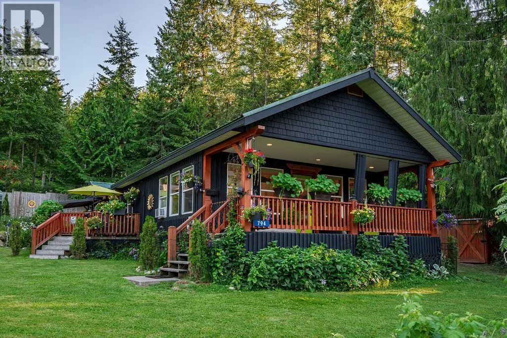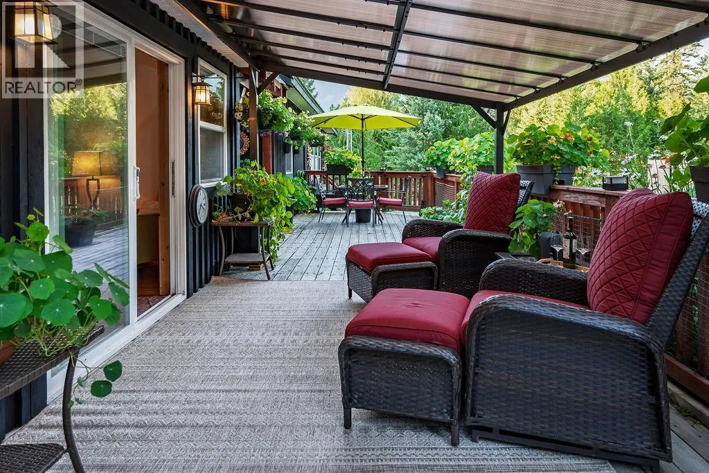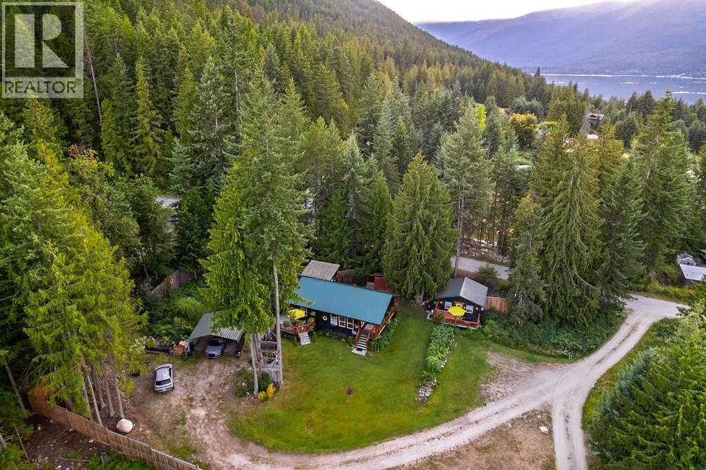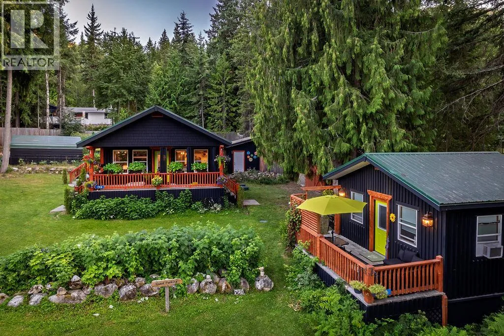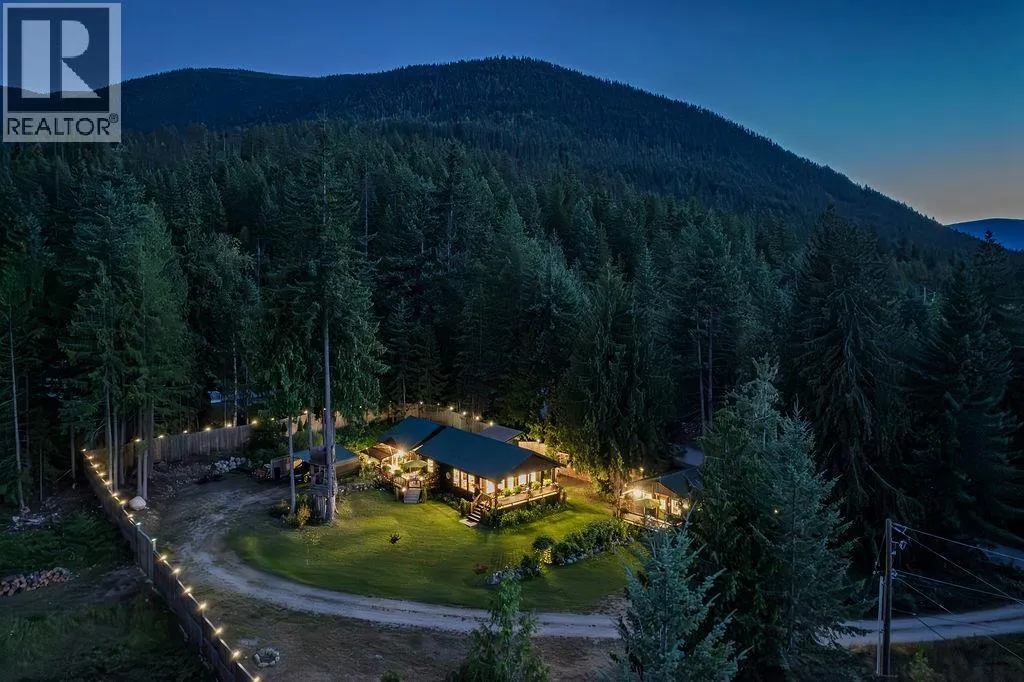 A beautiful rancher located in a peaceful setting in the Kootenays offers a rare opportunity for relaxed living, investment, or both! Situated on a serene 0.64-acre piece of land, this stunning property is a gem. Finished construction in 2015, the main 1250sf home features a light and bright modern open-concept kitchen. The tastefully designed and recently updated kitchen boasts a feature island with an easy-to-maintain quartz countertop, lots of storage, custom lighting radiating the floating maple wood shelves, modern white solid wood maple cabinets, and stainless-steel appliances. Offering two bedrooms and two full bathrooms with the potential to be divided into two separate living spaces. The master bedroom flows onto a deck and includes a walk-in closet and an ensuite bathroom. High ceilings, bamboo flooring, and ample natural light create a comfortable living space. The laundry room has ample storage. If this sounds amazing, it gets better! Additionally, on the property is the successful vacation rental, ""The Kootenay Cottage"". The 300sf cottage features one bedroom, one bathroom, and an open-concept living area. Enjoy the peaceful and private deck and the outside BBQ area, storage and slate floors. The Cottage can be used for family or income purposes. Property contains 2 legal addresses, 2 septic systems and 20 x 20ft carport. Whether for family or investment purposes, this type of opportunity comes along once in a lifetime. Being sold in conjunction with MLS#10357902 (id:27476)