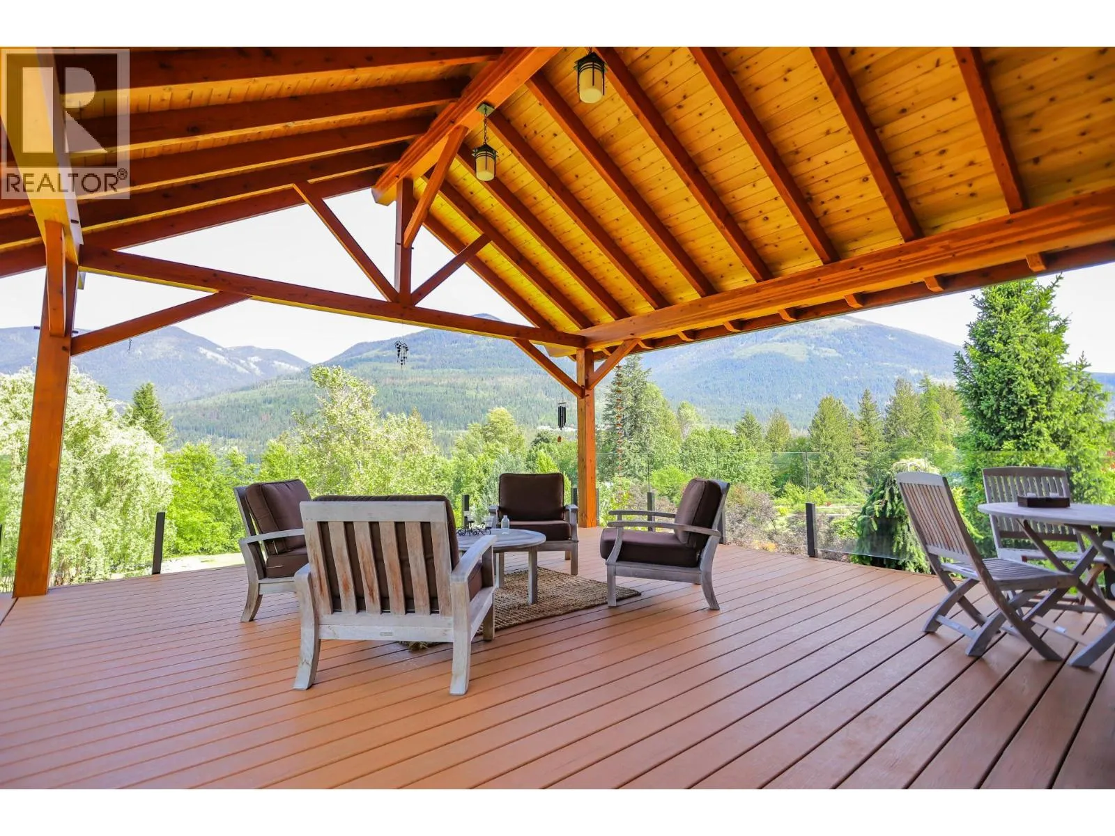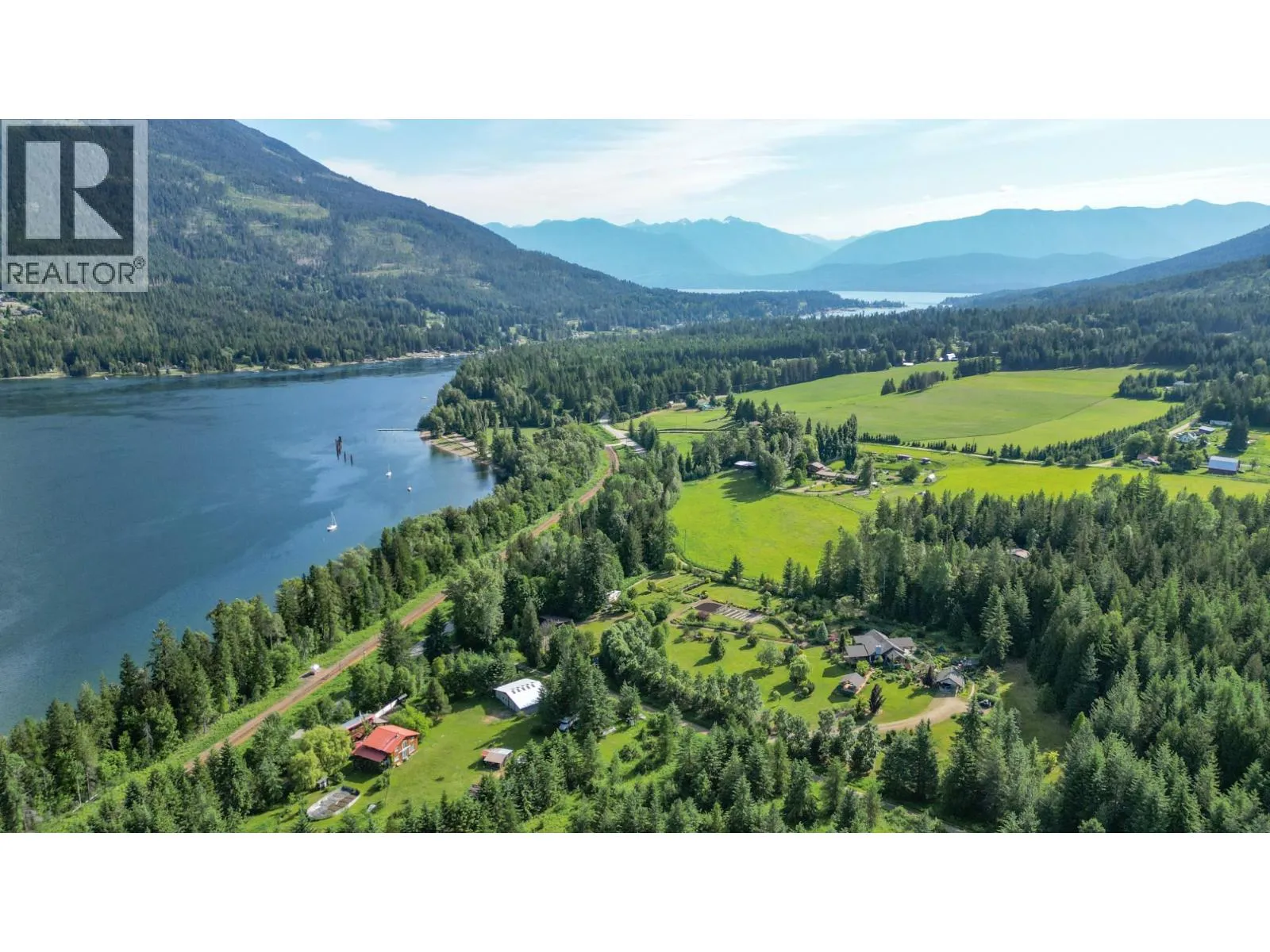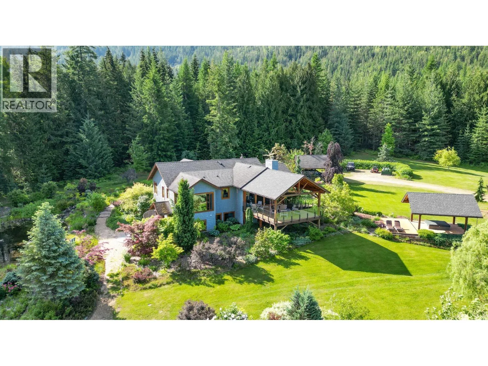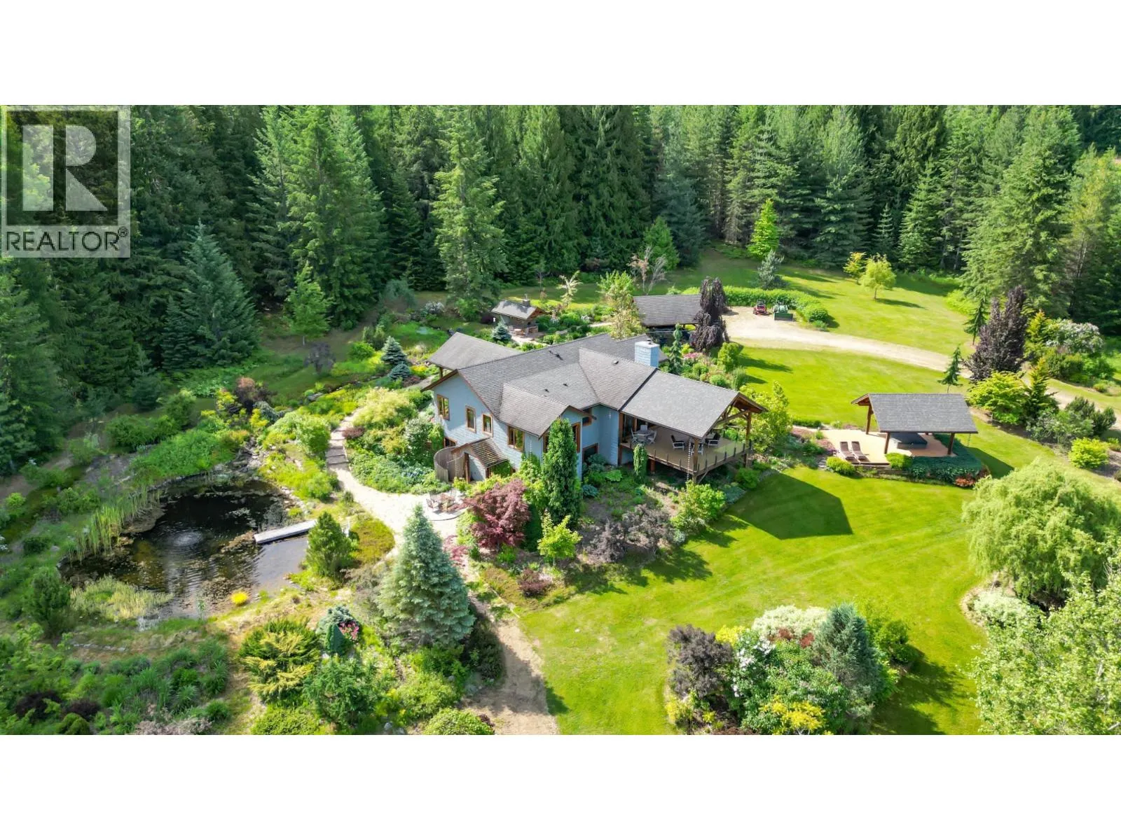Step into the realm of luxury and natural splendor at 6890 Harrop-Procter. This meticulously designed home, originally crafted in 2008 and meticulously renovated in 2015 and 2020, offers a fusion of contemporary elegance and timeless charm. From the moment you enter, you're greeted by the warmth of hand-scraped Walnut floors that seamlessly blending with Maple and Walnut cabinets throughout. Floor-to-ceiling windows capture breathtaking views of the lake and mountains, while post-and-beam structures frame outdoor living spaces equipped with Italian pizza ovens and high-end decks. Inside, every detail is curated for comfort and style. Two laundry rooms, in-floor heating, and vaulted ceilings ensure a luxurious lifestyle. The lower floor, with its separate entrance, presents a versatile space ideal for a B&B setup, while the main floor showcases a chef's kitchen adorned with Mile appliances and quartz countertops. Outside, the property unfolds across 51.8 acres of manicured landscape, boasting fenced pastures, a stream-fed pond with a charming dock, and lush forests dotted with cedar, Douglas fir, and White pine. The opportunity to host up to 10 events annually, from weddings to social events. Additional amenities include rustic Bohemian outdoor washrooms, a double car garage with workshop area and single car carport with the potential for expansion or development. 6890 Harrop-Procter, a perfect property for a Homestead, where the beauty of nature is your everyday backdrop. (id:27476)