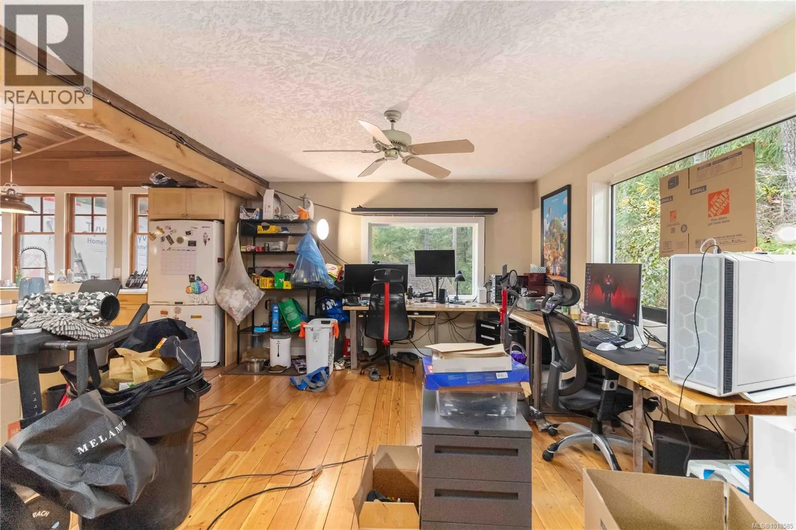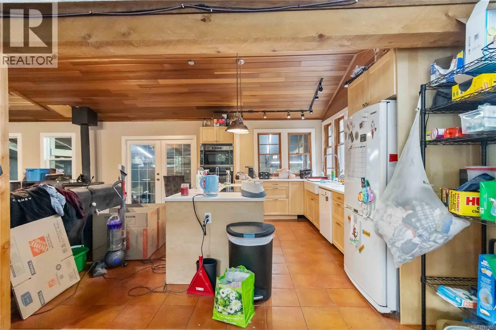 Discover this charming 1.24-acre property in the Highlandsâjust 10 minutes from Costco and Millstream Market. Originally a 1989 manufactured home, it was beautifully converted in the early 2000s into a spacious 3-bedroom plus den rancher. Enjoy an open, modern layout featuring a large kitchen with quartz counters, a bright family room, a living room with vaulted ceilings and cozy woodstove, and a separate dining area. The primary bedroom includes a 2-piece ensuite, with two additional bedrooms, a den/office (potential 4th bedroom), and laundry area. Highlights include solid wood floors, Hardie board siding, and a heat pump (requires servicing). Outside, relax on the private patio surrounded by a park-like setting with level lawns, gardens, a stream, trails, and a treehouse. Detached workshop, storage building, and ample parking with RV space. New well pressure tank. A peaceful family-friendly propertyâperfect for kids and pets. Some notice required for showings, as it is tenanted. (id:27476)