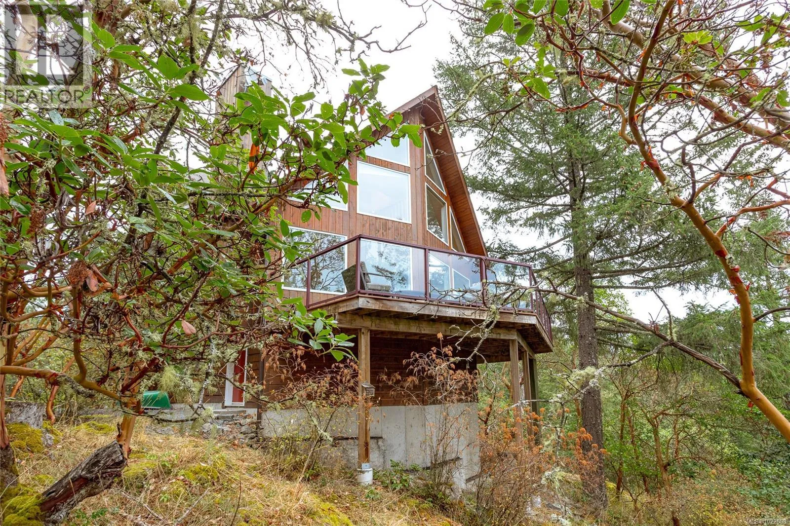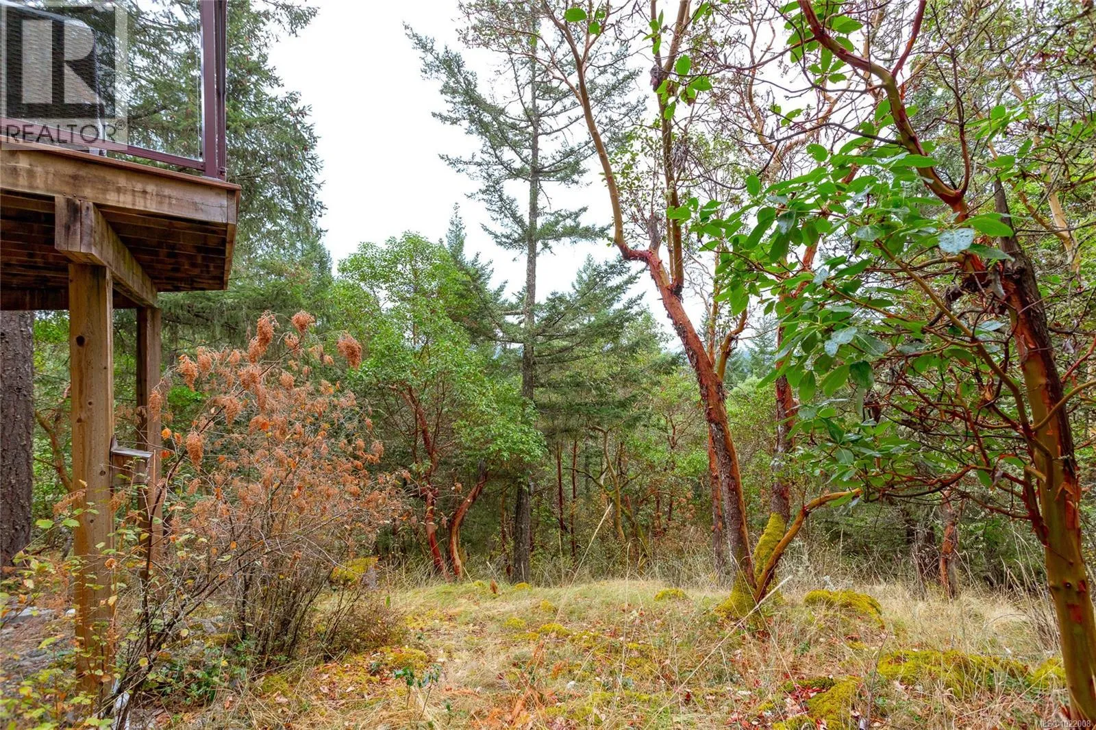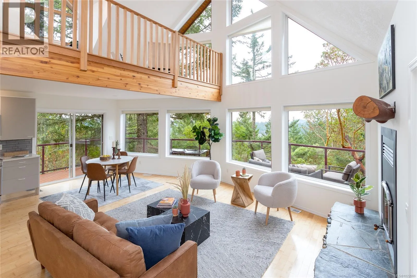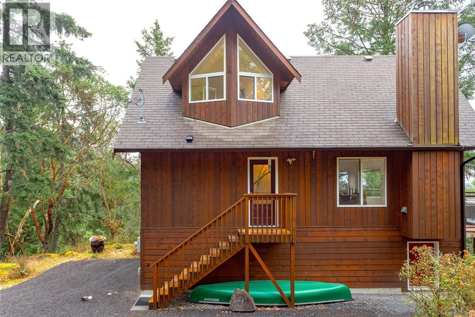 Tucked away in the Eastern Highlands, this inviting 2005 custom cedar home sits on nearly 4 ACRES of pristine woodland, offering a rare sense of privacy while still being just minutes from everyday amenities! Surrounded by mature arbutus and Douglas fir forest, the property feels peaceful and grounded, with nature truly at your doorstep. Perched on a gentle rise above the trees, the home enjoys sweeping outlooks and beautiful sunsets from the expansive SOUTH-FACING wrap-around deck, perfect for entertaining, morning coffee, or quiet evenings soaking in the views. Inside, floor-to-ceiling windows overlook the forest and fill the main living spaces with natural light, creating a seamless connection between indoors and out. Maple hardwood floors, vaulted ceilings with exposed beams, and a striking custom river-rock fireplace with an efficient wood insert add warmth, character, and a sense of timeless craftsmanship. The spacious primary bedroom offers a true retreat, complete with a 3-piece ensuite and a peaceful sitting area framed by floor-to-ceiling windows looking out to the trees. With a HEAT PUMP for year-round comfort and a newly completed driveway, this very special property blends comfort, care, and natural beauty into a private, retreat-like setting. A rare opportunity for those seeking space, serenity, and a meaningful connection to nature, without sacrificing convenience! Book your viewing today! (id:27476)
