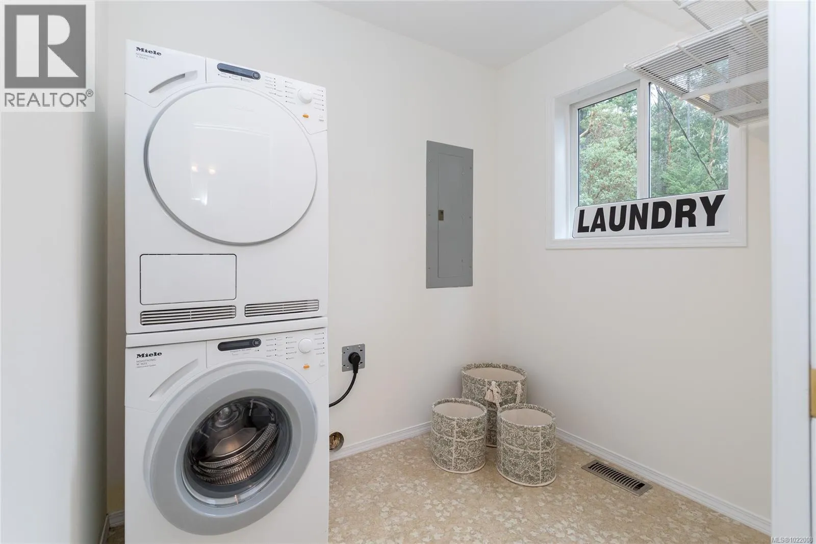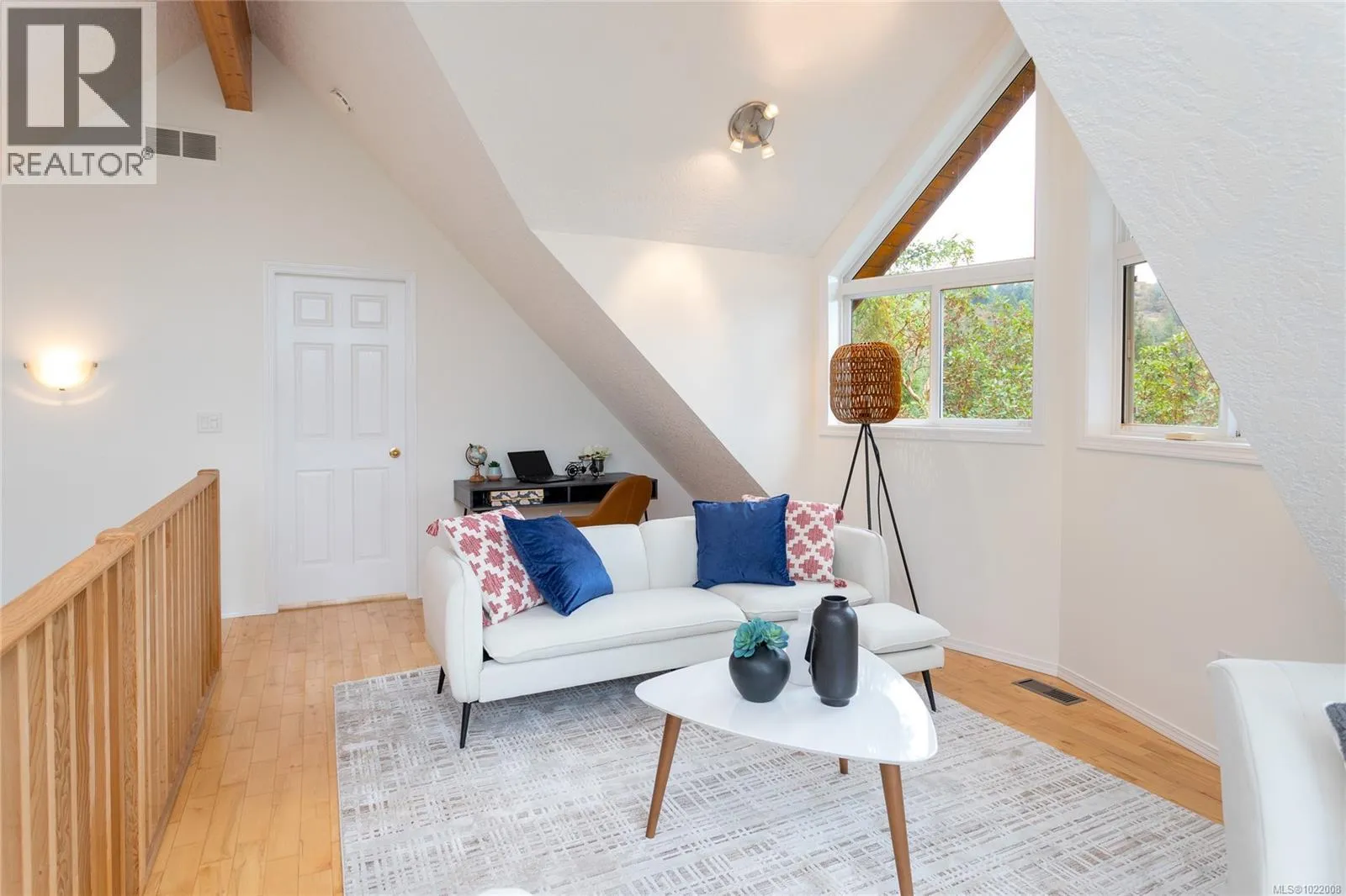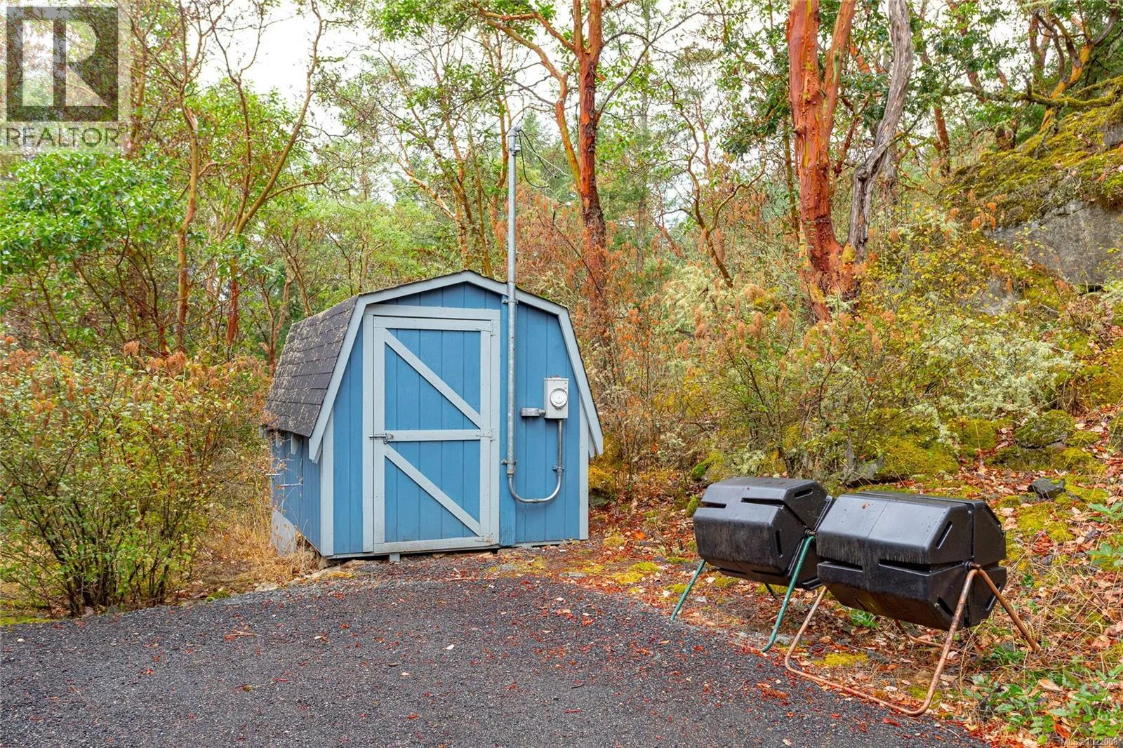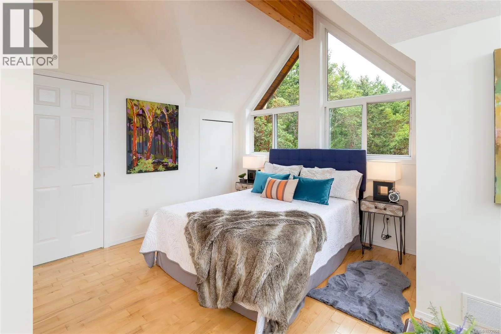 Tucked away in the Eastern Highlands, this inviting 2005 custom cedar home sits on nearly 4 ACRES of pristine woodland, offering a rare sense of privacy while still being just minutes from everyday amenities! Surrounded by mature arbutus and Douglas fir forest, the property feels peaceful and grounded, with nature truly at your doorstep. Perched on a gentle rise above the trees, the home enjoys sweeping outlooks and beautiful sunsets from the expansive SOUTH-FACING wrap-around deck, perfect for entertaining, morning coffee, or quiet evenings soaking in the views. Inside, floor-to-ceiling windows overlook the forest and fill the main living spaces with natural light, creating a seamless connection between indoors and out. Maple hardwood floors, vaulted ceilings with exposed beams, and a striking custom river-rock fireplace with an efficient wood insert add warmth, character, and a sense of timeless craftsmanship. The spacious primary bedroom offers a true retreat, complete with a 3-piece ensuite and a peaceful sitting area framed by floor-to-ceiling windows looking out to the trees. With a HEAT PUMP for year-round comfort and a newly completed driveway, this very special property blends comfort, care, and natural beauty into a private, retreat-like setting. A rare opportunity for those seeking space, serenity, and a meaningful connection to nature, without sacrificing convenience! Book your viewing today! (id:27476)