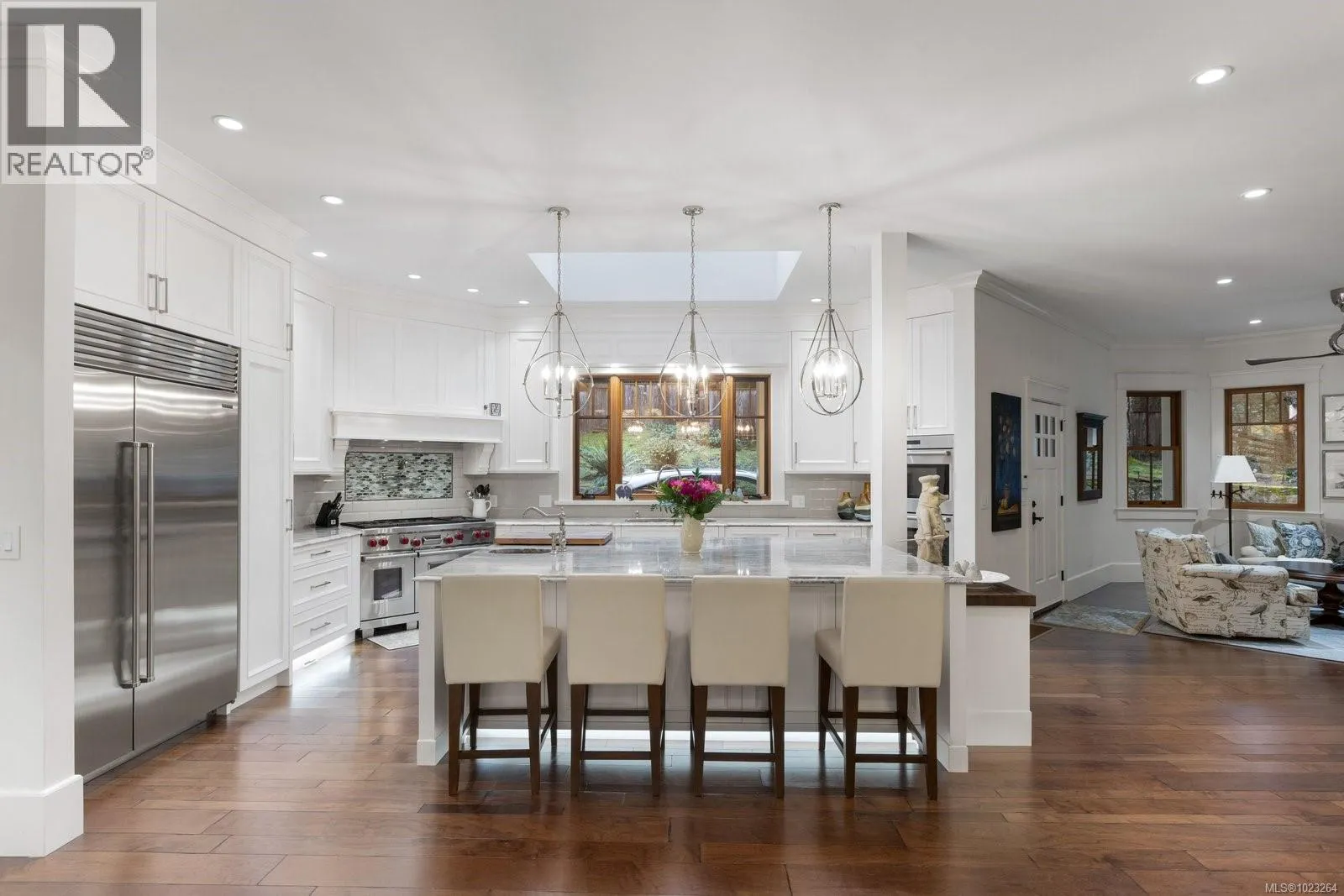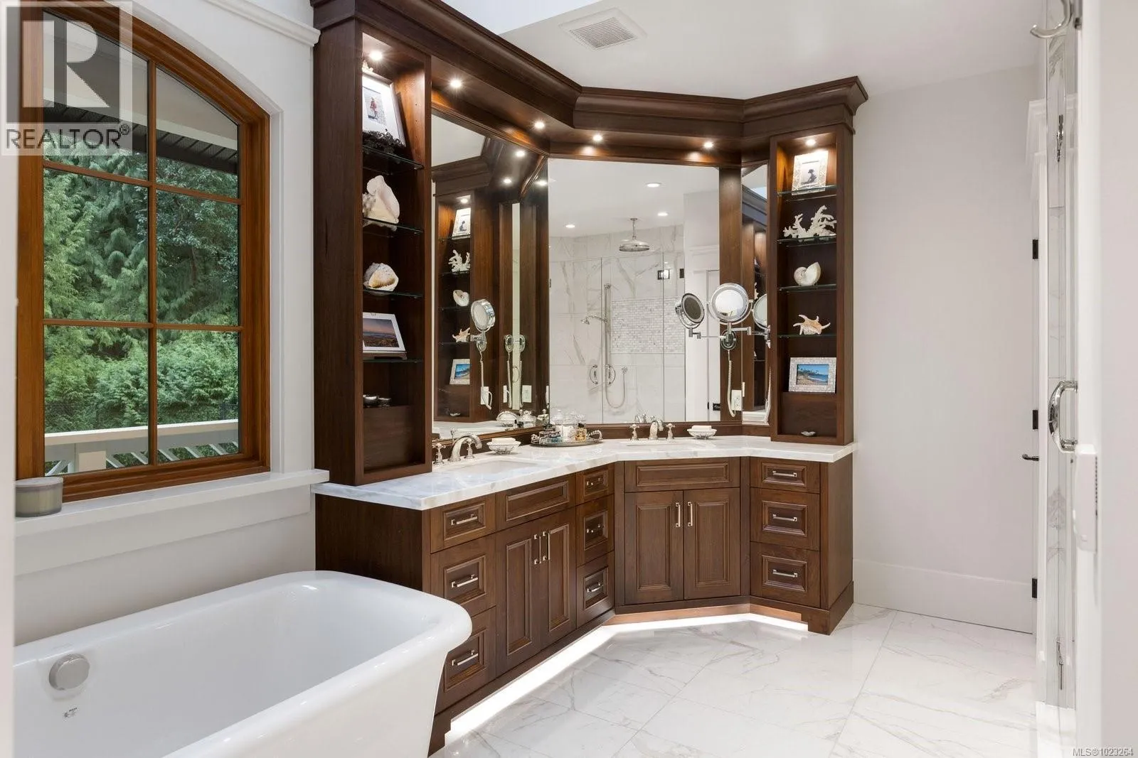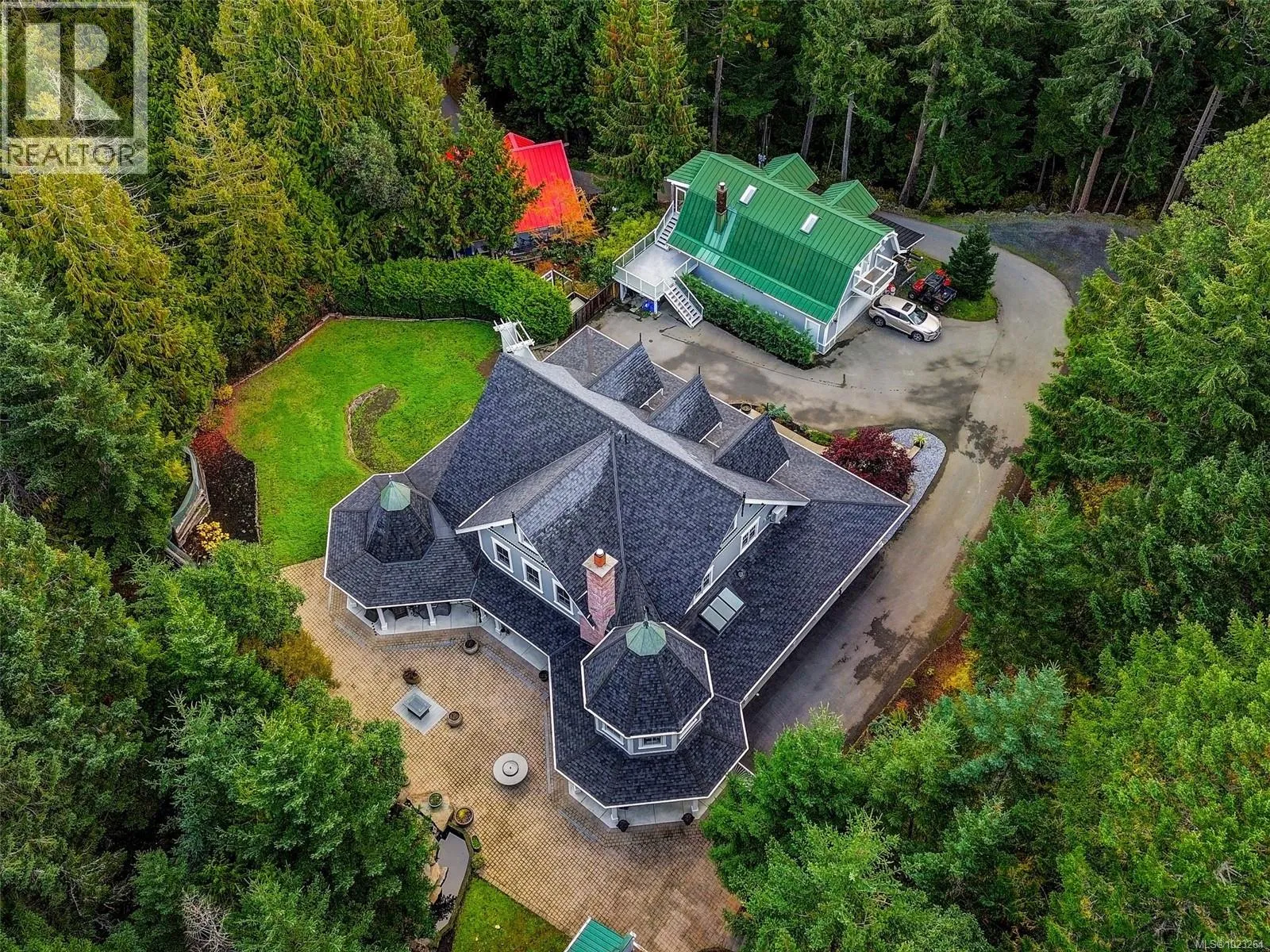 Private 3.31-acre Highlands estate offering rare privacy, flexibility, and income just 25 minutes from downtown Victoria and only 10 minutes to major shopping, restaurants, and everyday amenities. Built in 2018 to an exceptional standard, this nearly 7,600 sq ft custom home features walnut hardwood floors, heated floors, multiple fireplaces, and a chefâs kitchen with Wolf, Sub-Zero, and Miele appliances. Designed for multi-generational living or hosting, the property includes three fully self-contained suites (1bd in the main home, 1bd over the workshop, and a 2bd carriage suite) generating approximately $72,000 annuallyâideal for extended family, guests, or offsetting ownership costs. Parking for 20+ vehicles, remaining new home warranty, and zoning flexibility complete this private, turn-key estate where lifestyle, land, and long-term value align (id:27476)