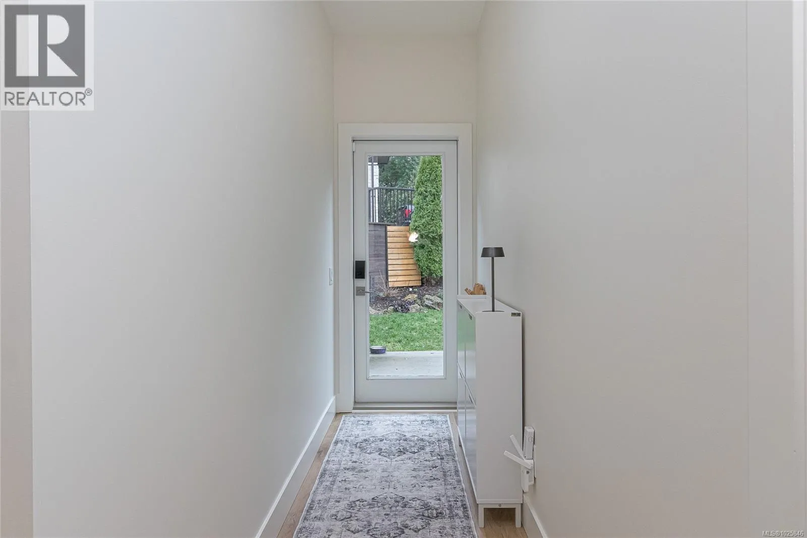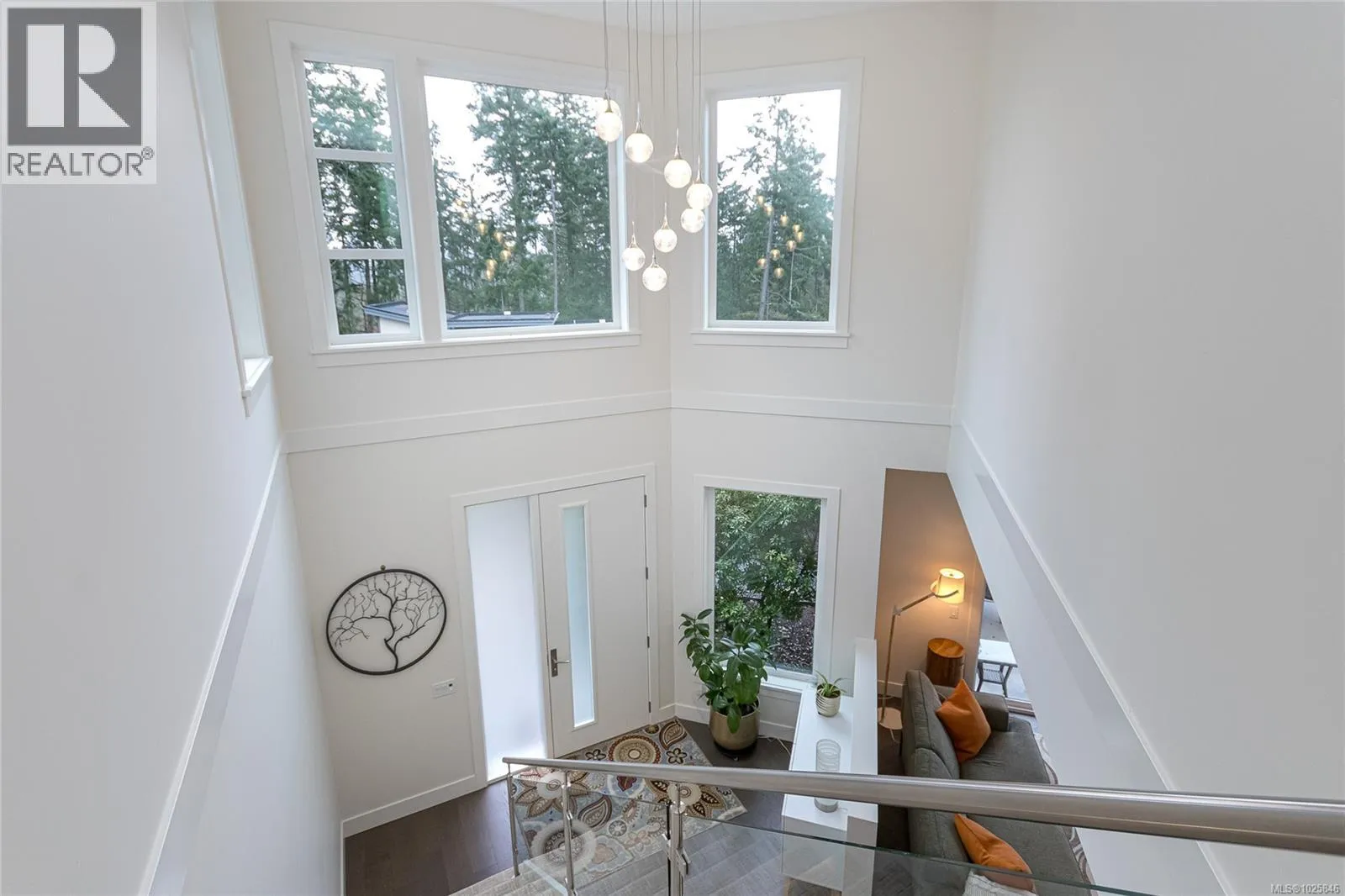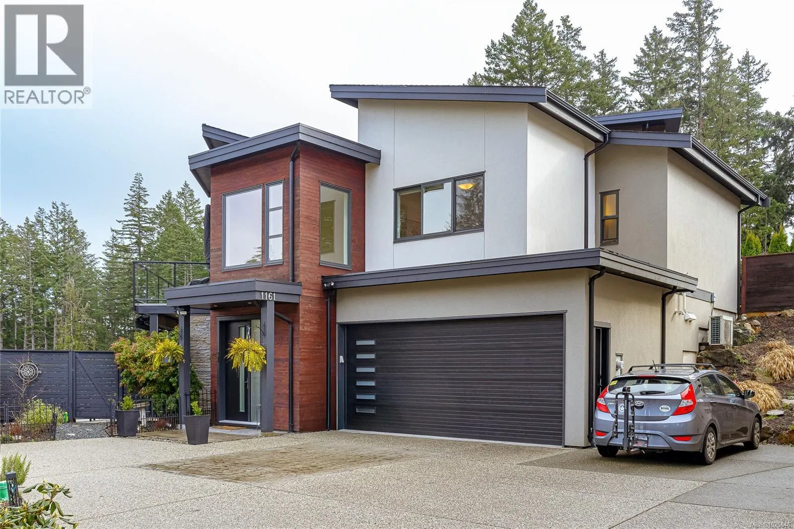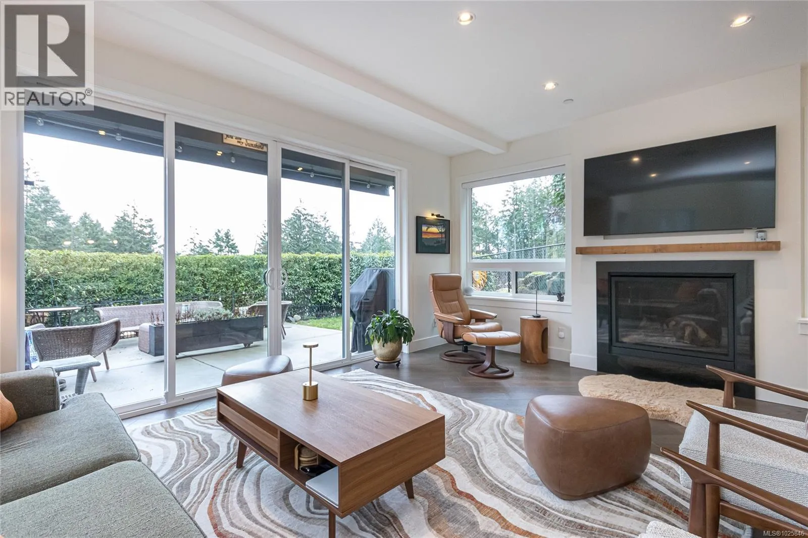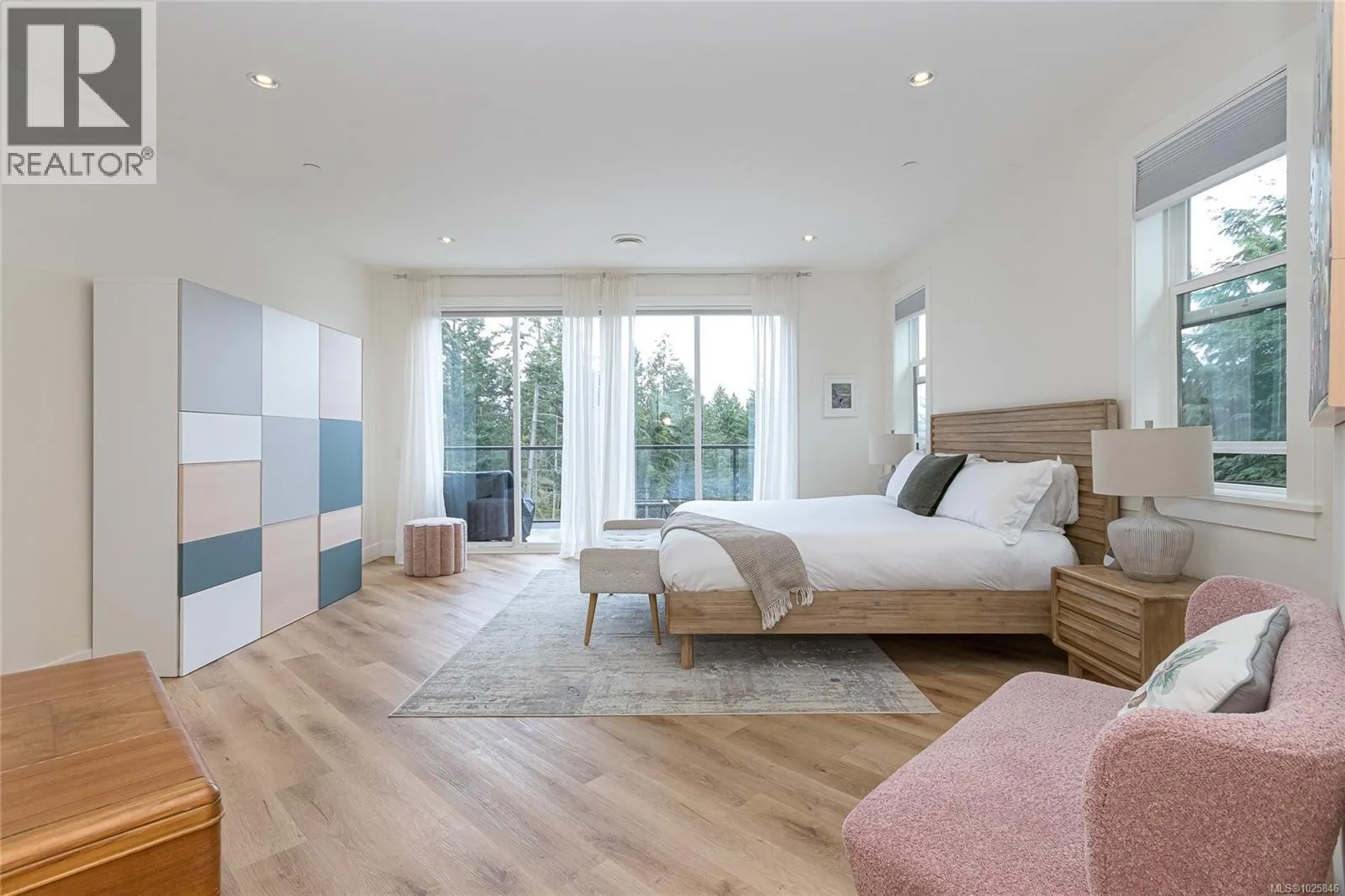 Executive Bear Mountain Resort living with this stunning 3-bedroom, 3-bathroom West Coast Contemporary home in the much sought-after Rivers Crossing community! Offering 2,097 sq ft, this residence features many upgrades and new appliances. Hardwood floors, quartz countertops, and a bright open-concept layout with oversized sliding doors that showcase beautiful forest views and create seamless indoor-outdoor living. The sleek kitchen boasts two-toned cabinetry, stainless steel appliances, and a large island with bar seating. Upstairs offers 3 bedrooms and 2 baths, including a spacious primary suite with walk-in closet, spa-inspired ensuite with standalone tub, and private balcony. Enjoy year-round comfort with a heat pump, plus a double garage with EV charger and wiring for a hot tub. Rare TWO separate, fully fenced yards on each level to enjoy the outdoors. Walk to Westin hotel, golf courses, restaurants, farmer's market, trails, and sports centre with outdoor pool. (id:27476)