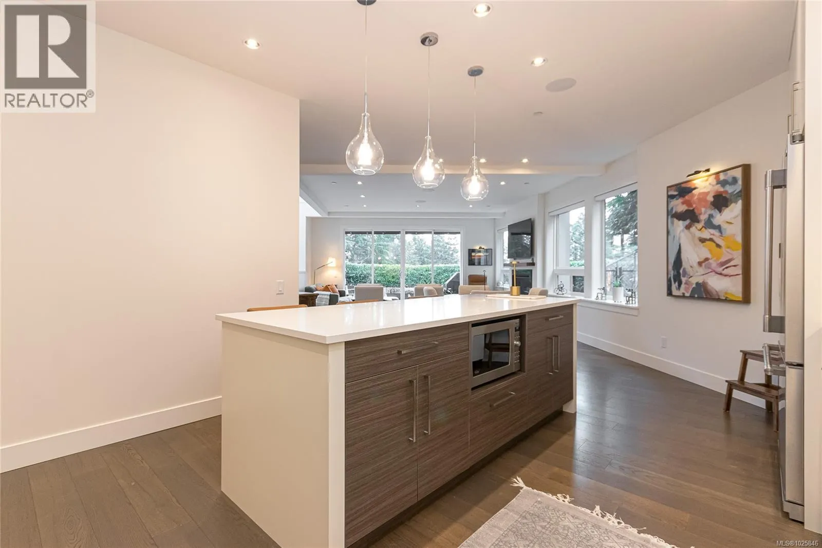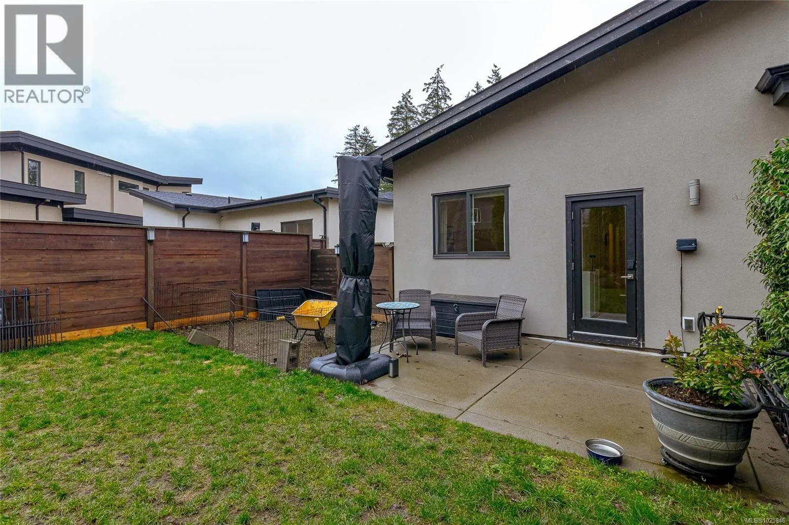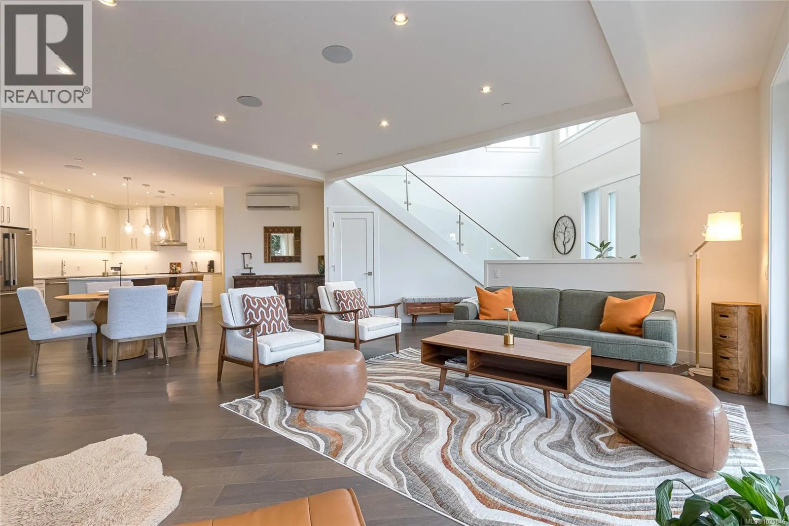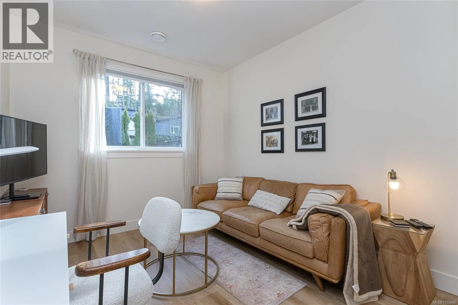 Executive Bear Mountain Resort living with this stunning 3-bedroom, 3-bathroom West Coast Contemporary home in the much sought-after Rivers Crossing community! Offering 2,097 sq ft, this residence features many upgrades and new appliances. Hardwood floors, quartz countertops, and a bright open-concept layout with oversized sliding doors that showcase beautiful forest views and create seamless indoor-outdoor living. The sleek kitchen boasts two-toned cabinetry, stainless steel appliances, and a large island with bar seating. Upstairs offers 3 bedrooms and 2 baths, including a spacious primary suite with walk-in closet, spa-inspired ensuite with standalone tub, and private balcony. Enjoy year-round comfort with a heat pump, plus a double garage with EV charger and wiring for a hot tub. Rare TWO separate, fully fenced yards on each level to enjoy the outdoors. Walk to Westin hotel, golf courses, restaurants, farmer's market, trails, and sports centre with outdoor pool. (id:27476)