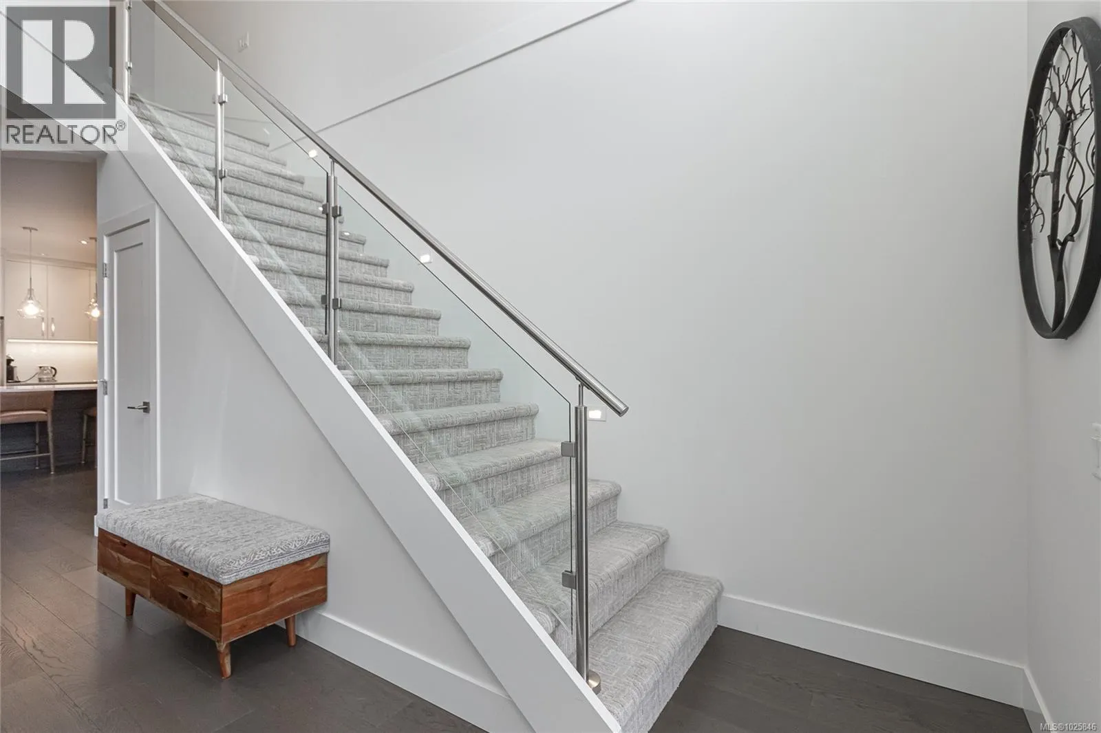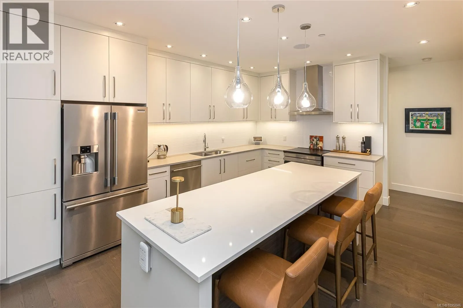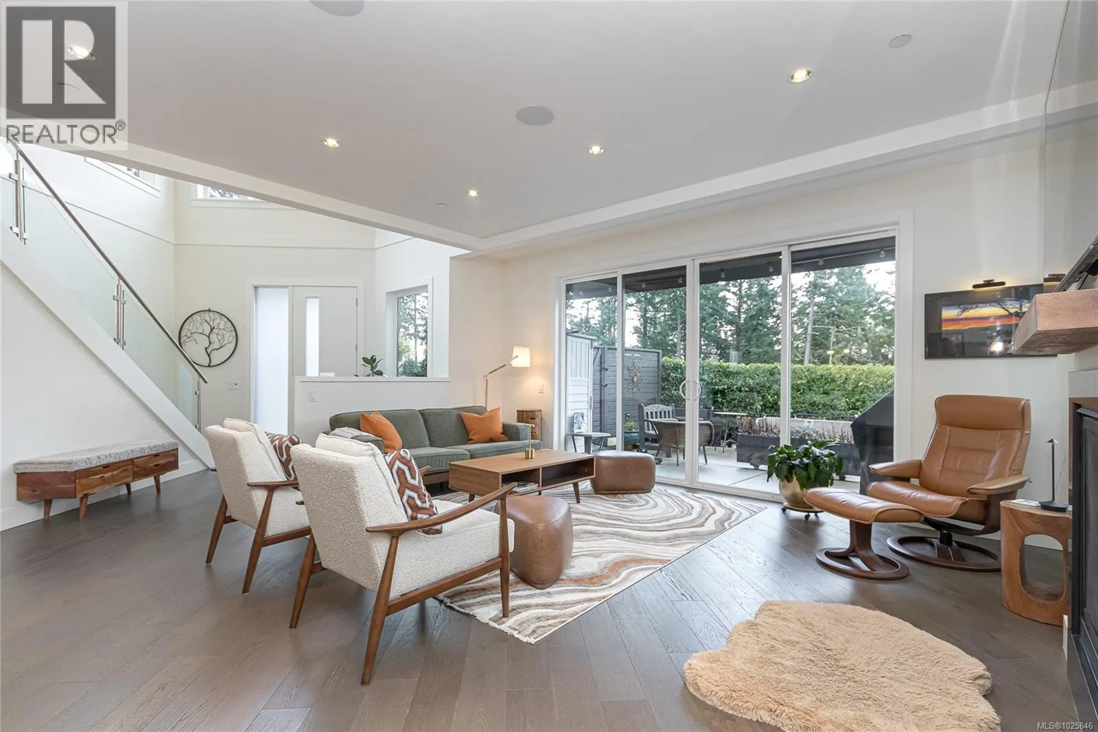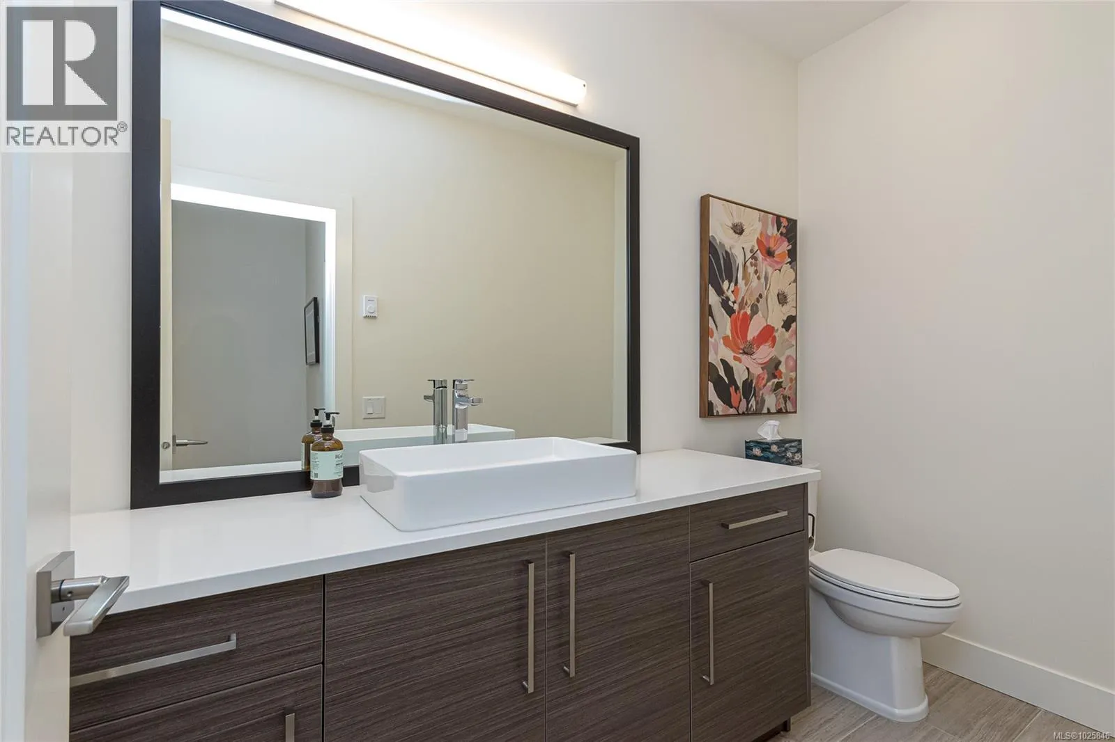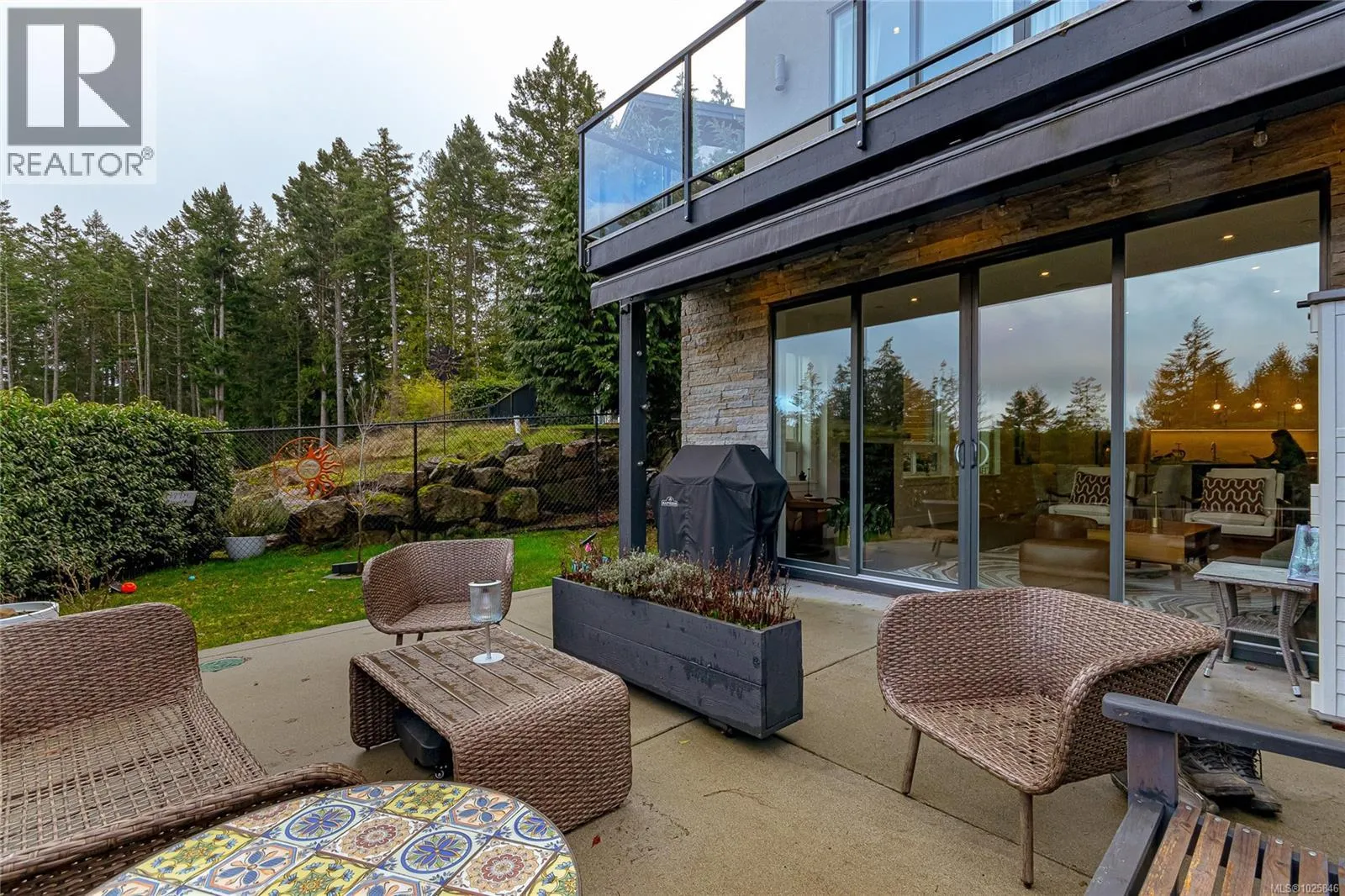 Executive Bear Mountain Resort living with this stunning 3-bedroom, 3-bathroom West Coast Contemporary home in the much sought-after Rivers Crossing community! Offering 2,097 sq ft, this residence features many upgrades and new appliances. Hardwood floors, quartz countertops, and a bright open-concept layout with oversized sliding doors that showcase beautiful forest views and create seamless indoor-outdoor living. The sleek kitchen boasts two-toned cabinetry, stainless steel appliances, and a large island with bar seating. Upstairs offers 3 bedrooms and 2 baths, including a spacious primary suite with walk-in closet, spa-inspired ensuite with standalone tub, and private balcony. Enjoy year-round comfort with a heat pump, plus a double garage with EV charger and wiring for a hot tub. Rare TWO separate, fully fenced yards on each level to enjoy the outdoors. Walk to Westin hotel, golf courses, restaurants, farmer's market, trails, and sports centre with outdoor pool. (id:27476)