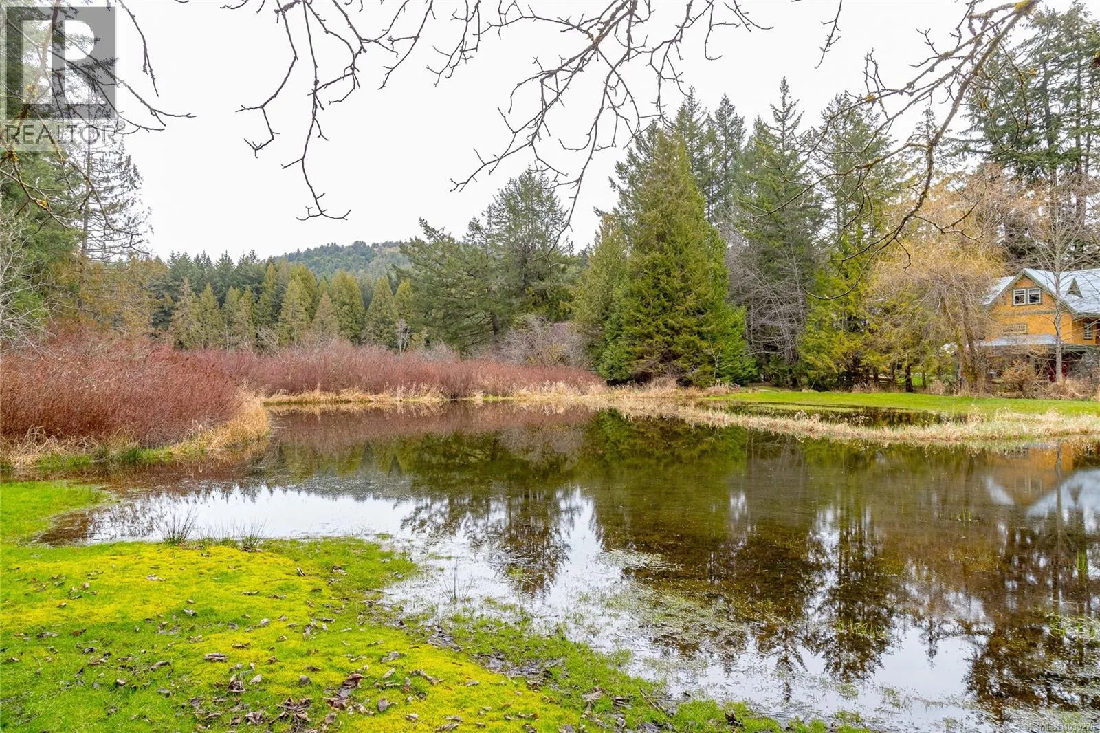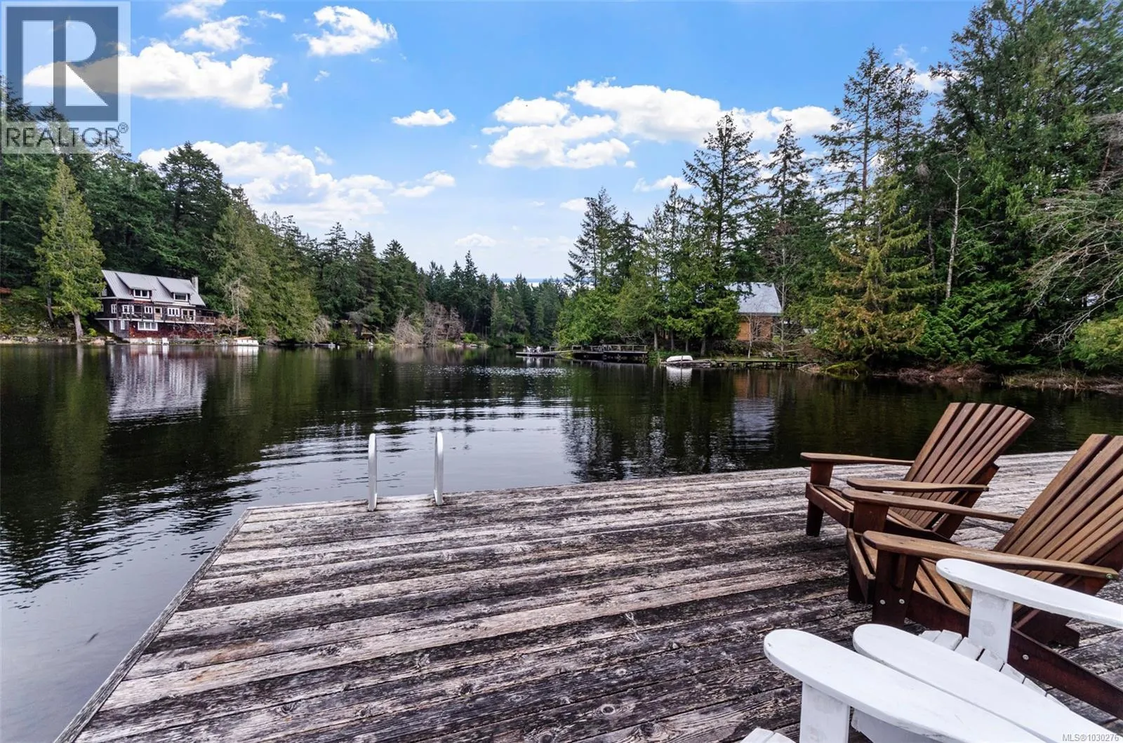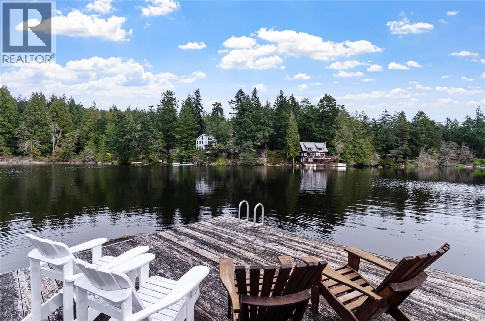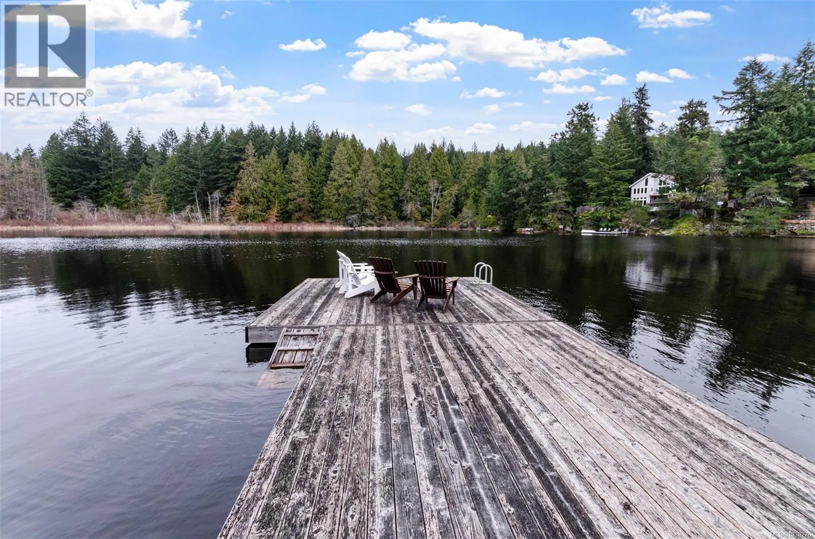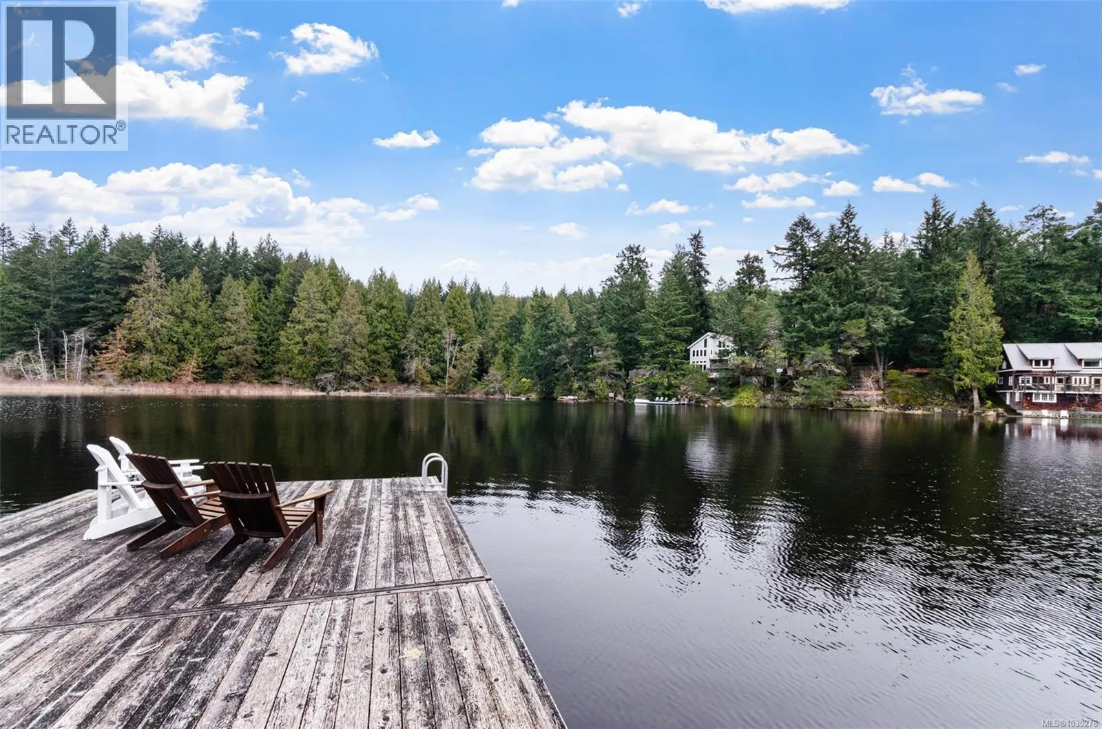Lakefront property! Attention swimmers! On a peaceful 1.87-acre lot on Fork Lake, this high quality home offers a unique nature-surrounded lifestyle. Down a quiet drive beside Mount Work Park, itâs one of Victoriaâs best-kept secretsâjust 30 mins to downtown, 15 to Millstream shops. Shared by 17 homes, the spring-fed, 10-acre lake has no public access or motorboatsâjust birdsong & rippling water. Swim, paddle, relax on your dock, or hike scenic trails. The updated 3-bed, 3-bath home blends log-cabin charm w/ modern touches: 3 gas fireplaces, heat pump, granite counters, custom cabinets, Pella wood windows/sliders, skylights, metal roof, hot tub & 1,425 sq. ft. of deck. Lower level is nearly finished w/ gas & electric roughed-in for a suite kitchen. Outside: landscaped yard, mature trees, garden & seasonal pondâgreat for winter skating. Ideal as full-time home or getaway, this lakeside retreat offers comfort, privacy & year-round outdoor living. (id:27476)