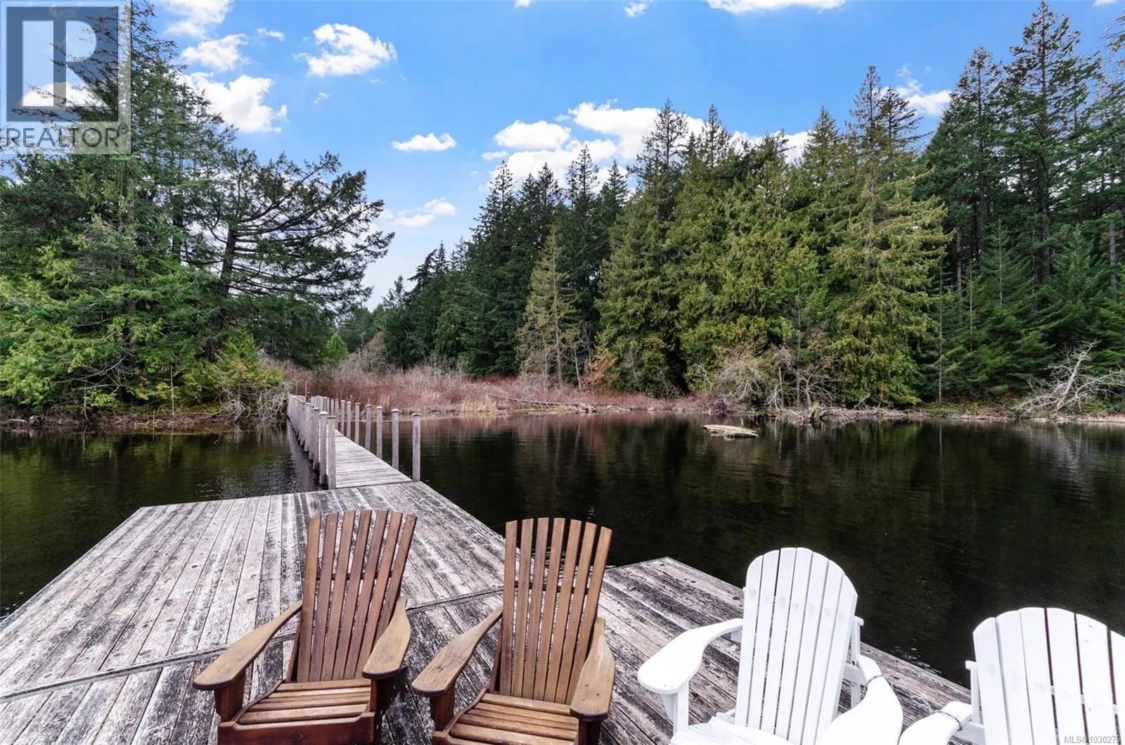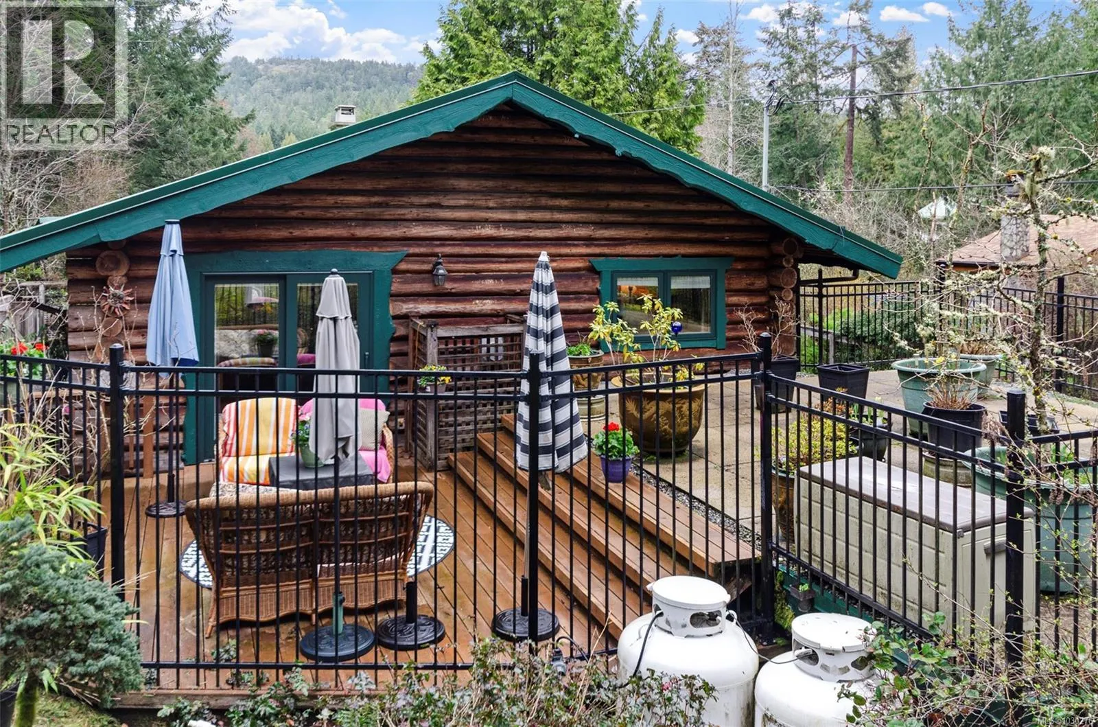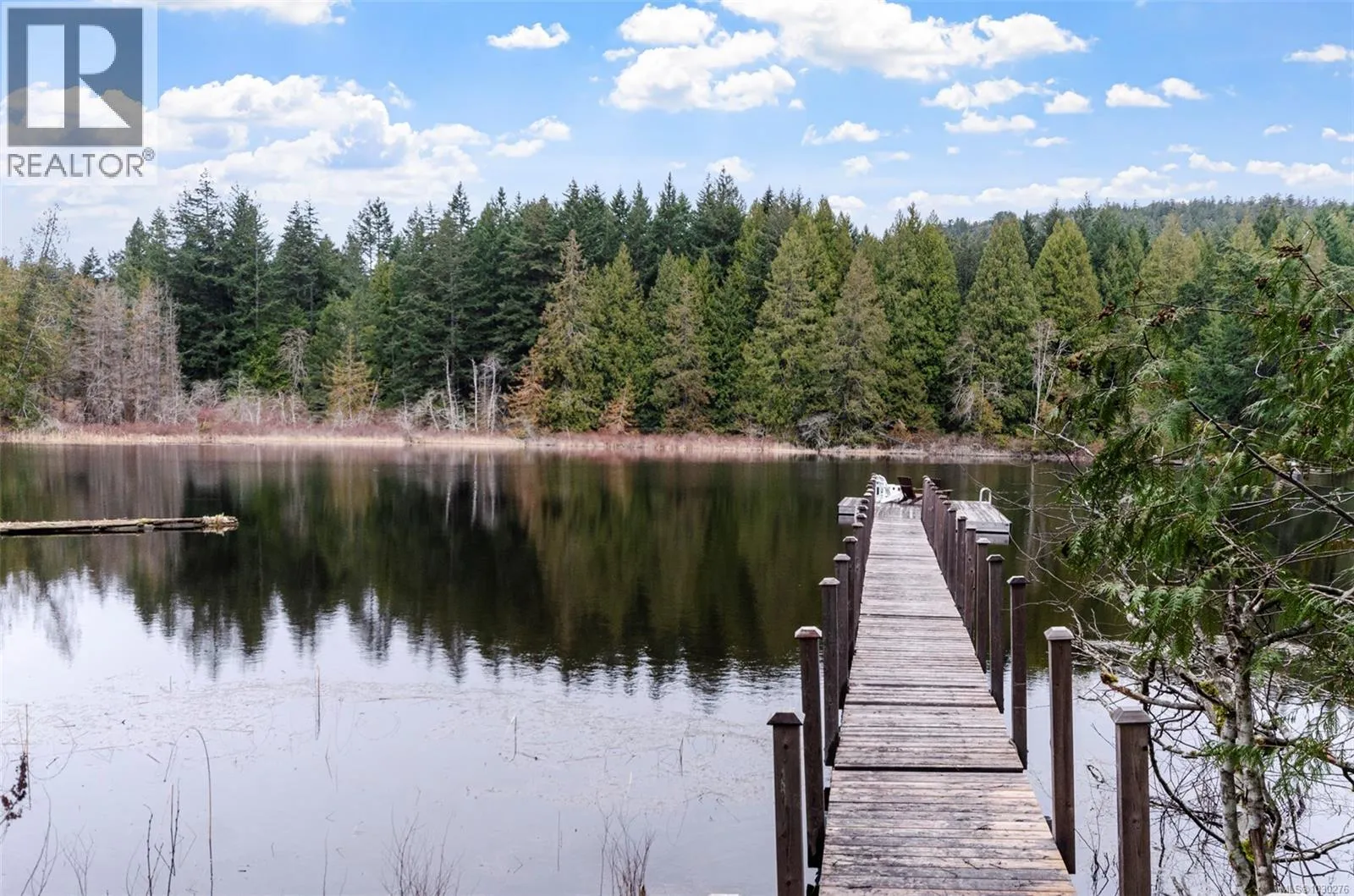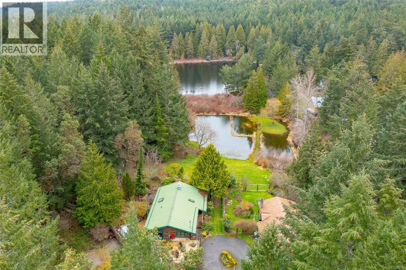 Lakefront property! Attention swimmers! On a peaceful 1.87-acre lot on Fork Lake, this high quality home offers a unique nature-surrounded lifestyle. Down a quiet drive beside Mount Work Park, itâs one of Victoriaâs best-kept secretsâjust 30 mins to downtown, 15 to Millstream shops. Shared by 17 homes, the spring-fed, 10-acre lake has no public access or motorboatsâjust birdsong & rippling water. Swim, paddle, relax on your dock, or hike scenic trails. The updated 3-bed, 3-bath home blends log-cabin charm w/ modern touches: 3 gas fireplaces, heat pump, granite counters, custom cabinets, Pella wood windows/sliders, skylights, metal roof, hot tub & 1,425 sq. ft. of deck. Lower level is nearly finished w/ gas & electric roughed-in for a suite kitchen. Outside: landscaped yard, mature trees, garden & seasonal pondâgreat for winter skating. Ideal as full-time home or getaway, this lakeside retreat offers comfort, privacy & year-round outdoor living. (id:27476)