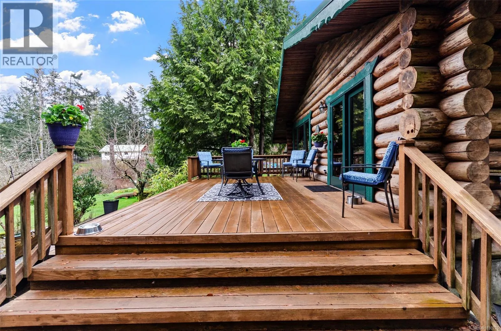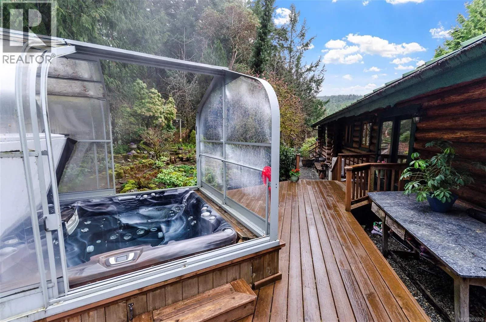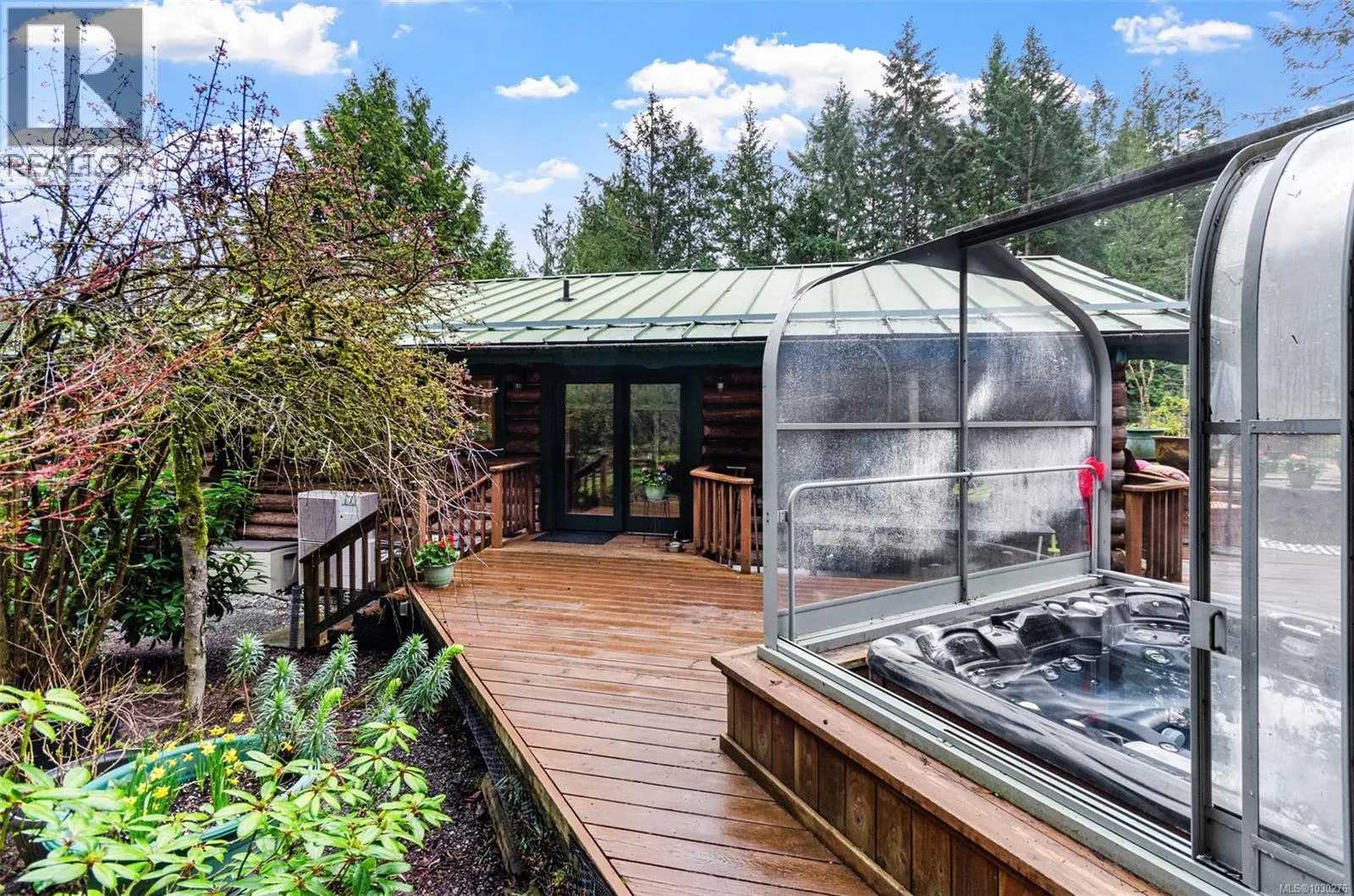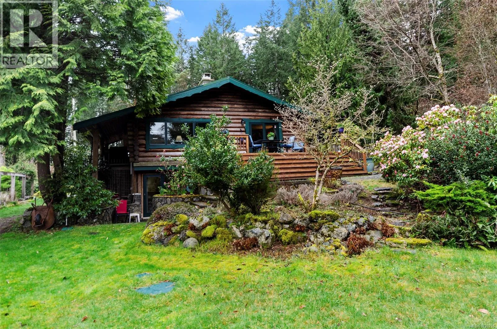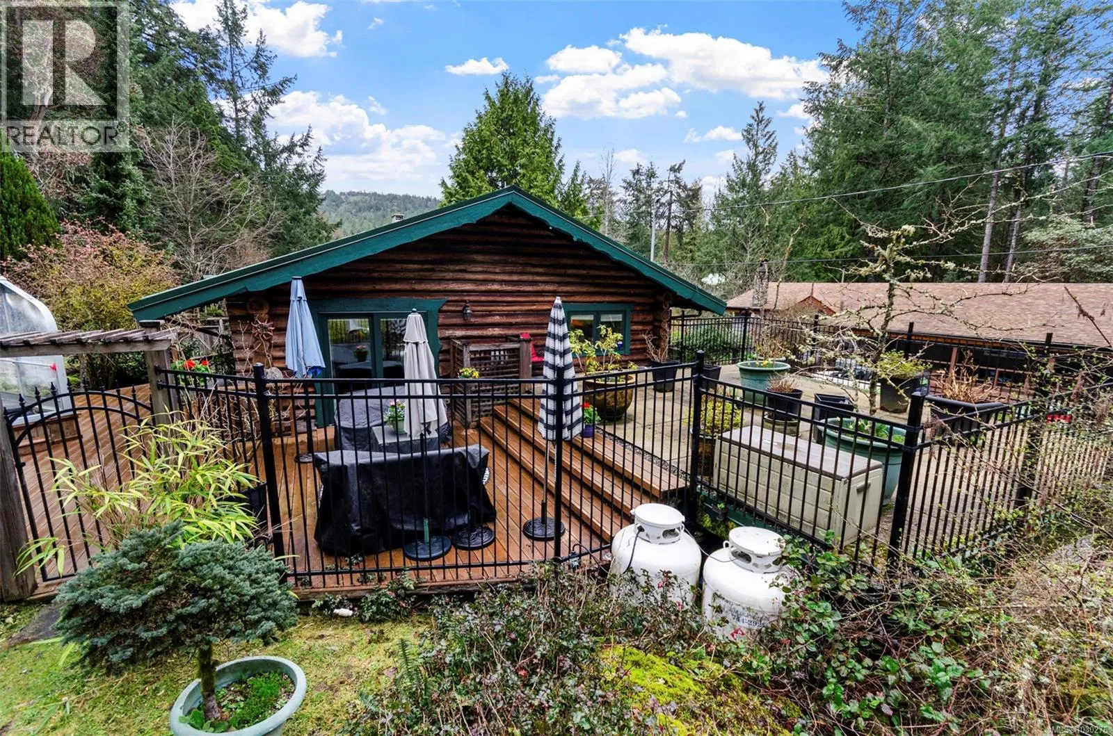 Lakefront property! Attention swimmers! On a peaceful 1.87-acre lot on Fork Lake, this high quality home offers a unique nature-surrounded lifestyle. Down a quiet drive beside Mount Work Park, itâs one of Victoriaâs best-kept secretsâjust 30 mins to downtown, 15 to Millstream shops. Shared by 17 homes, the spring-fed, 10-acre lake has no public access or motorboatsâjust birdsong & rippling water. Swim, paddle, relax on your dock, or hike scenic trails. The updated 3-bed, 3-bath home blends log-cabin charm w/ modern touches: 3 gas fireplaces, heat pump, granite counters, custom cabinets, Pella wood windows/sliders, skylights, metal roof, hot tub & 1,425 sq. ft. of deck. Lower level is nearly finished w/ gas & electric roughed-in for a suite kitchen. Outside: landscaped yard, mature trees, garden & seasonal pondâgreat for winter skating. Ideal as full-time home or getaway, this lakeside retreat offers comfort, privacy & year-round outdoor living. (id:27476)