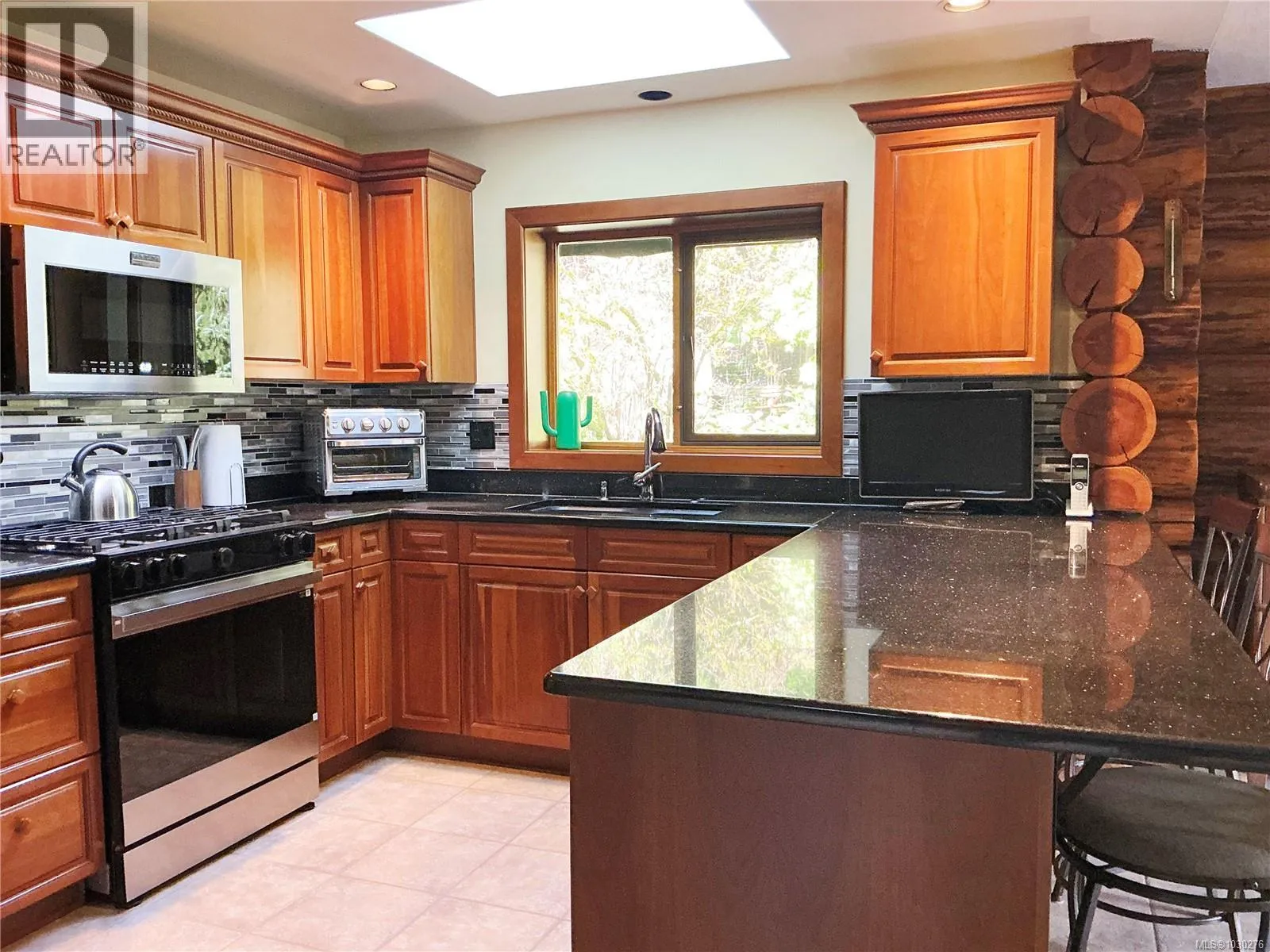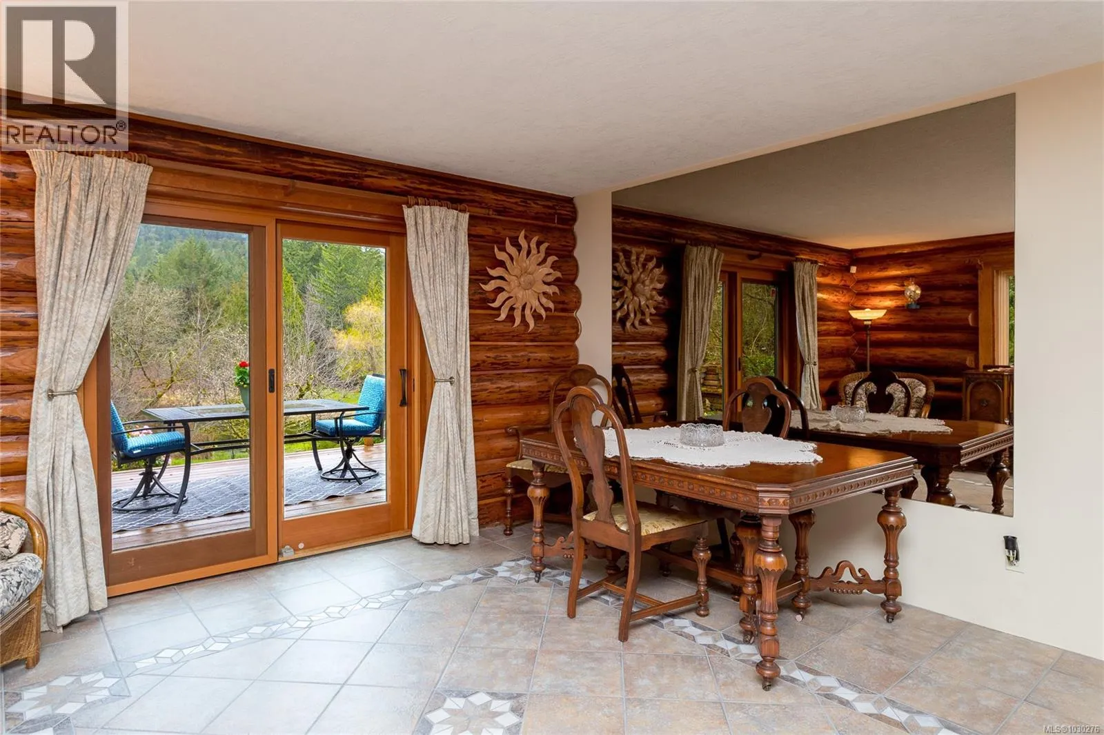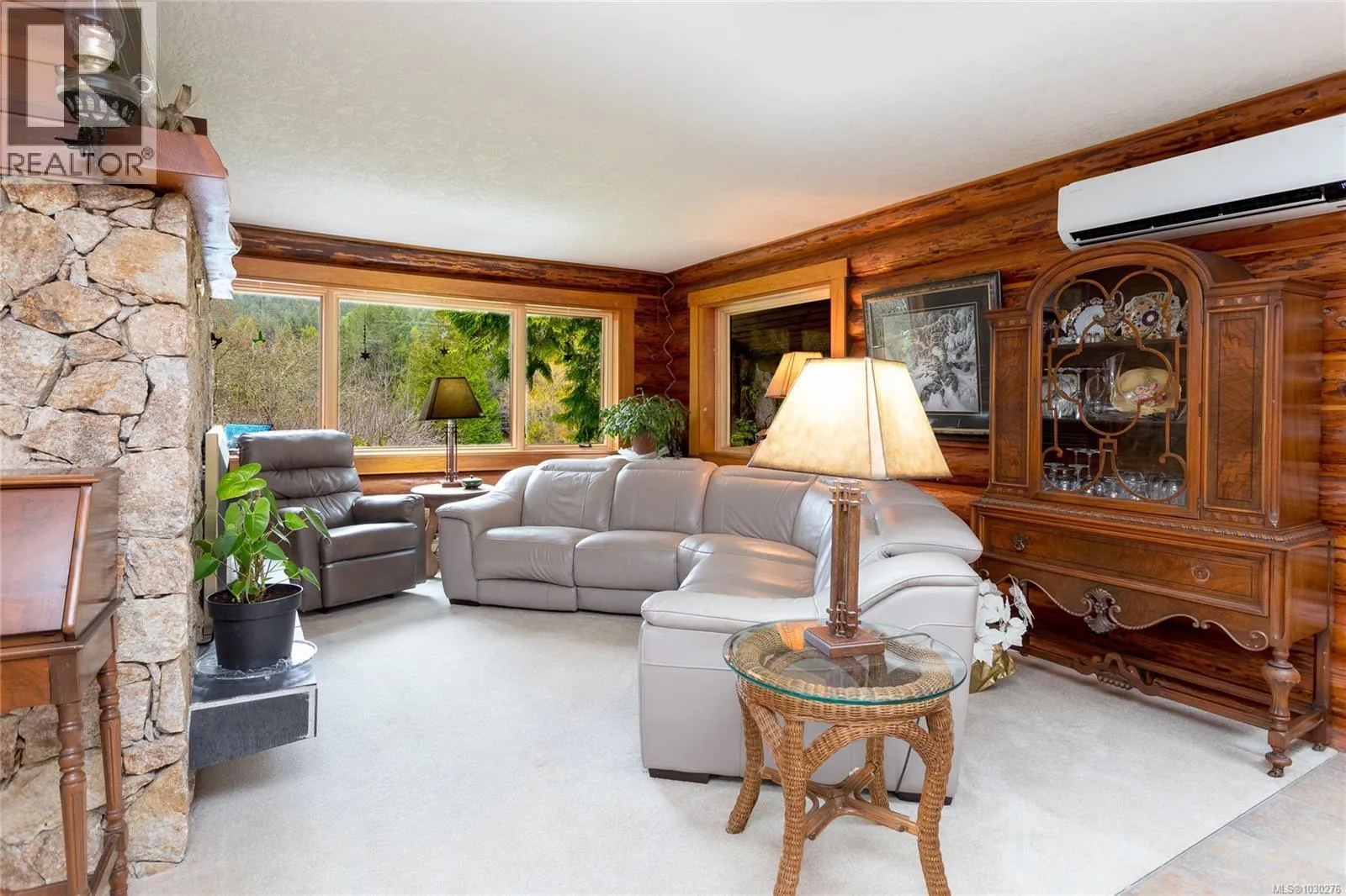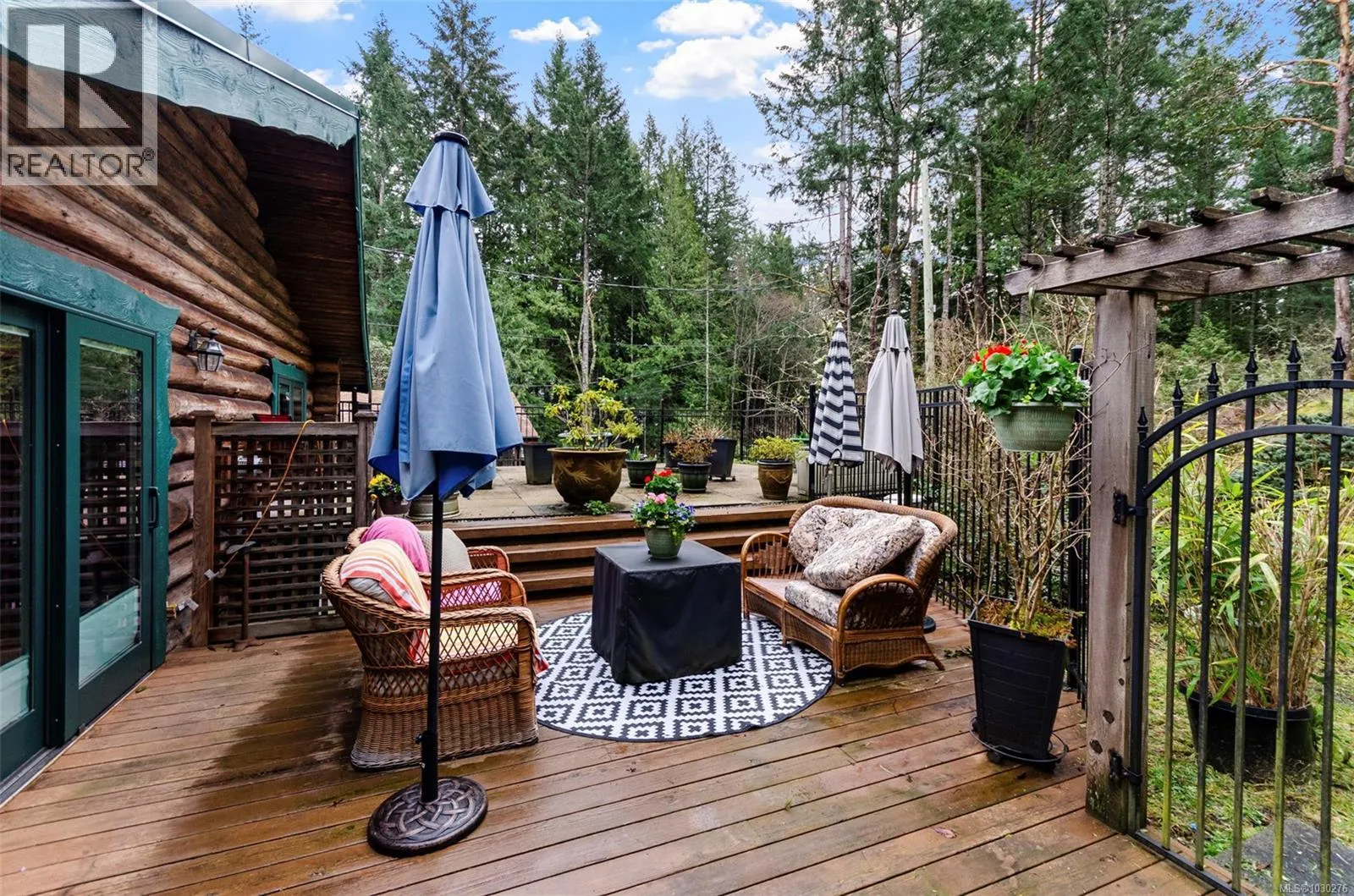 Lakefront property! Attention swimmers! On a peaceful 1.87-acre lot on Fork Lake, this high quality home offers a unique nature-surrounded lifestyle. Down a quiet drive beside Mount Work Park, itâs one of Victoriaâs best-kept secretsâjust 30 mins to downtown, 15 to Millstream shops. Shared by 17 homes, the spring-fed, 10-acre lake has no public access or motorboatsâjust birdsong & rippling water. Swim, paddle, relax on your dock, or hike scenic trails. The updated 3-bed, 3-bath home blends log-cabin charm w/ modern touches: 3 gas fireplaces, heat pump, granite counters, custom cabinets, Pella wood windows/sliders, skylights, metal roof, hot tub & 1,425 sq. ft. of deck. Lower level is nearly finished w/ gas & electric roughed-in for a suite kitchen. Outside: landscaped yard, mature trees, garden & seasonal pondâgreat for winter skating. Ideal as full-time home or getaway, this lakeside retreat offers comfort, privacy & year-round outdoor living. (id:27476)