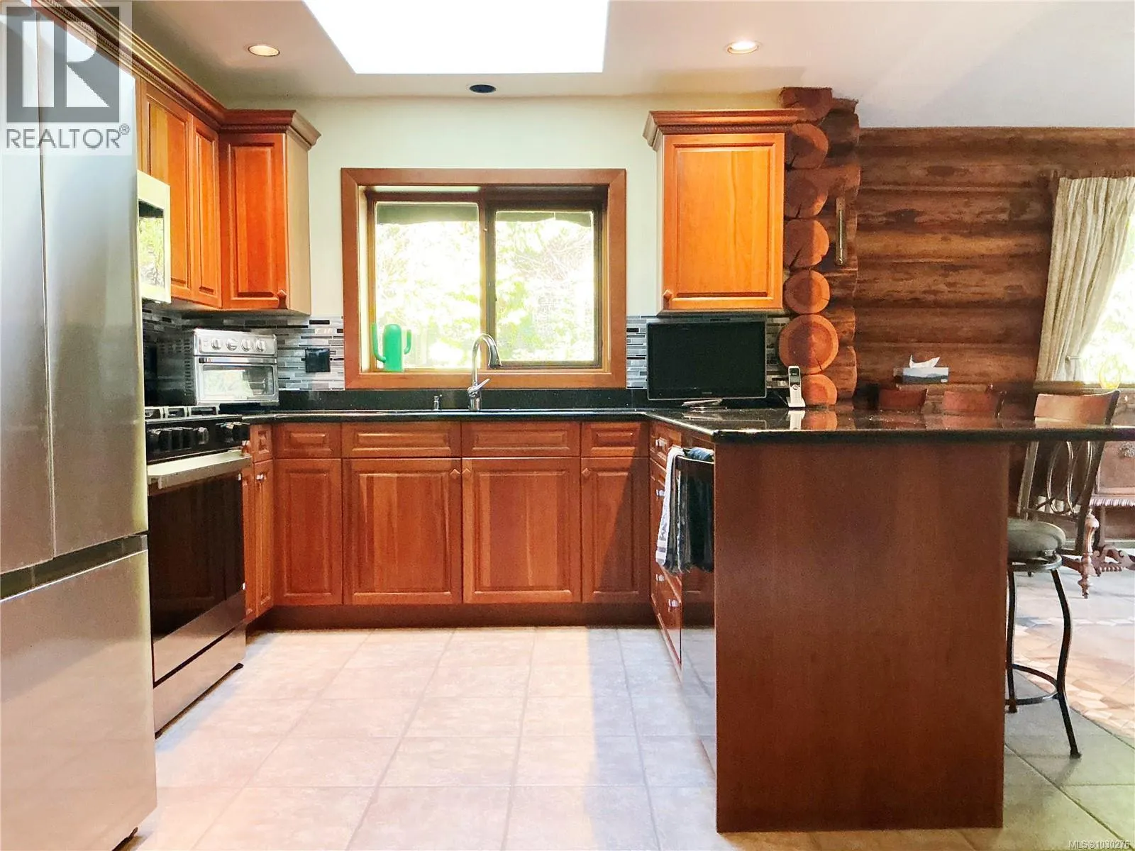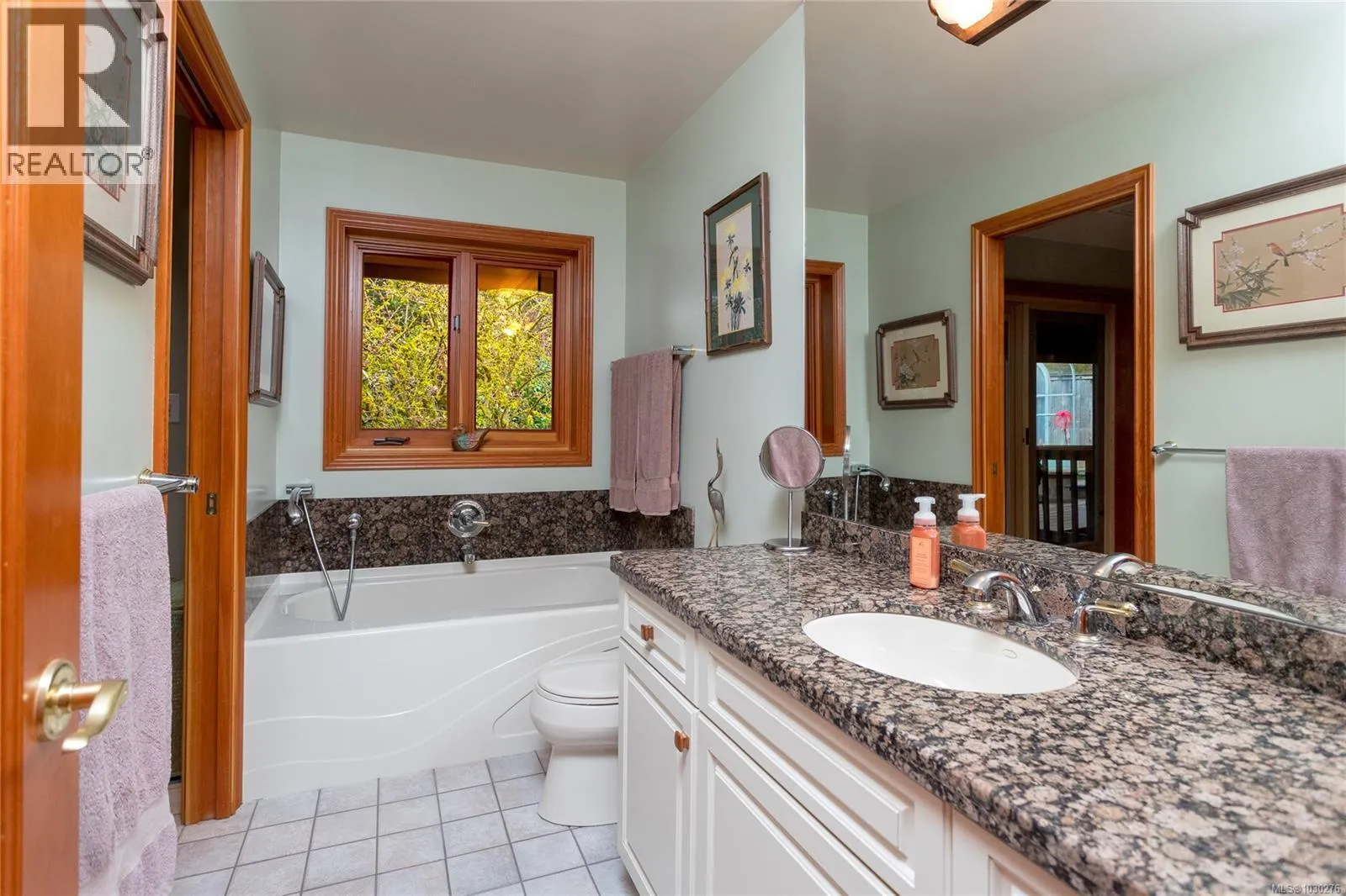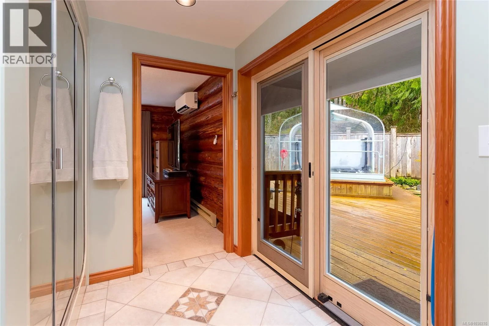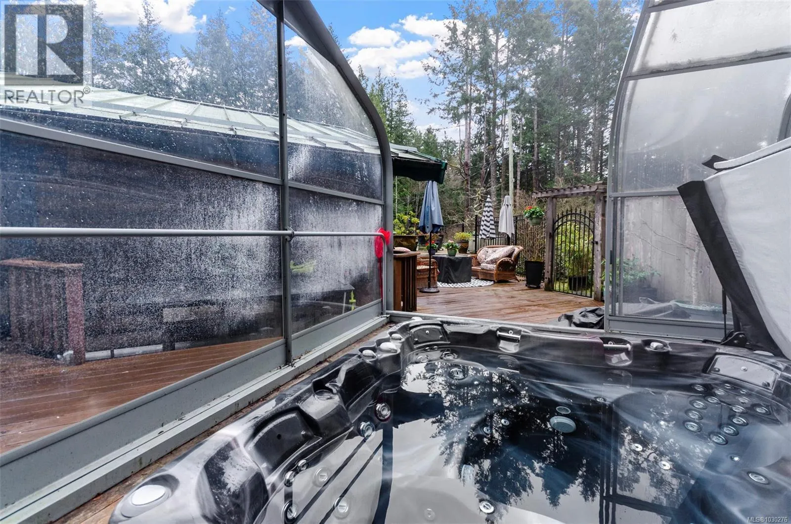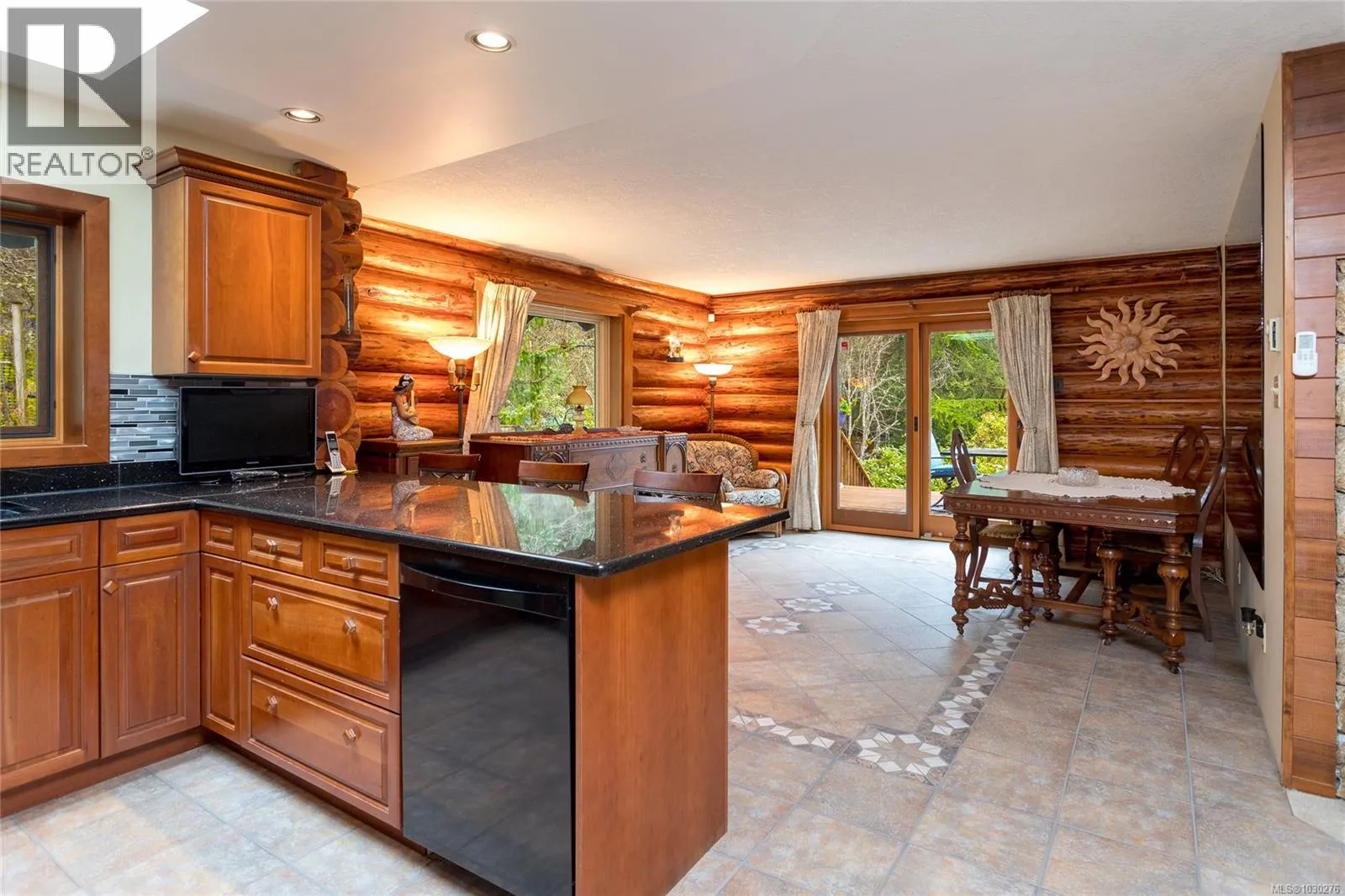 Lakefront property! Attention swimmers! On a peaceful 1.87-acre lot on Fork Lake, this high quality home offers a unique nature-surrounded lifestyle. Down a quiet drive beside Mount Work Park, itâs one of Victoriaâs best-kept secretsâjust 30 mins to downtown, 15 to Millstream shops. Shared by 17 homes, the spring-fed, 10-acre lake has no public access or motorboatsâjust birdsong & rippling water. Swim, paddle, relax on your dock, or hike scenic trails. The updated 3-bed, 3-bath home blends log-cabin charm w/ modern touches: 3 gas fireplaces, heat pump, granite counters, custom cabinets, Pella wood windows/sliders, skylights, metal roof, hot tub & 1,425 sq. ft. of deck. Lower level is nearly finished w/ gas & electric roughed-in for a suite kitchen. Outside: landscaped yard, mature trees, garden & seasonal pondâgreat for winter skating. Ideal as full-time home or getaway, this lakeside retreat offers comfort, privacy & year-round outdoor living. (id:27476)