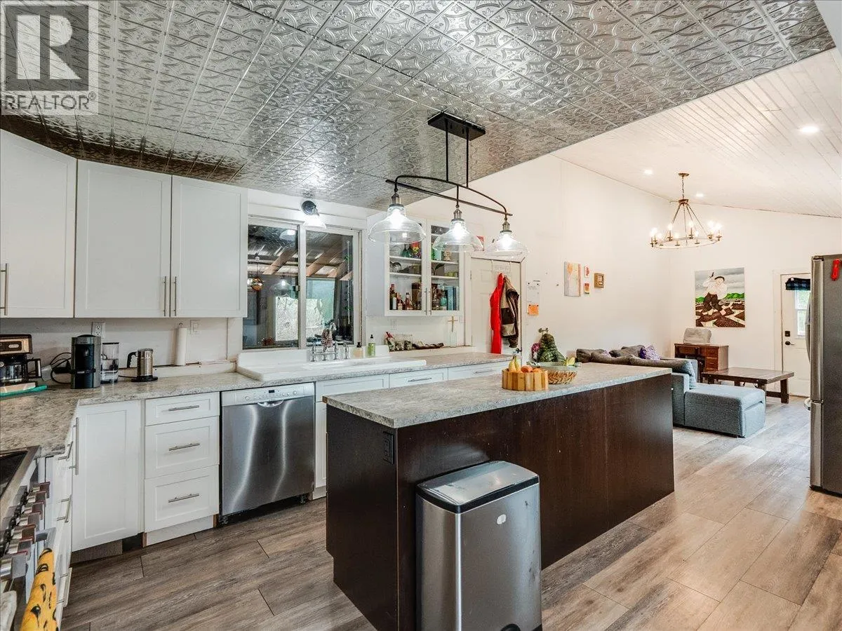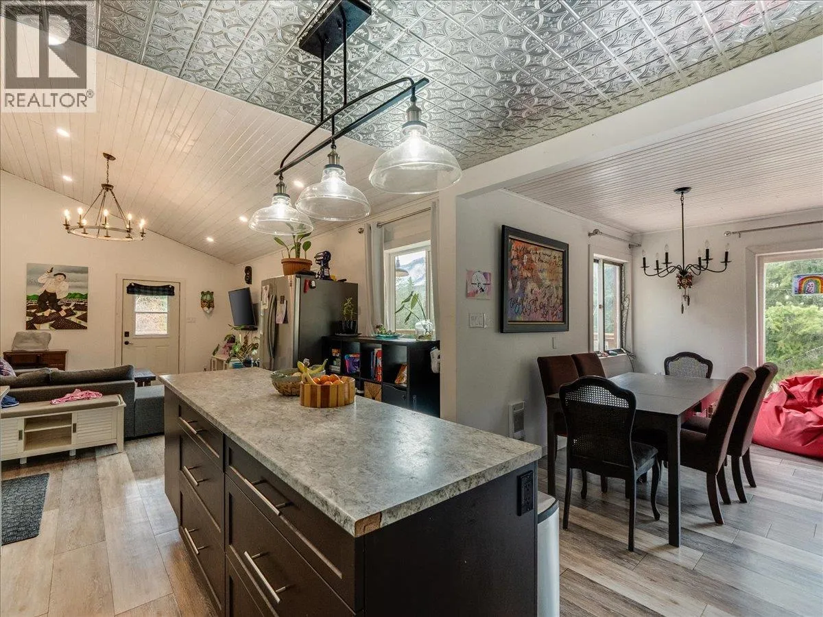 Set in the quiet community of Hills, between Nakusp and New Denver, this 7-acre property offers space, sun, and multiple options for how you want to use it. The land unfolds in tiers, with Arthur Creek running through the lower portion and a network of existing access roads and driveways leading to several potential building sites. From the upper benches, the property opens up to views down Slocan Lake and toward the Valhalla Mountains, giving a sense of elevation and space thatâs hard to find. The existing 2-bedroom, 1-bath home (approx. 1,200 sq ft) is a comfortable starting point â well suited for full-time living, seasonal use, or as a base while you develop further. A bright open living area connects to the sundeck, creating an easy indoor-outdoor flow, while the layout remains practical with good storage, laundry, and a full bath. Two established camp/RV sites, each serviced with power (30 amp and 50 amp) and connected to a separate septic system, add flexibility for extended family, guests, or recreational use. The property is serviced by a licensed gravity-fed water system from Arthur Creek, supporting both domestic use and irrigation. With easy access off the highway and close proximity to Slocan Lake, Summit Lake, and year-round recreation, this is a property that can be used as-is, shared with family, or gradually shaped into something more over time. (id:27476)