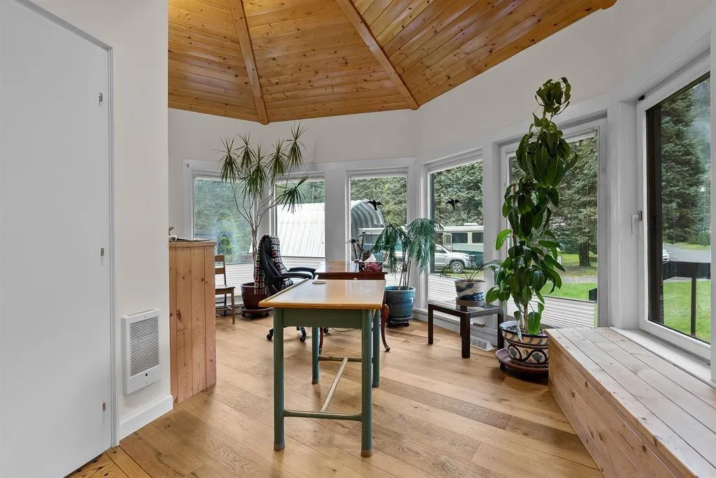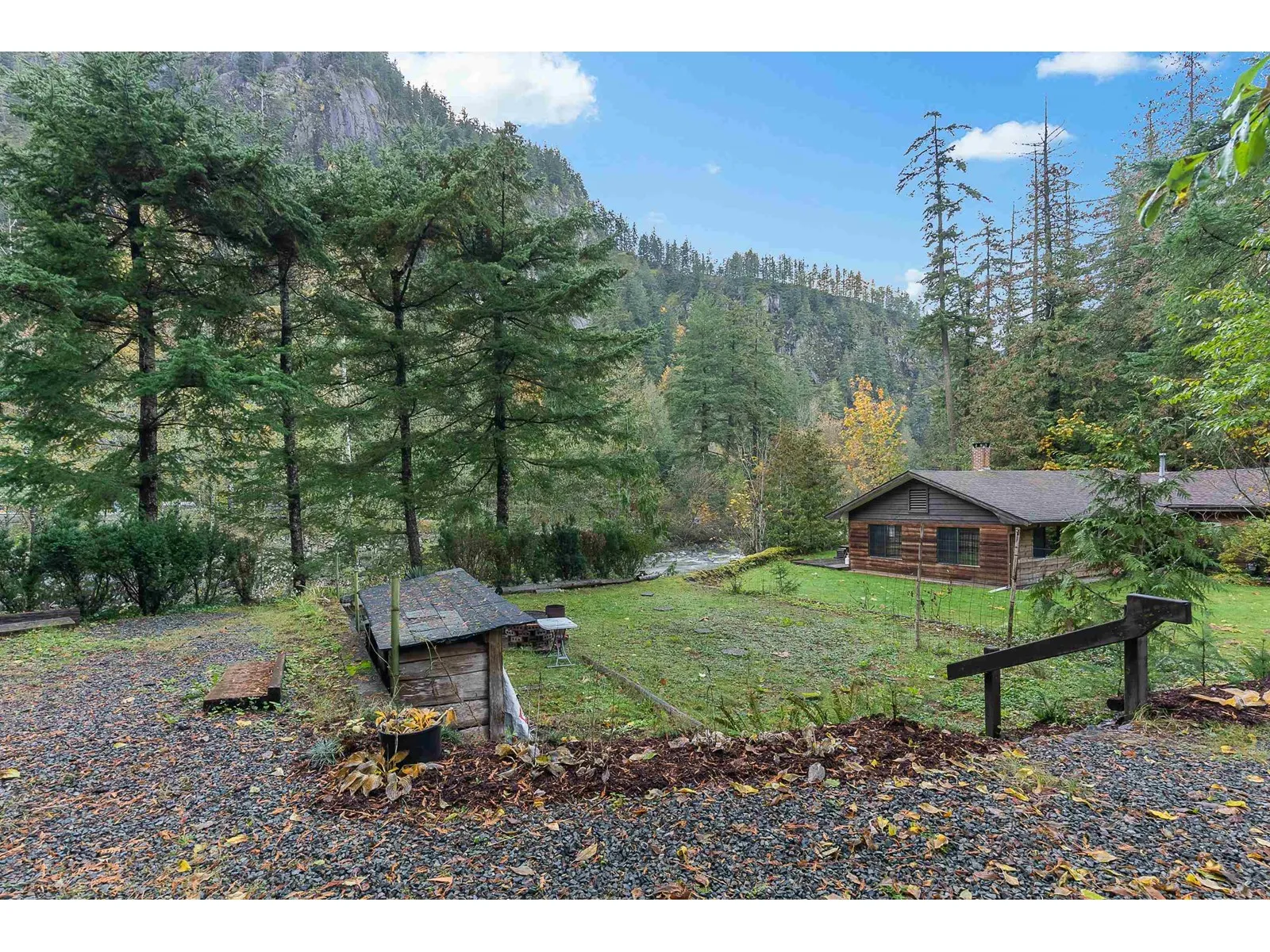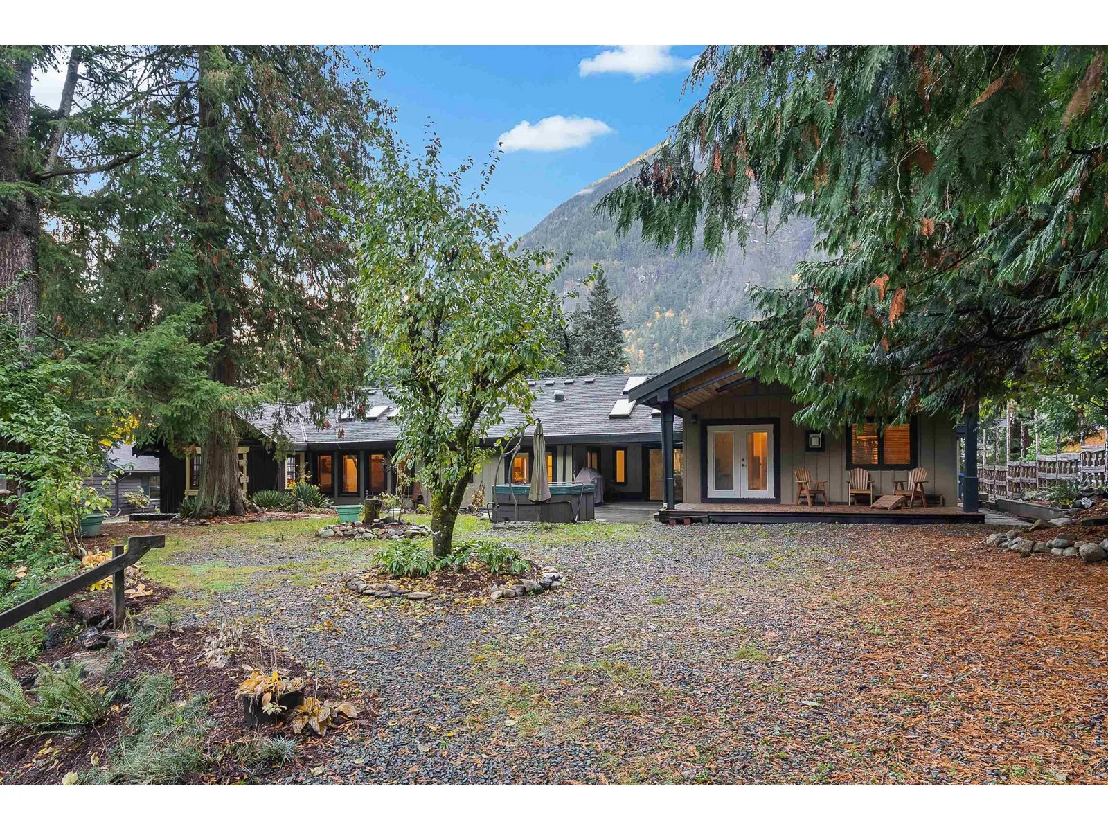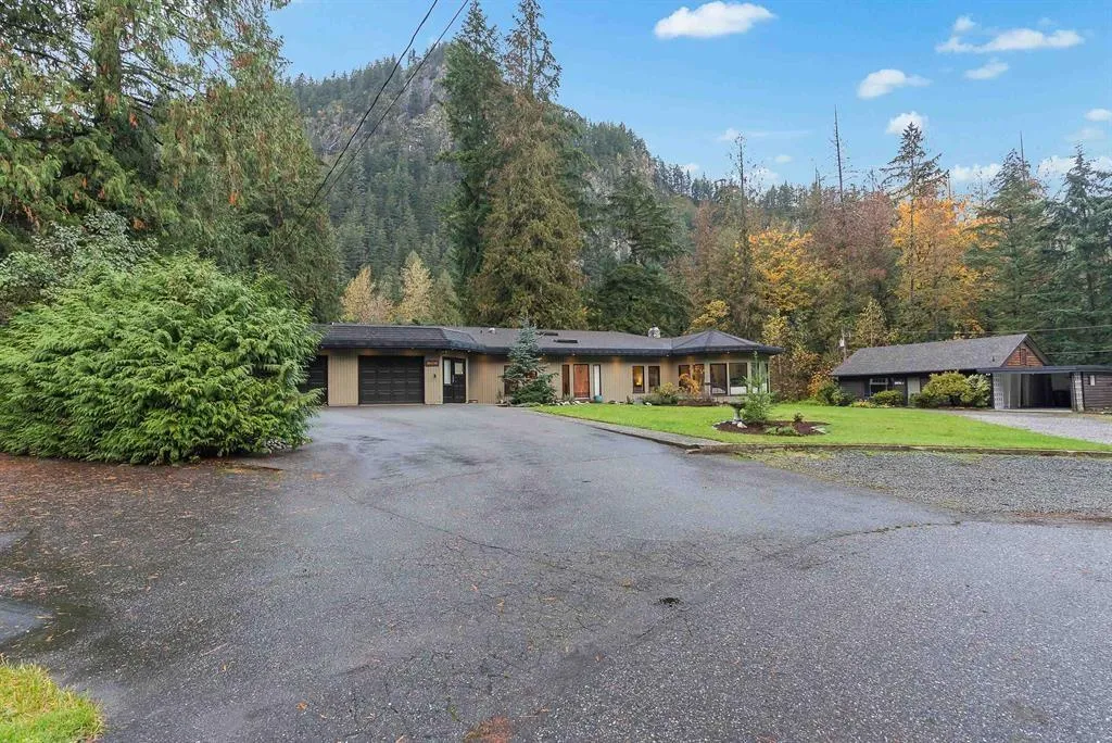 Sprawling 4000 sqft Rancher sitting at the end of a quiet cul-de-sac on a flat 24,000 sqft lot. 3 spacious bedrooms and 3 full bathrooms including a private primary bedroom retreat w/ spa like ensuite, fireplace and private covered deck (Air B&B?) This unique home is adorned with custom woodwork, beautiful hardwood floors, skylights and vaulted wood ceilings throughout. Livingroom/study features post and beam timbers and a river rock fireplace that calls you to curl up with your favorite book. Dining room hints of old-world/Tudor revival! Past updates inc. roof, skylights, furnace & HWT. Large 31'x36' garage w/ gas heat. Loads of storage. Basement awaits your ideas! Serine views of the surrounding mountains and backing onto the Silver Skagit River. Mere minutes to Hwy 1 & downtown Hope. (id:27476)