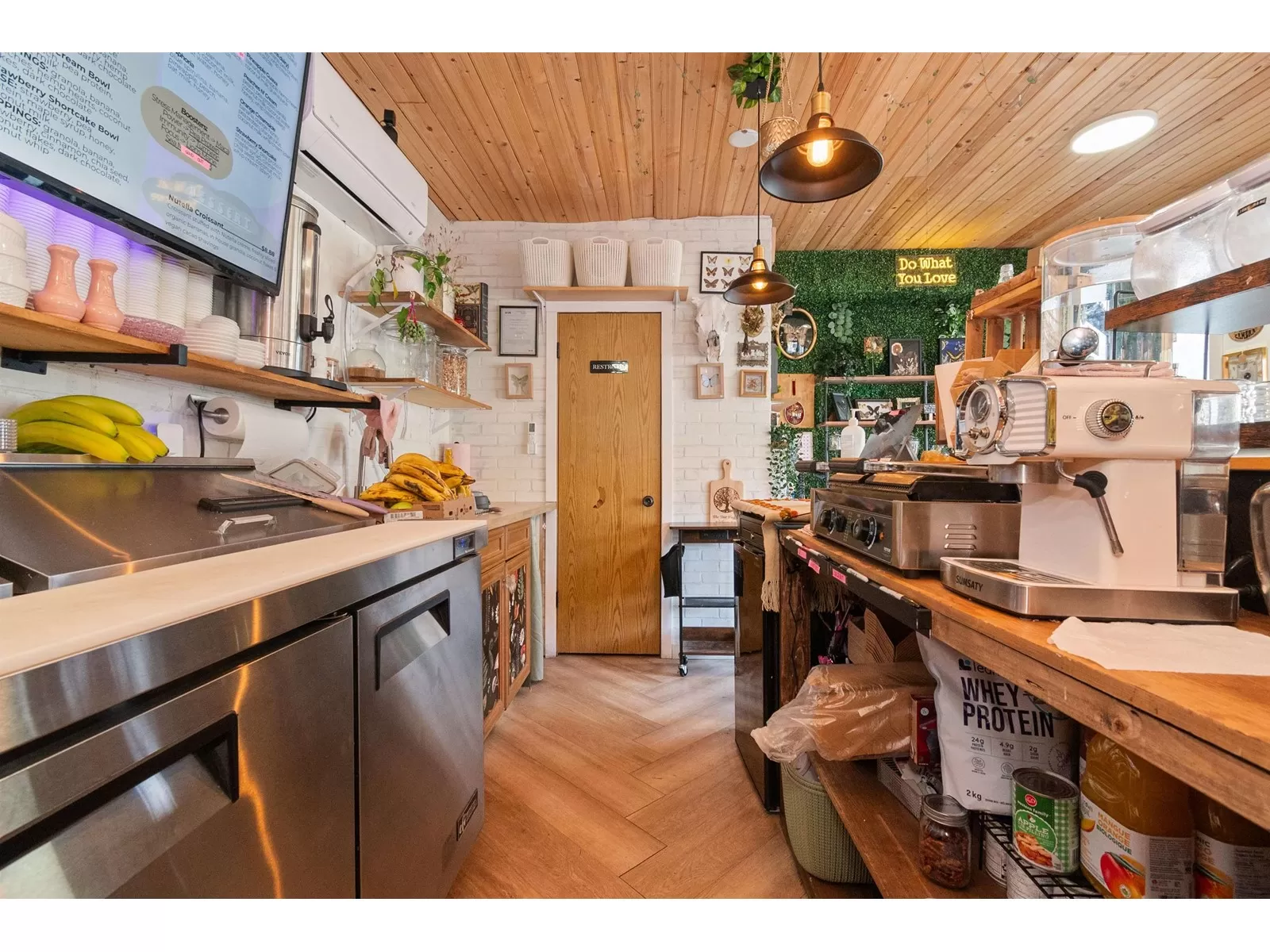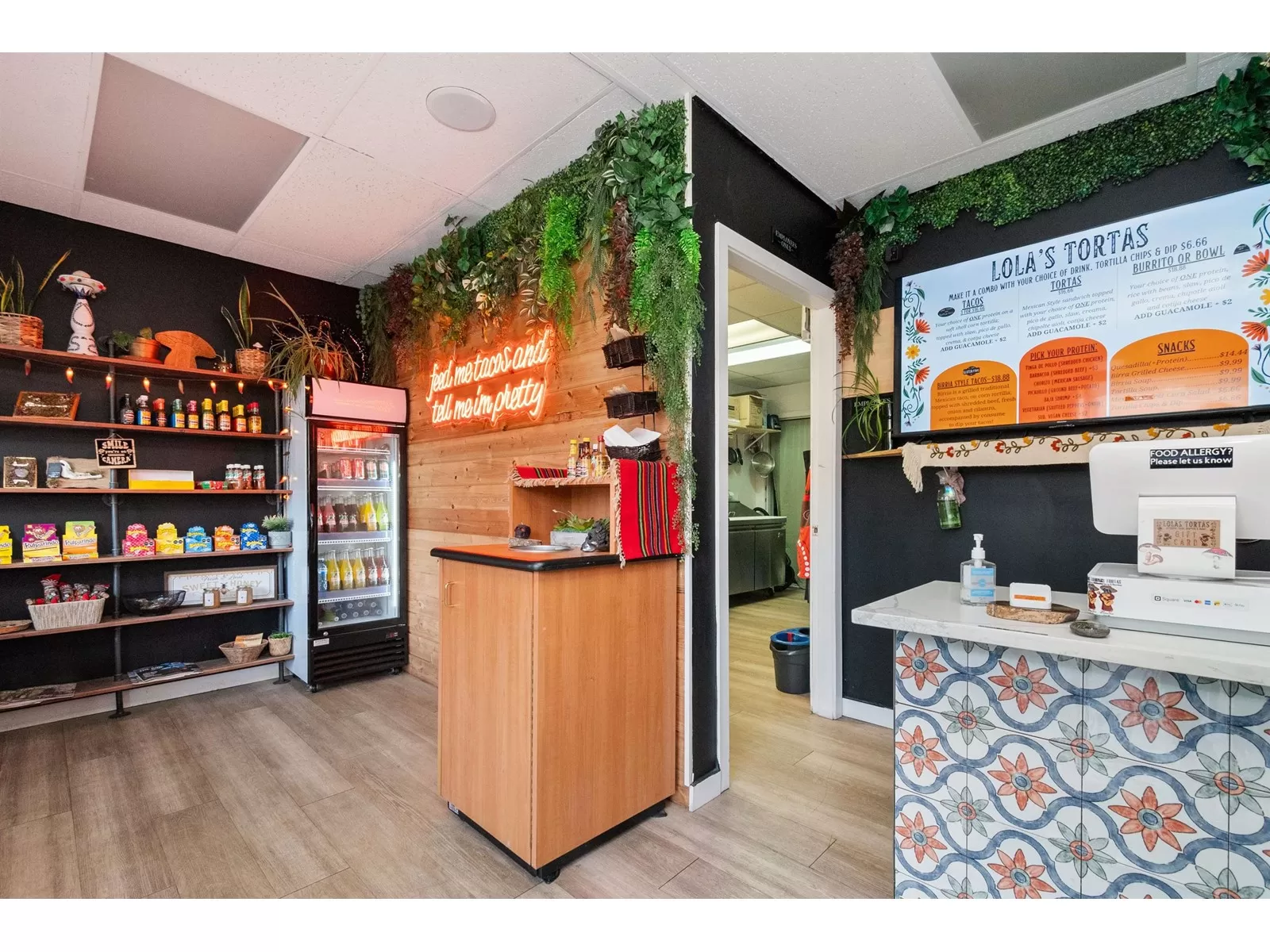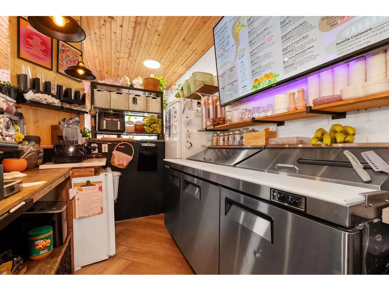 2 businesses in 1 corner unit with 800 sqft and main street exposure. Currently operated as a Juice Bar & Taco restaurant with modern renovations and fixtures. The business has commercial hood vent that can accommodate a variety of cuisines. The unit has Wide store front, lots of sun exposures from windows, very affordable rent. Call today to book your private tour. (id:27476)