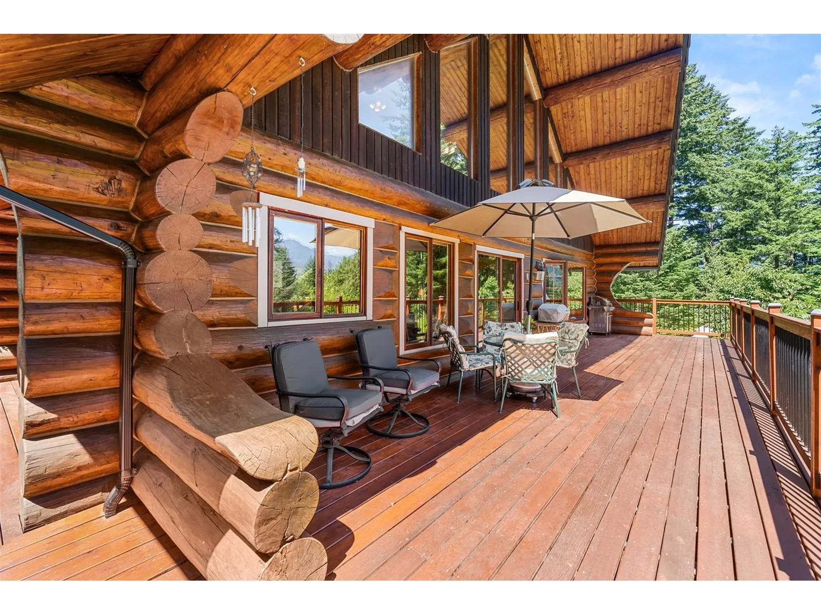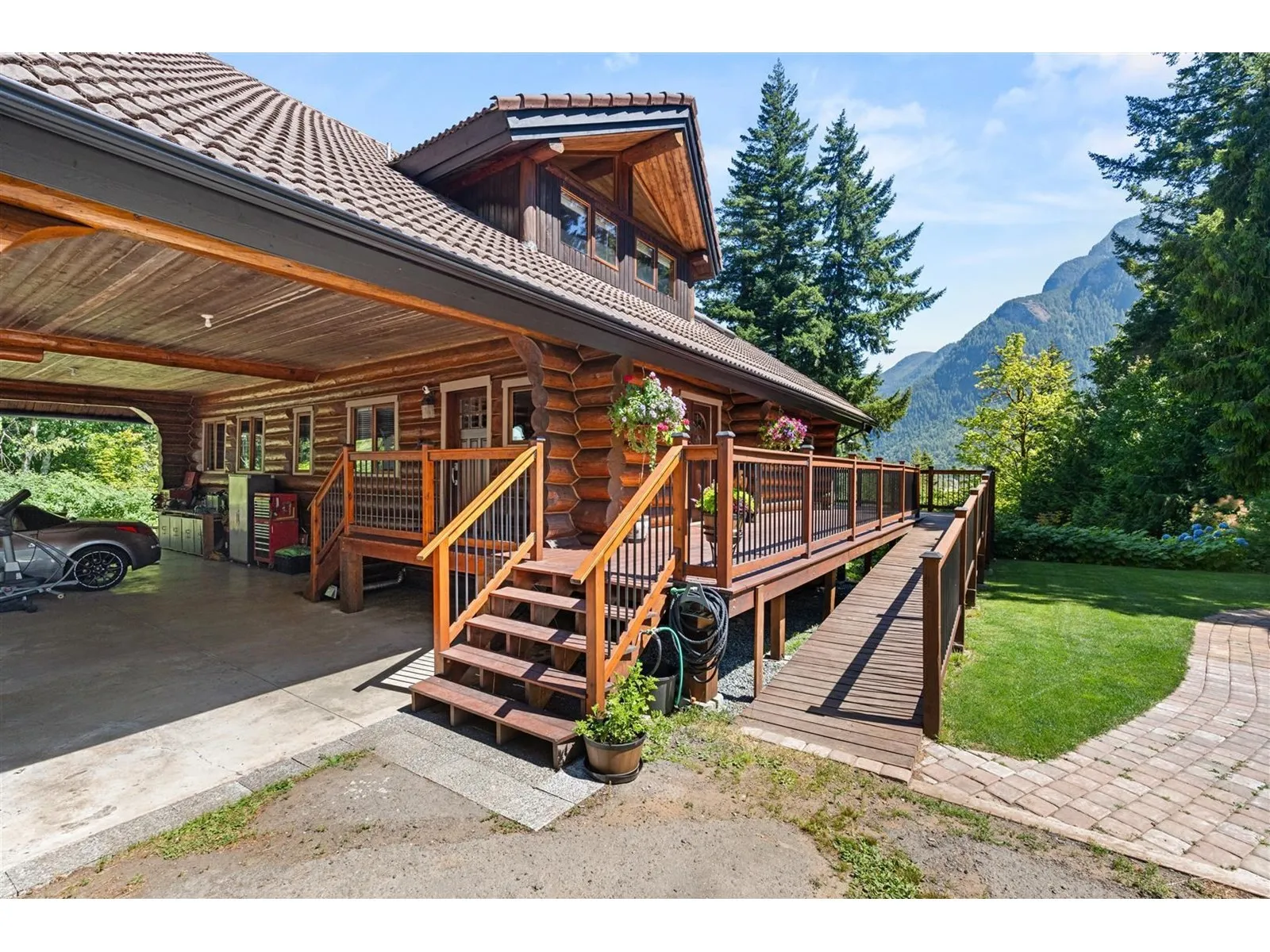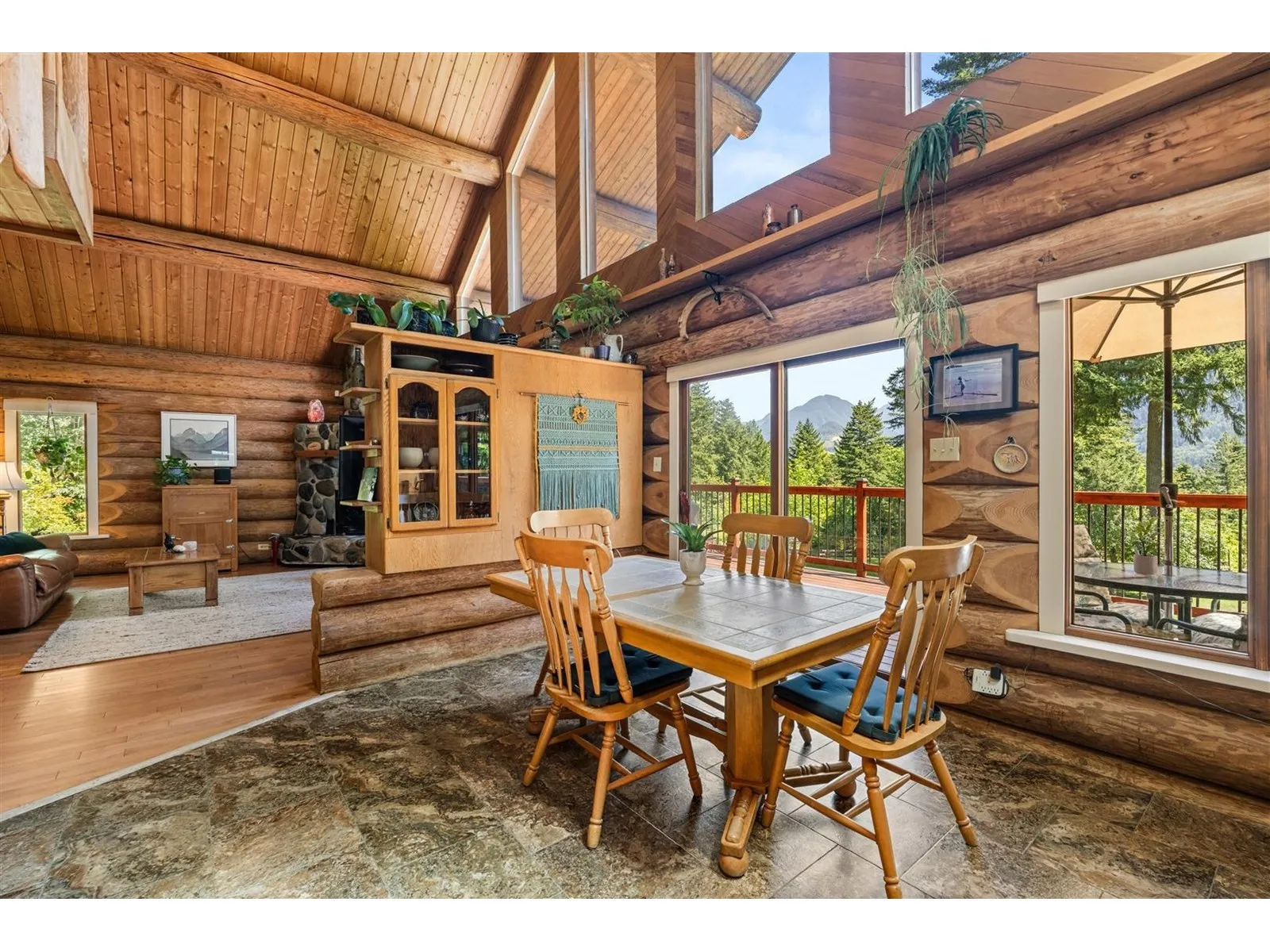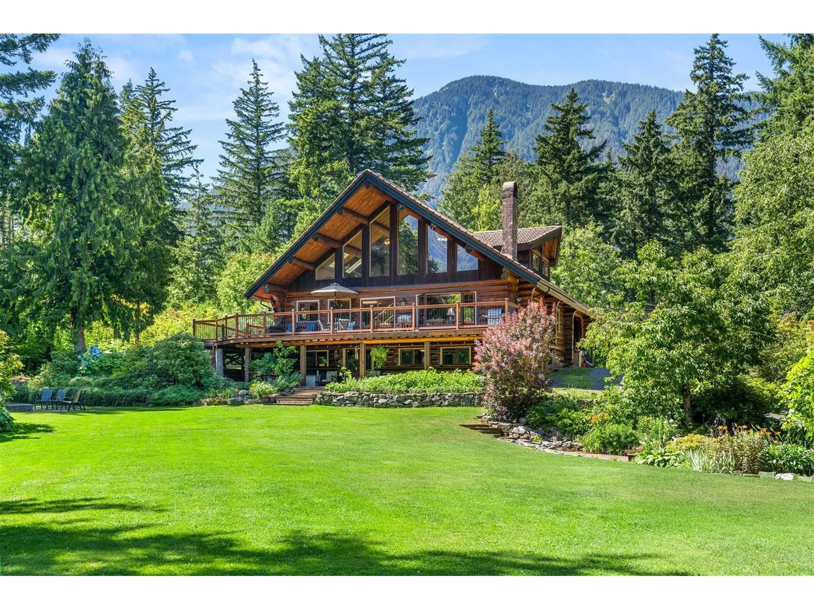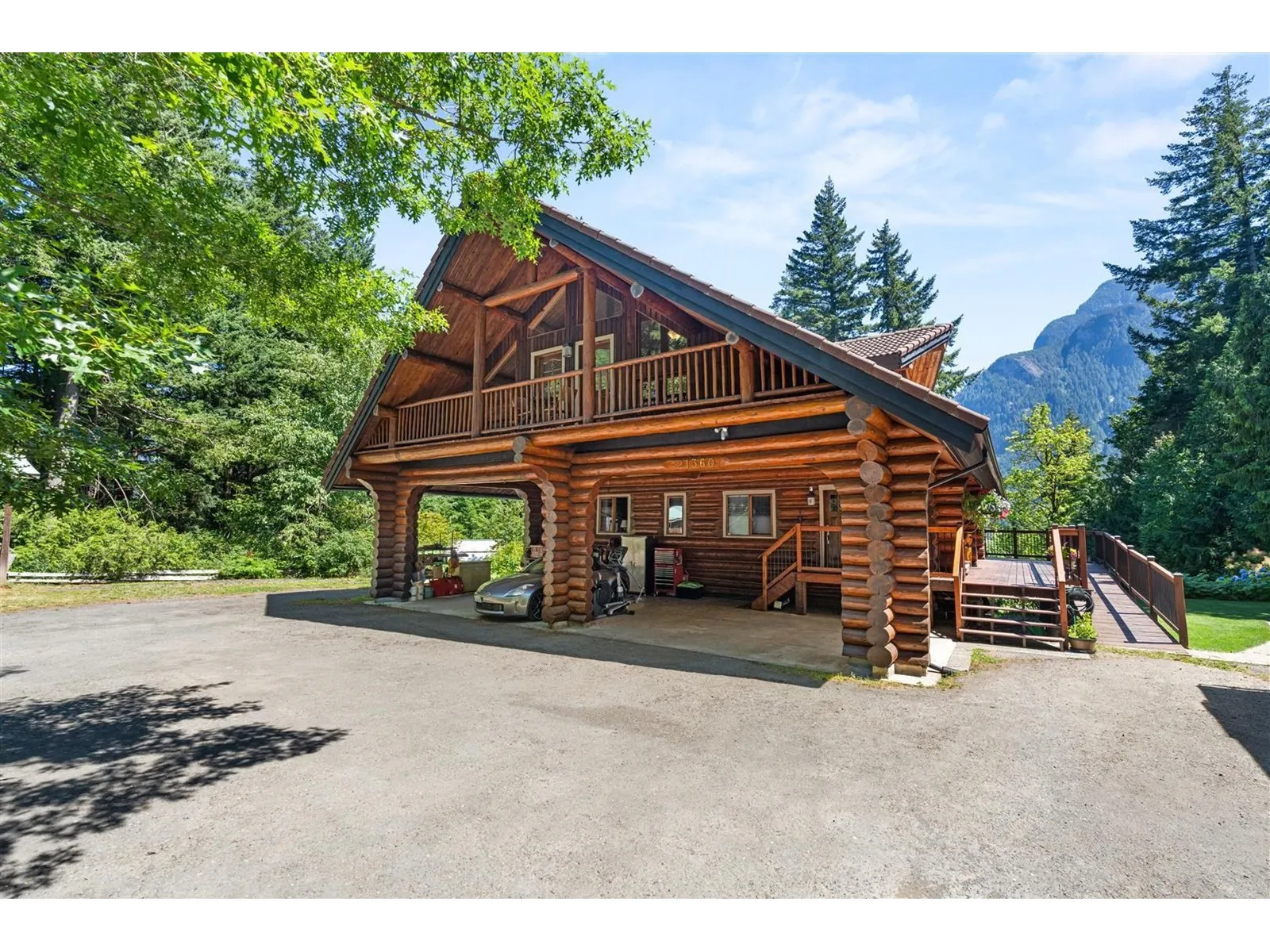 Welcome to 21360 Landstrom Road, Hope BC- a breathtaking 4 bed, 3 bath custom-crafted Douglas Fir log home on2.41 acres in Hope's most coveted location. Overlooking the Fraser River with epic views of Mount Hope, this masterpiece features log staircases, vaulted ceilings, an open-concept kitchen, dining, and living area, plus a stunning river rock wood-burning fireplace. Enjoy year-round comfort with a new ducted heat pump and NC. Relax on the new 937 sq ft red cedar wraparound deck. The fully fenced property includes a 4-bay covered carport, a 718 sq ft Pan-Abode outbuilding, mature landscaping, auto security gate, and total privacy-just 3 minutes to downtown Hope, and 1 hour and 45 minutes to Vancouver. (id:27476)