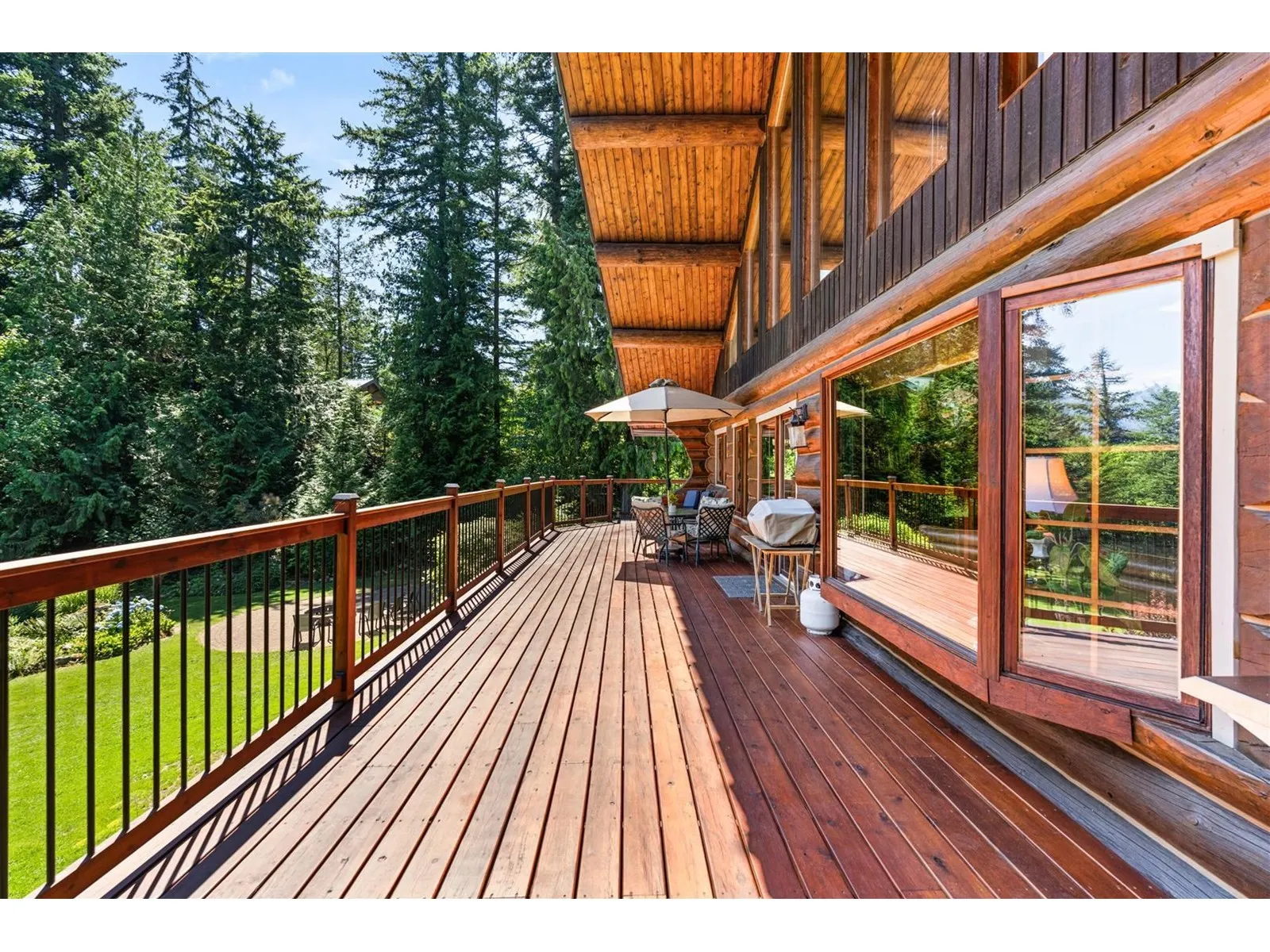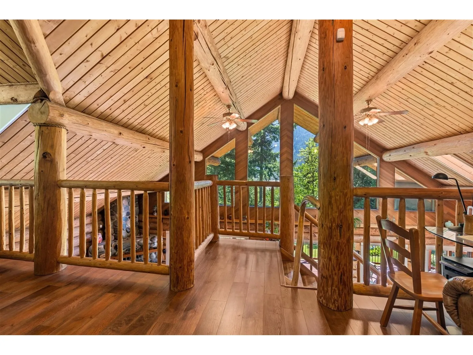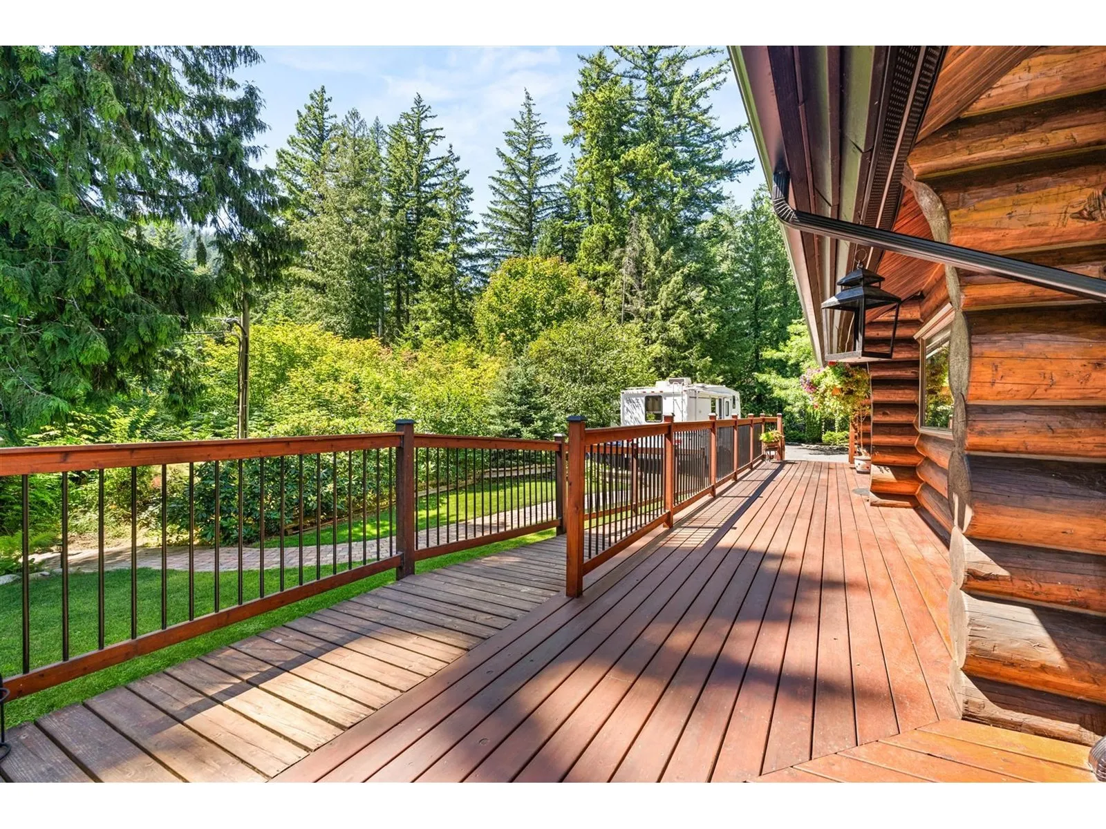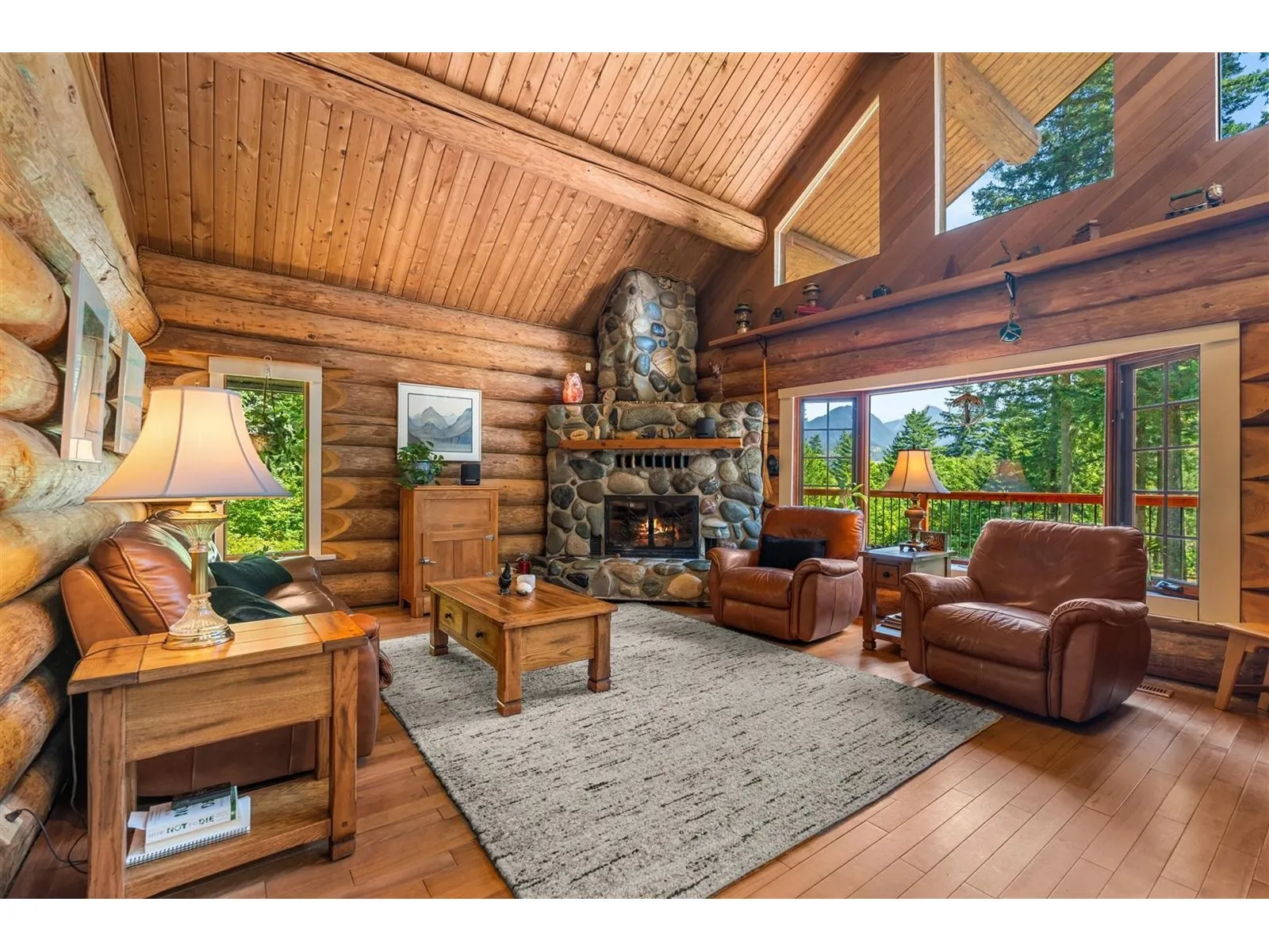 Welcome to 21360 Landstrom Road, Hope BC- a breathtaking 4 bed, 3 bath custom-crafted Douglas Fir log home on2.41 acres in Hope's most coveted location. Overlooking the Fraser River with epic views of Mount Hope, this masterpiece features log staircases, vaulted ceilings, an open-concept kitchen, dining, and living area, plus a stunning river rock wood-burning fireplace. Enjoy year-round comfort with a new ducted heat pump and NC. Relax on the new 937 sq ft red cedar wraparound deck. The fully fenced property includes a 4-bay covered carport, a 718 sq ft Pan-Abode outbuilding, mature landscaping, auto security gate, and total privacy-just 3 minutes to downtown Hope, and 1 hour and 45 minutes to Vancouver. (id:27476)