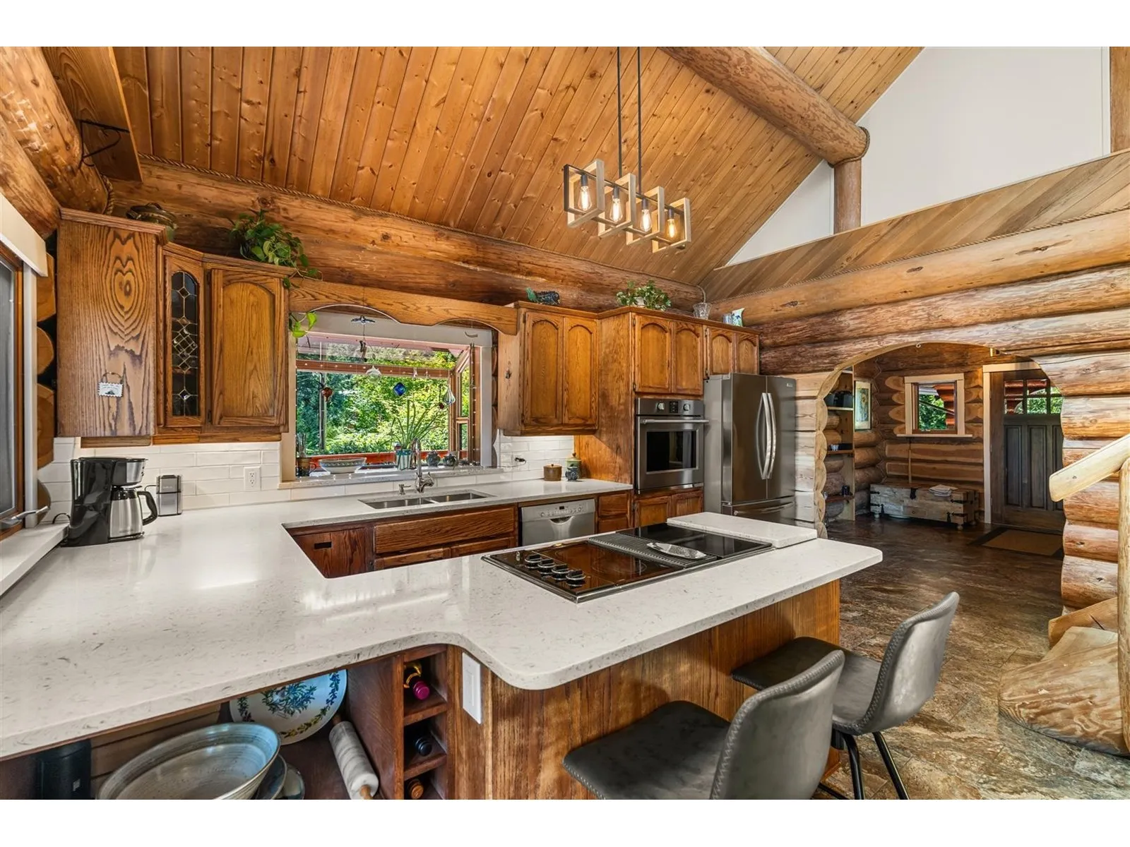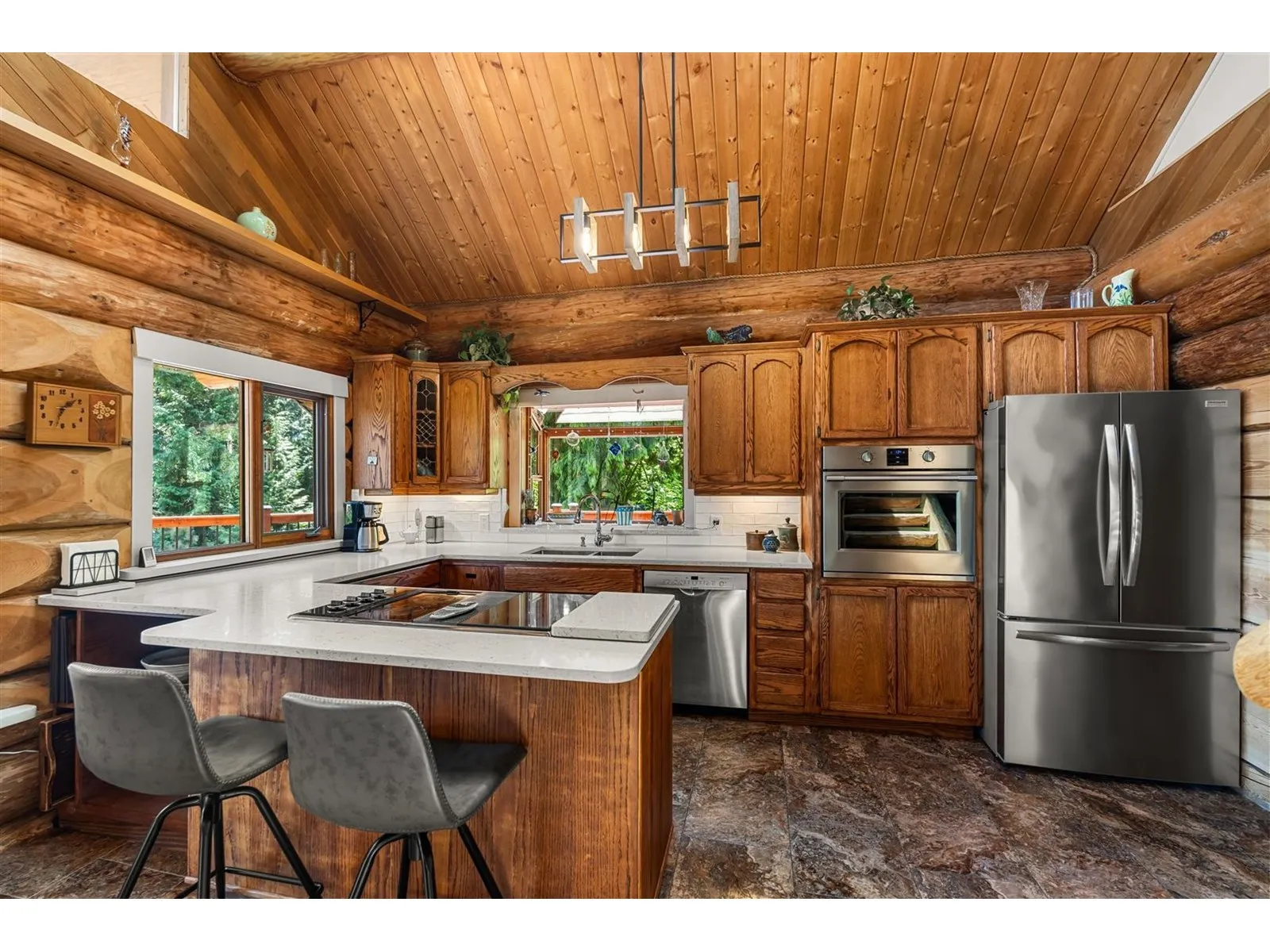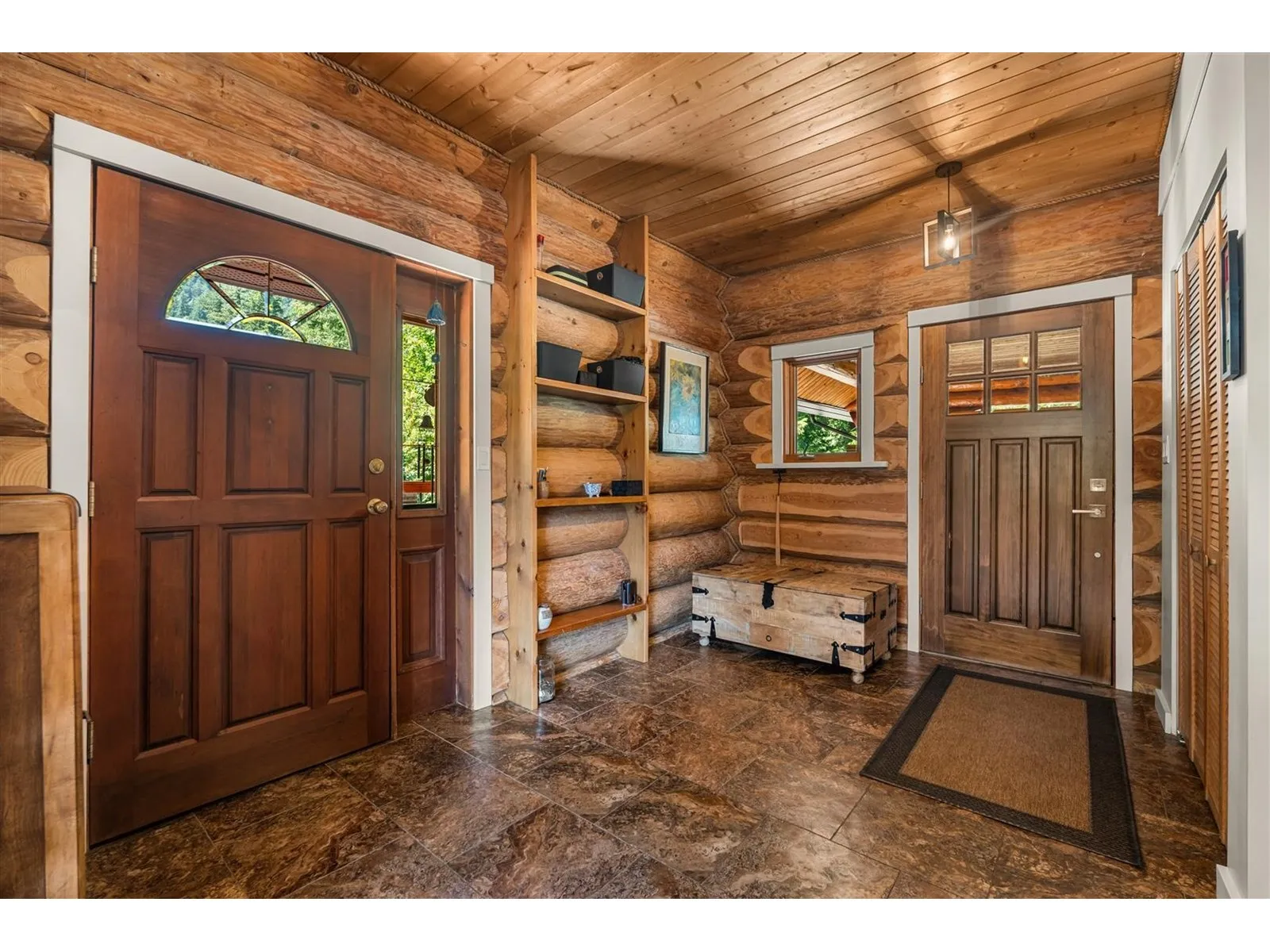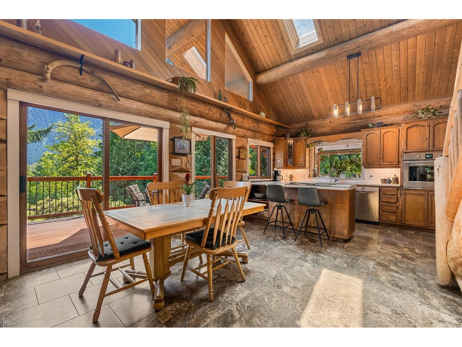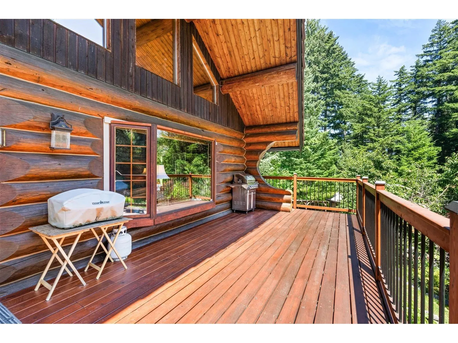 Welcome to 21360 Landstrom Road, Hope BC- a breathtaking 4 bed, 3 bath custom-crafted Douglas Fir log home on2.41 acres in Hope's most coveted location. Overlooking the Fraser River with epic views of Mount Hope, this masterpiece features log staircases, vaulted ceilings, an open-concept kitchen, dining, and living area, plus a stunning river rock wood-burning fireplace. Enjoy year-round comfort with a new ducted heat pump and NC. Relax on the new 937 sq ft red cedar wraparound deck. The fully fenced property includes a 4-bay covered carport, a 718 sq ft Pan-Abode outbuilding, mature landscaping, auto security gate, and total privacy-just 3 minutes to downtown Hope, and 1 hour and 45 minutes to Vancouver. (id:27476)