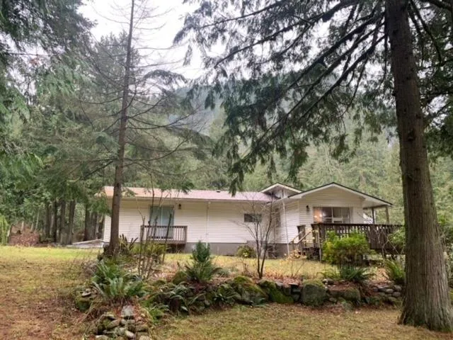 Rare opportunity! This 1.28-acre waterfront property boasts 160 feet of frontage along Silverhope Creek, offering stunning views and the soothing sound of the river. Located at the entrance to Skagit Valley, it is close to lakes, trails, fishing, hiking, and camping. Minutes from downtown Hope and on the road to silver Lake. Ample space for RVs, trucks, and other vehicles. The home features 2 bedrooms, a spacious large room and a dining room leading to a well-equipped kitchen with deck access. Includes a detached garage, single carport, and sheds. Recent updates: Silver label certification was done in 2021, 4-year-old roof and newly well pump. Ideal for year-round living or weekend getaways. (id:27476)