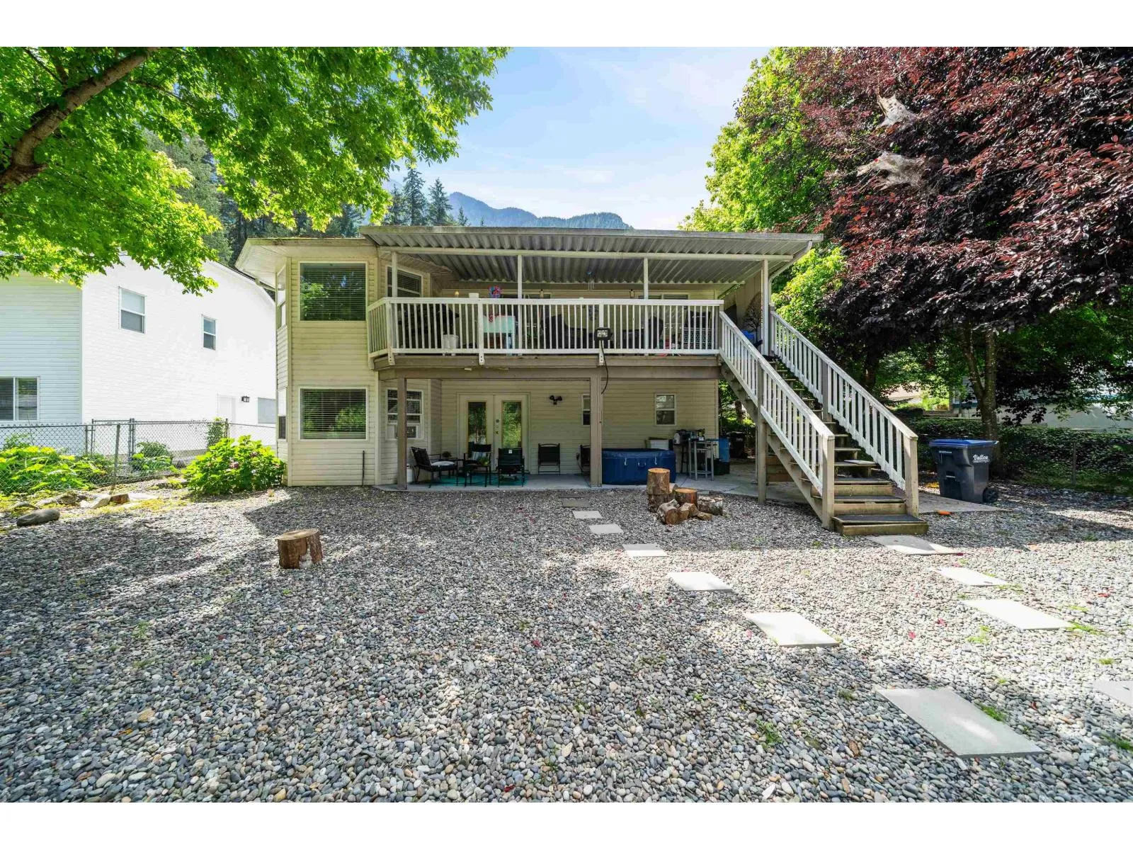Your retirement home search ends here. This .4 acre (16248 sf.) property has a picture perfect view of the Coquihalla River throughout the main area of the home and from your large deck. Private access from the backyard to the river. Spacious 2052 living area comes with 4 bedrooms & 3 full bath. This home features 3 bedrooms, 2 full baths on the main floor. Ground level floor comes with living room, bedroom and full bathroom, which can be easy to convert into a great mortgage helper if needed. Main floor appliances are updated recently, Roof is only 6 years old, freshly painted main floor area year ago. Double car garage & driveway for all your parking needs. Big deck off the kitchen & huge yard with access to river for all your summer entertainment. Priced to sell. Don't miss this amazing opportunity for the perfect retirement home or shared family getaway. "WATERFRONT" property in Hope only 1.5 hours from Vancouver with amazing views of the river & mountains. (id:27476)