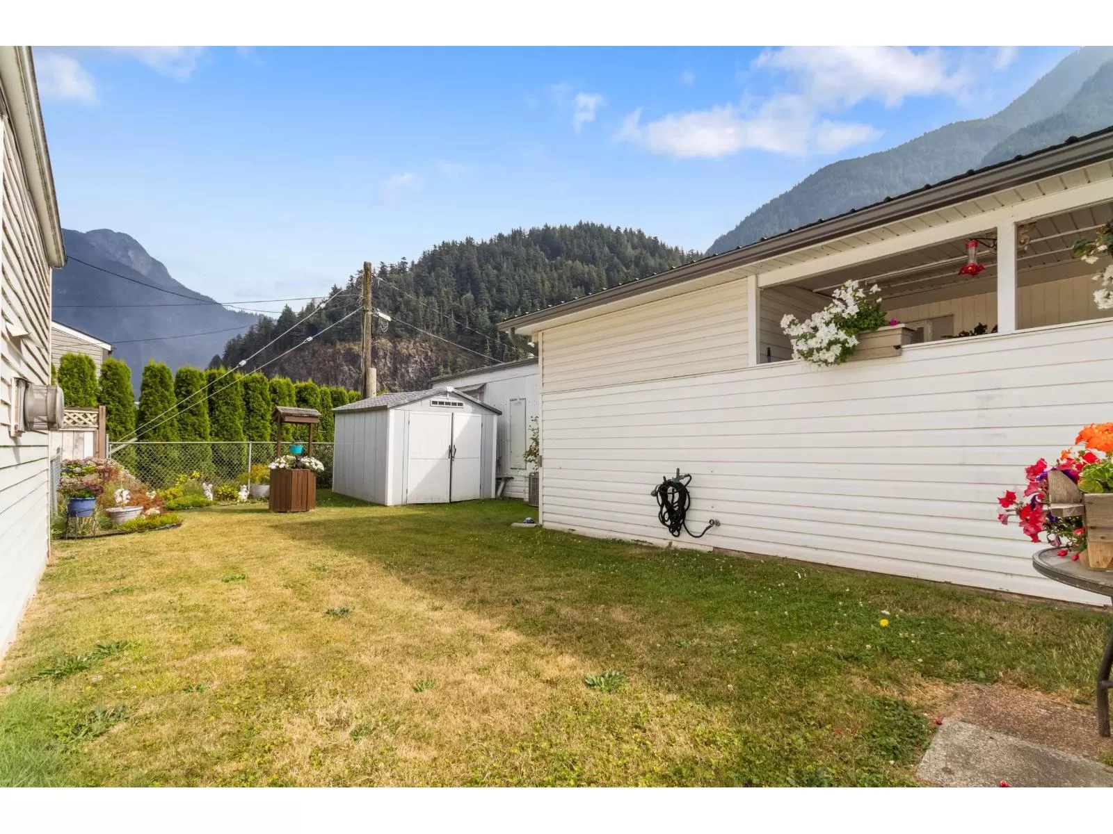 Enjoy breathtaking mountain views from this charming single-wide mobile in the desirable Lismore Park. This bright and inviting 2-bedroom, 1-bath home offers an open-concept layout with generously sized rooms. A covered patio provides the perfect space for relaxing or entertaining, while the fenced yard features low-maintenance landscaping. This 55+ community is just minutes from downtown Hope, shopping, golf, and recreation, with easy freeway access and only 30 minutes to Chilliwack. (id:27476)