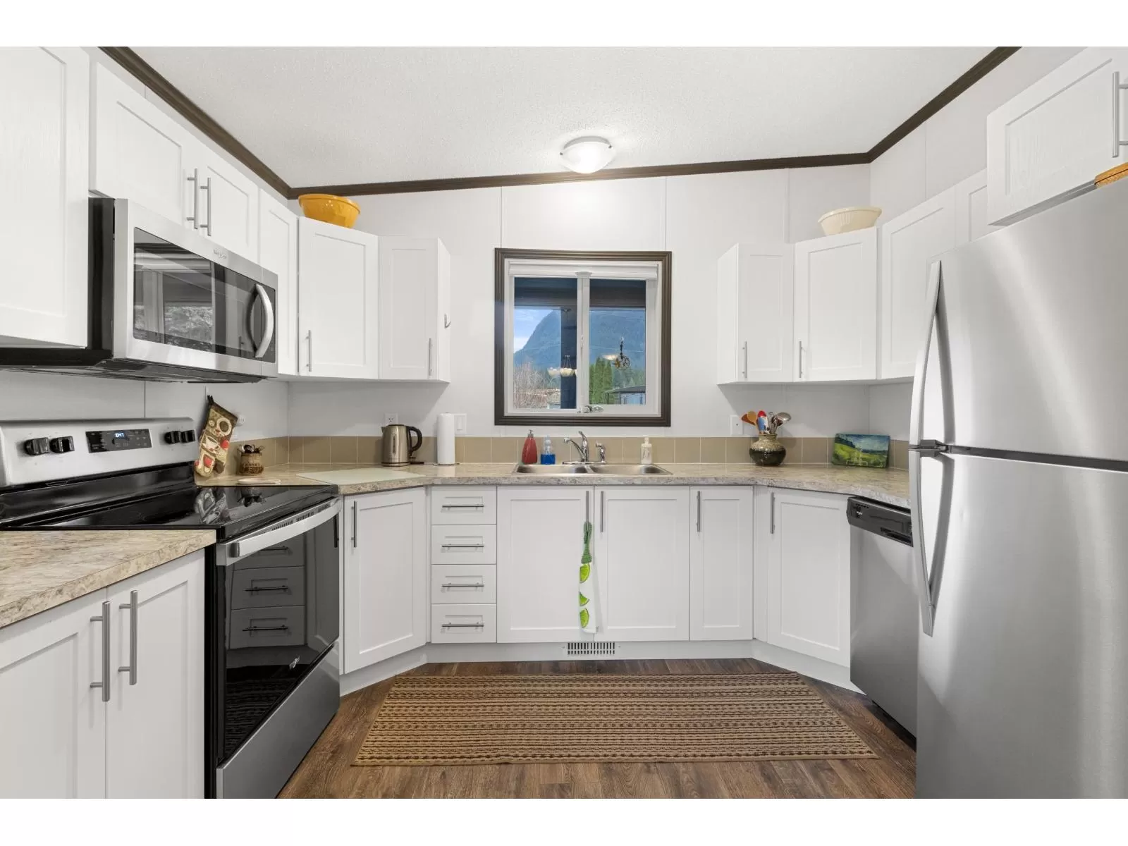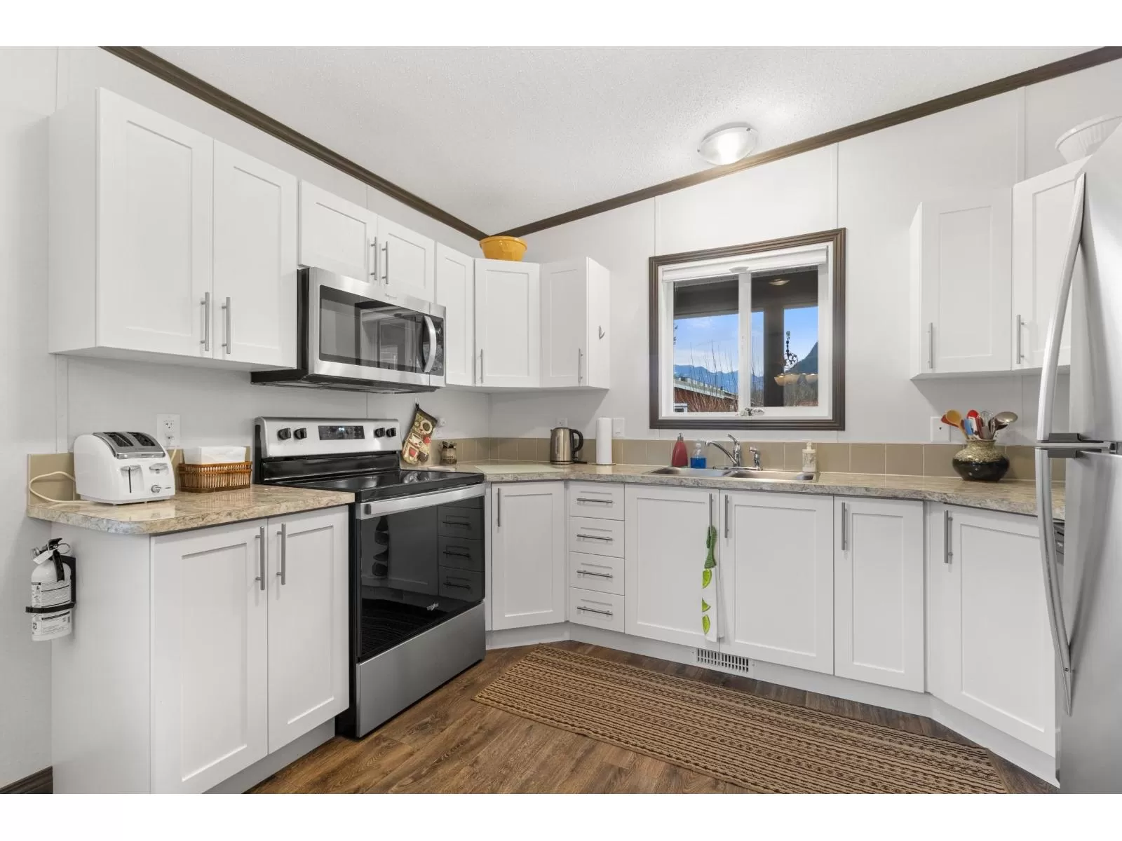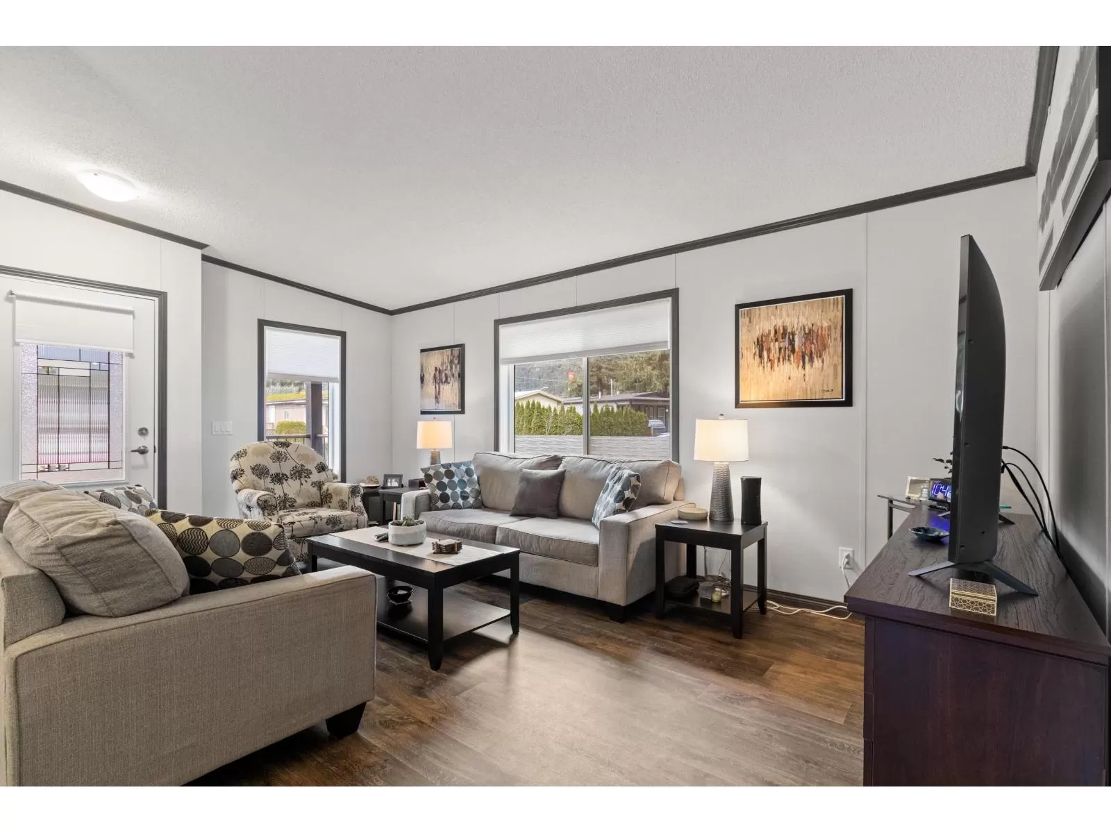 Welcome to the Cedars! A sought-after, peaceful, and well-maintained mobile home park. This newer, spacious, and bright 2-bedroom, 2-bathroom modular home features a fully fenced yard with garden beds, making it perfect for avid gardeners to grow their favourite plants and vegetables. The patio area is ideal for setting up a propane fire-pit for cozy outdoor evenings. The property includes two storage sheds, with electrical wiring already set up to one of them for added convenience. Enjoy the added benefit of a BONUS storage area, perfect for campers, RVs, tent trailers, golf carts, boats, and more. This home is turn-key and has no age restrictions. Pad rent is $750/month. (id:27476)